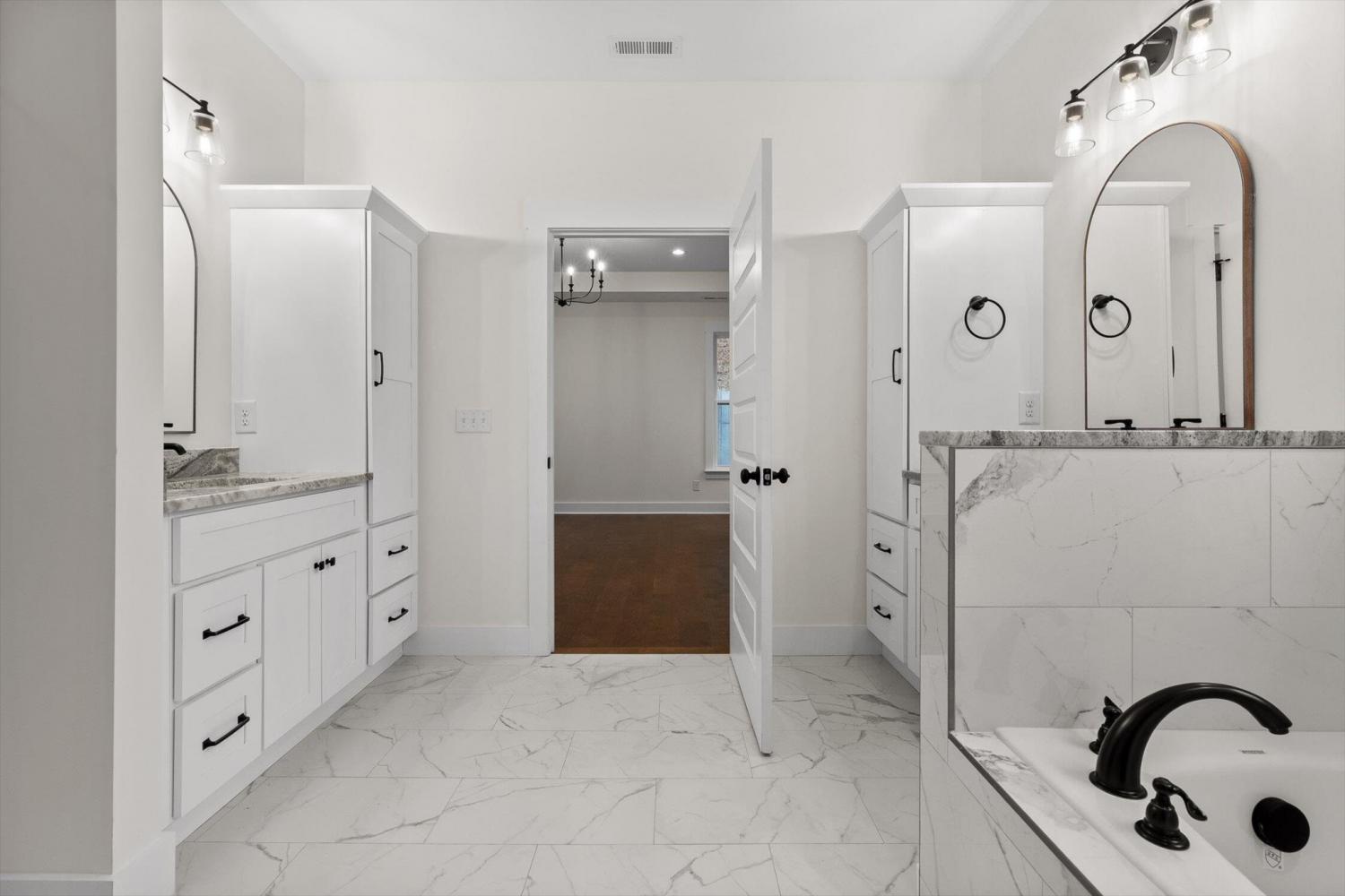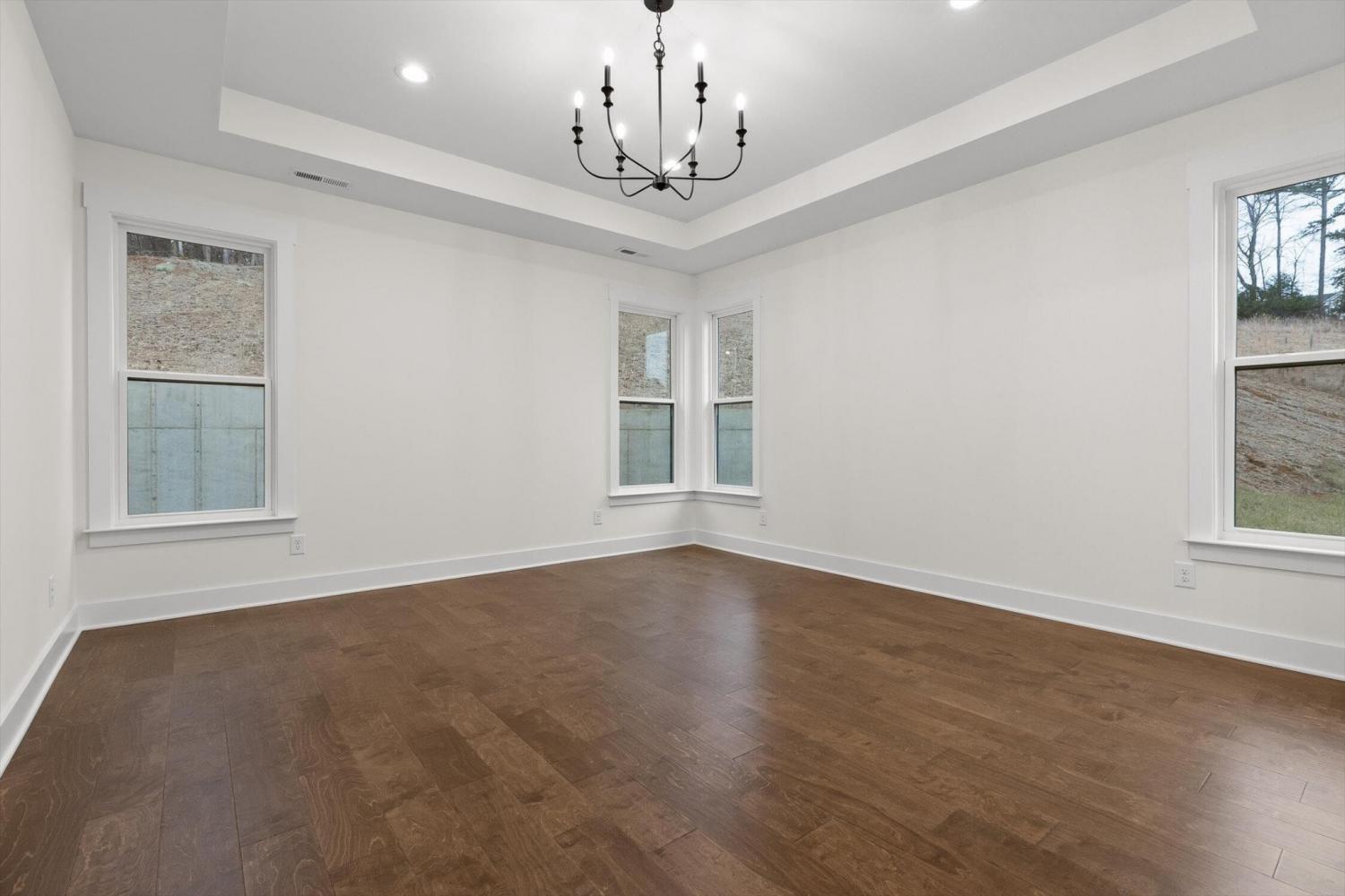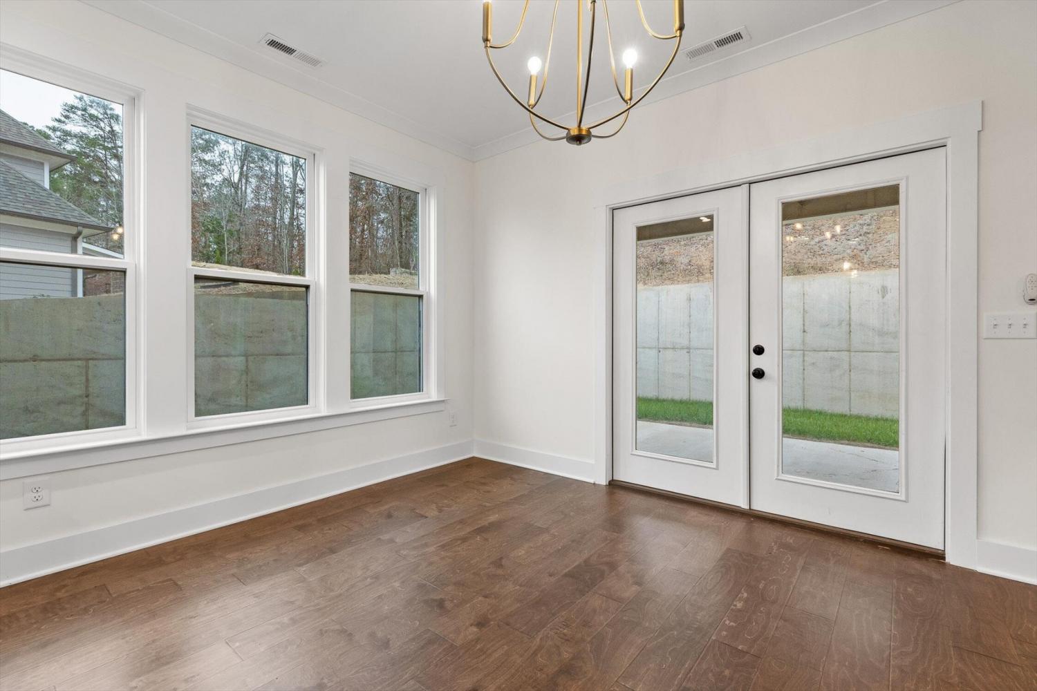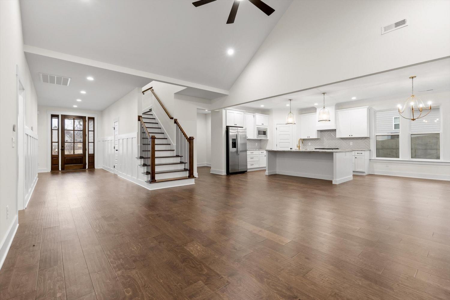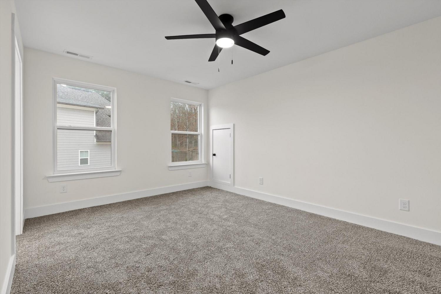 This brand-new home offers timeless character paired with modern comfort, located just off E. Brainerd Road in a peaceful, walkable neighborhood and directly across the street from the community pool—an ideal setting for both convenience and lifestyle. From the inviting front porch to the clean trim lines, metal roof, and mixed exterior siding, the exterior delivers strong curb appeal. Step inside to a bright, open-concept main level anchored by a vaulted living room centered around a cozy gas fireplace—perfect for gathering with family and friends. The living space flows seamlessly into the modern kitchen, which features a large center island, stainless steel appliances, a gas stove, pantry, and ample workspace for entertaining. French doors open to the back porch, creating a smooth transition to outdoor living and a fenced-in backyard ideal for pets or play. The main-level primary suite is a private retreat with a treyed ceiling and abundant natural light. The spa-inspired primary bathroom includes a large soaking tub, a spacious walk-in shower, and separate vanities with built-in storage. A laundry room with a sink adds everyday convenience. Also on the main level is a private guest suite with its own bath—perfect for an in-law suite, home office, or study. Upstairs, two generously sized bedrooms with large closets share a Jack-and-Jill bathroom. A spacious loft provides flexible use as a home office or family TV area, while an additional bonus room and full bathroom offer even more living space. With its new construction, thoughtful layout, quality finishes, and access to community amenities in a walkable neighborhood, this home offers a perfect blend of comfort, style, and modern living.