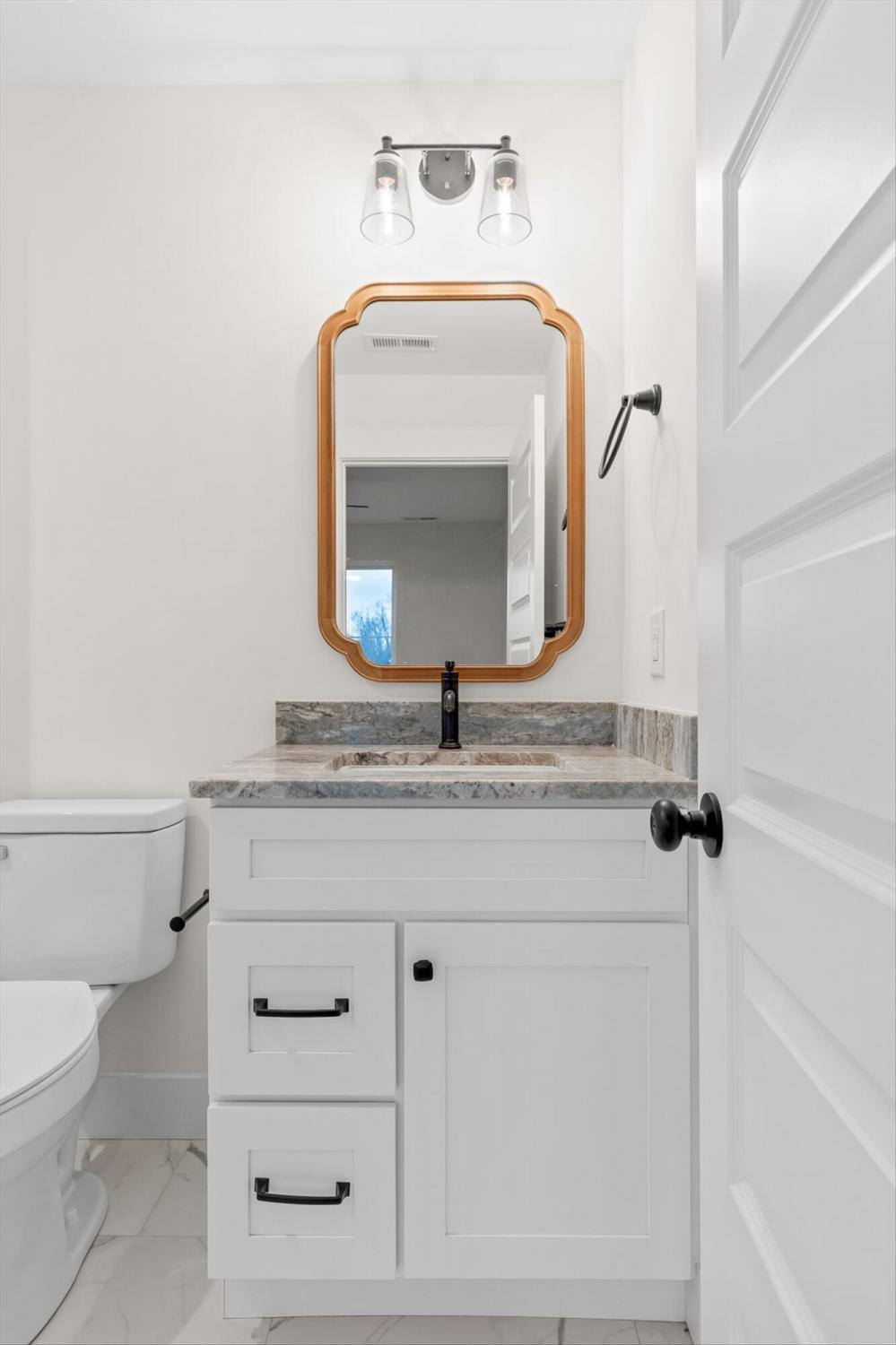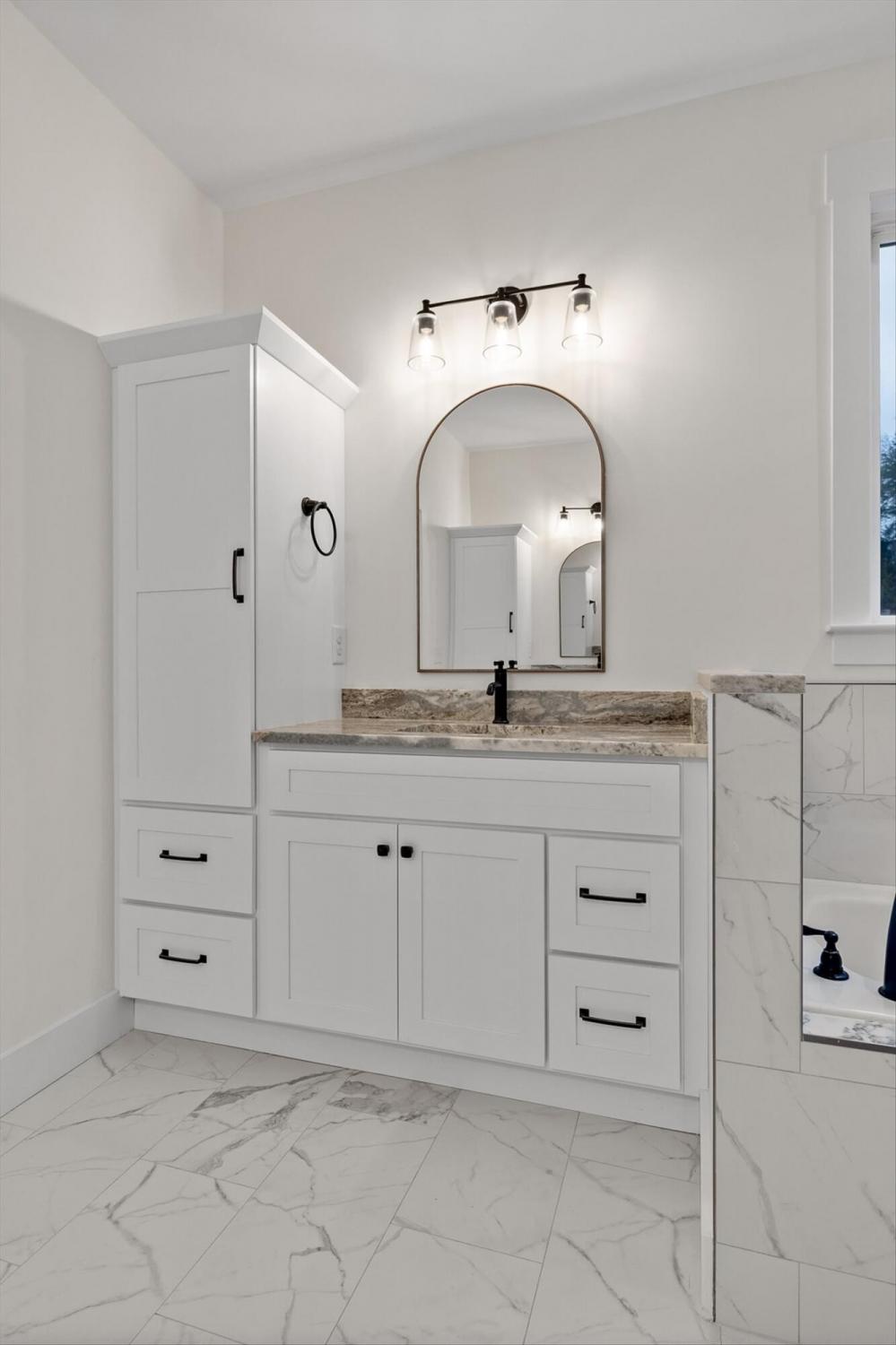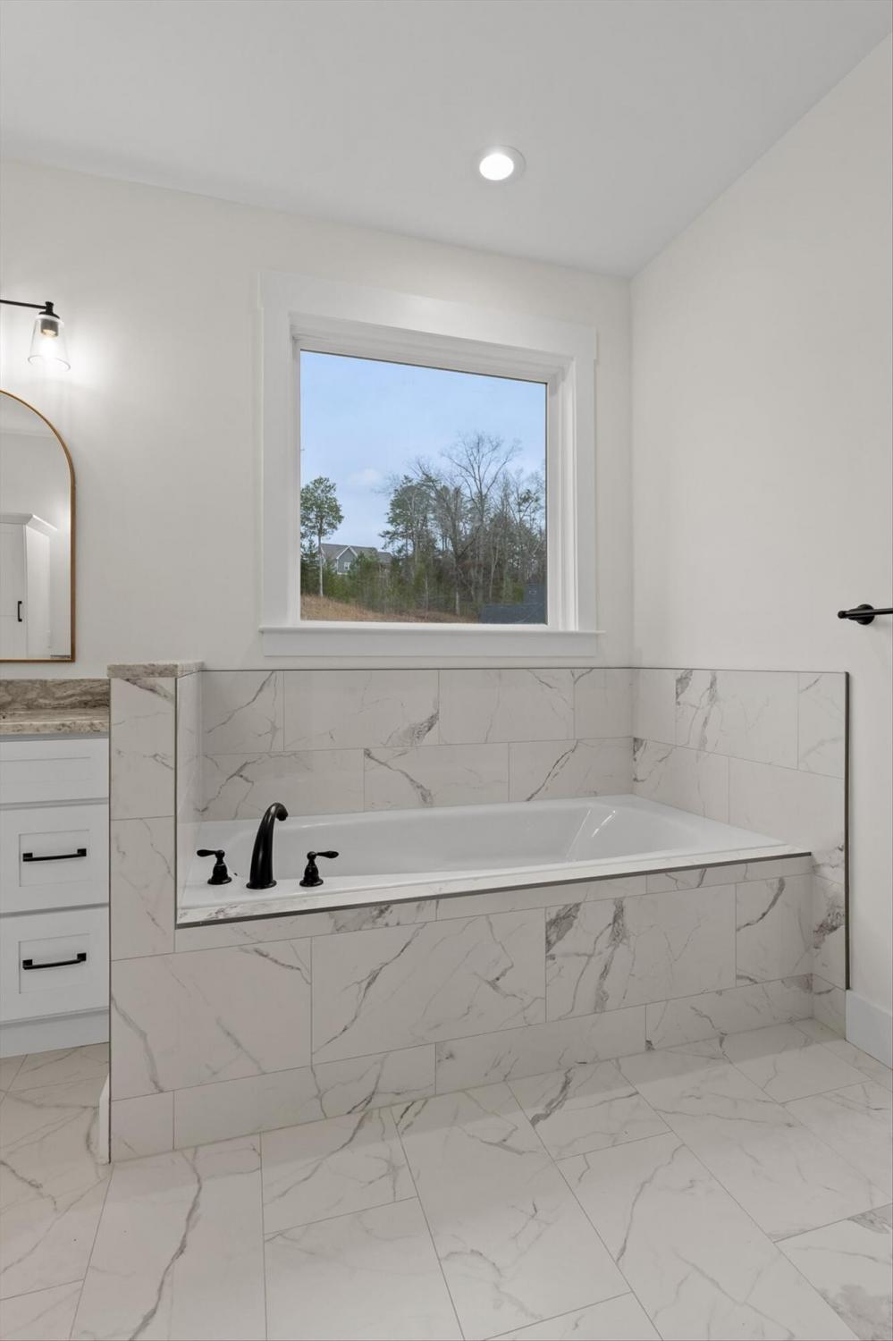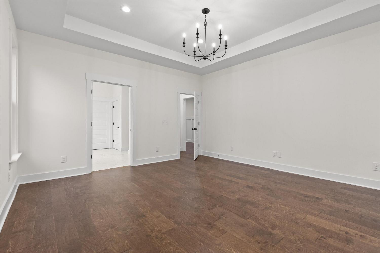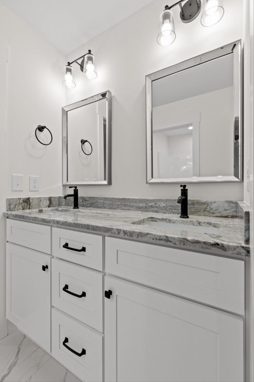 This brand-new home offers timeless character paired with modern comfort, located just off E. Brainerd Road in a peaceful, walkable neighborhood and directly across the street from the community pool—an ideal setting for both convenience and lifestyle. From the inviting front porch to the clean trim lines, metal roof, and mixed exterior siding, the exterior delivers strong curb appeal. Step inside to a bright, open-concept main level anchored by a vaulted living room centered around a cozy gas fireplace—perfect for gathering with family and friends. The living space flows seamlessly into the modern kitchen, which features a large center island, stainless steel appliances, a gas stove, pantry, and ample workspace for entertaining. French doors open to the back porch, creating a smooth transition to outdoor living and a fenced-in backyard ideal for pets or play. The main-level primary suite is a private retreat with a treyed ceiling and abundant natural light. The spa-inspired primary bathroom includes a large soaking tub, a spacious walk-in shower, and separate vanities with built-in storage. A laundry room with a sink adds everyday convenience. Also on the main level is a private guest suite with its own bath—perfect for an in-law suite, home office, or study. Upstairs, two generously sized bedrooms with large closets share a Jack-and-Jill bathroom. A spacious loft provides flexible use as a home office or family TV area, while an additional bonus room and full bathroom offer even more living space. With its new construction, thoughtful layout, quality finishes, and access to community amenities in a walkable neighborhood, this home offers a perfect blend of comfort, style, and modern living.