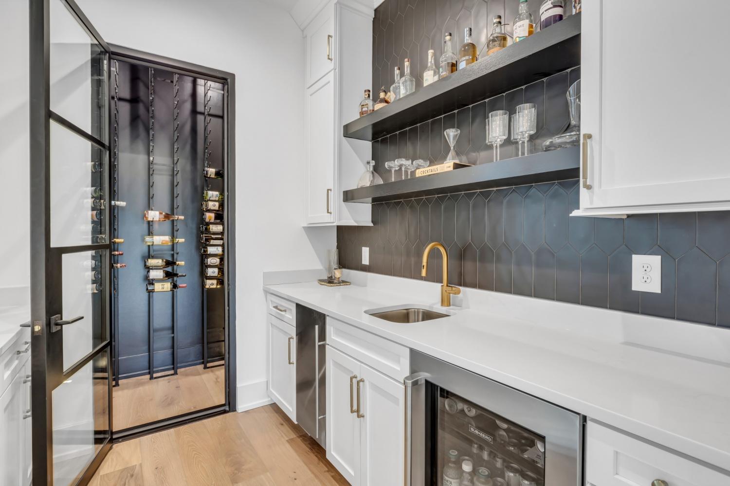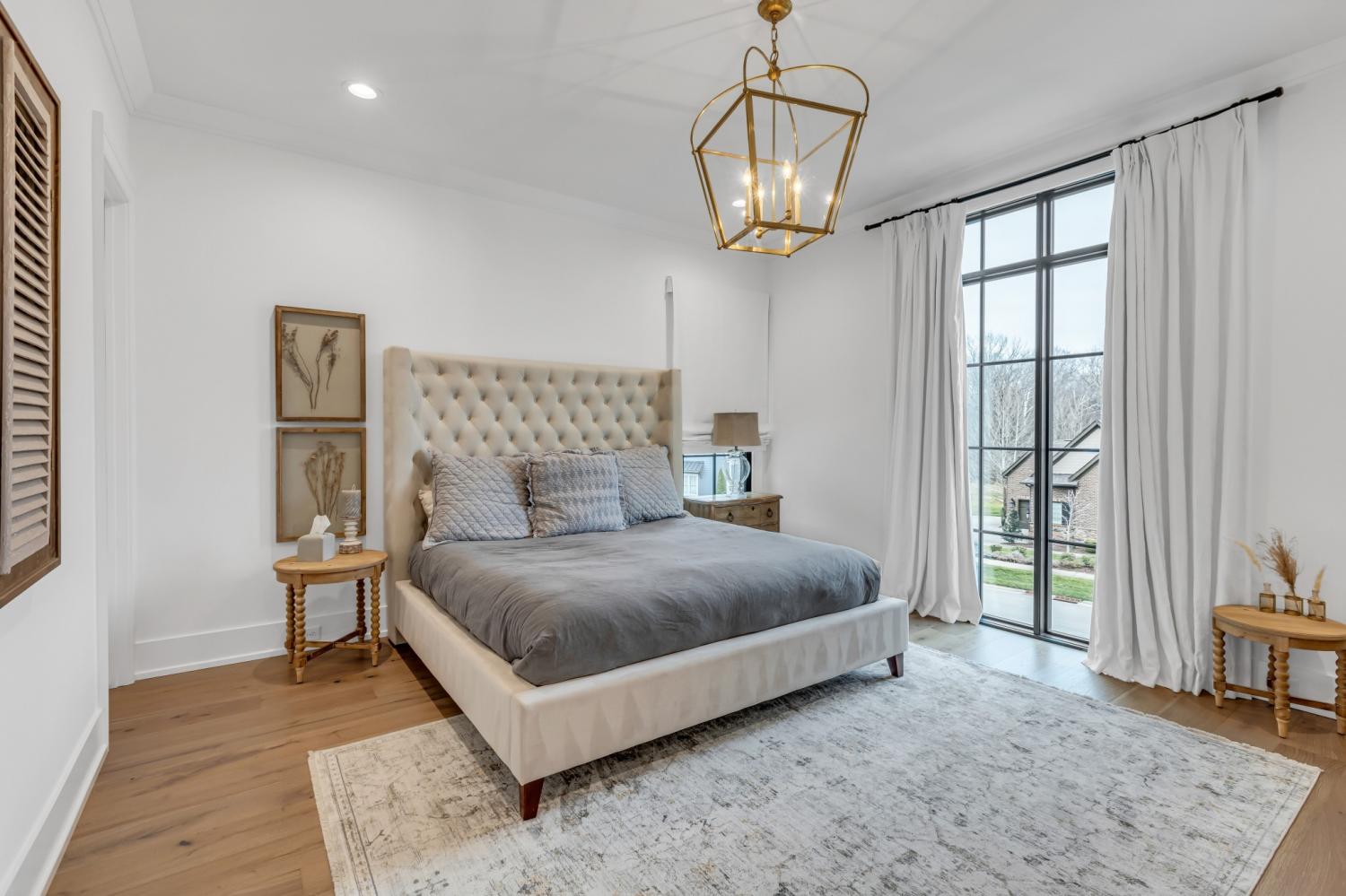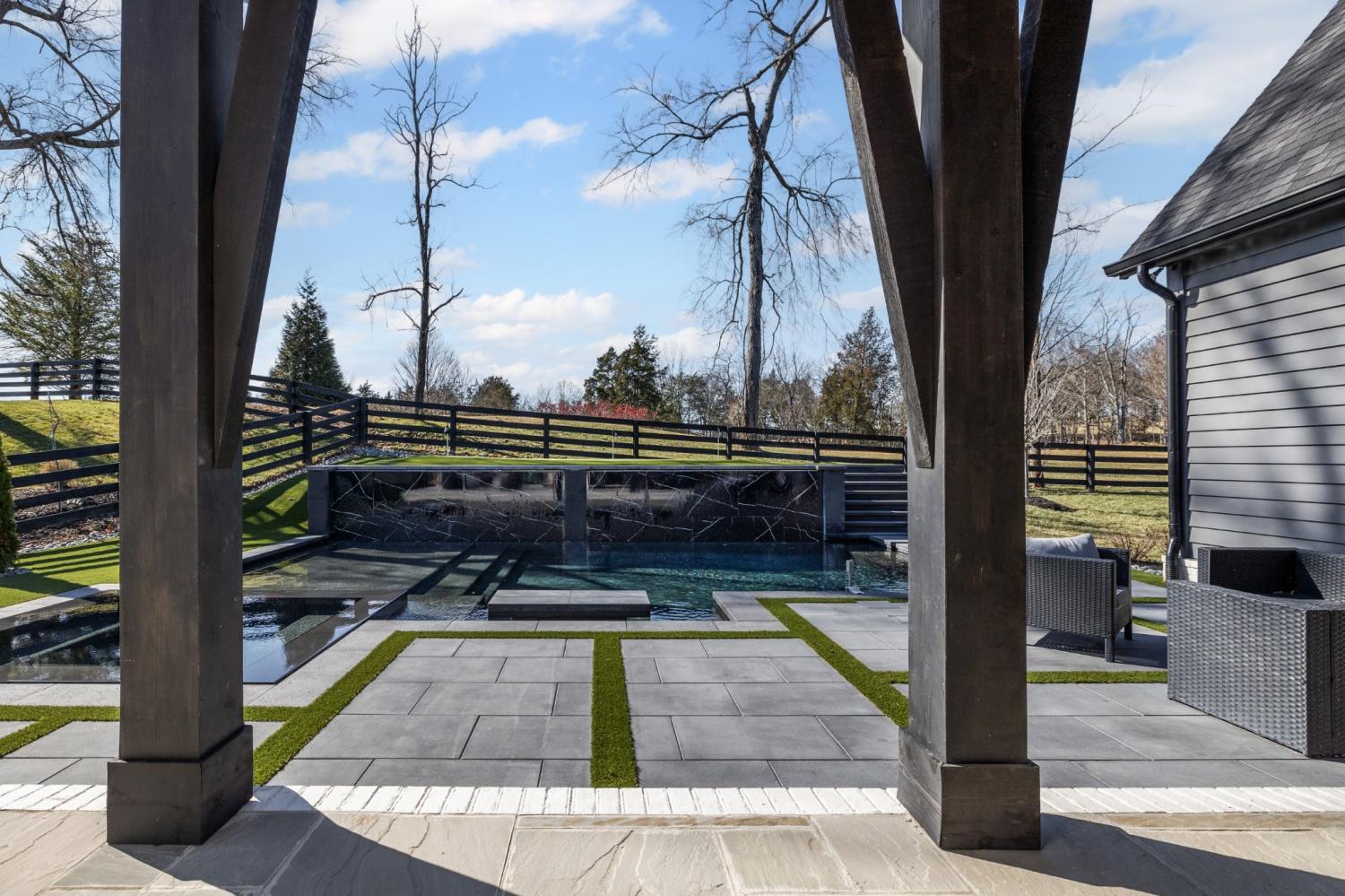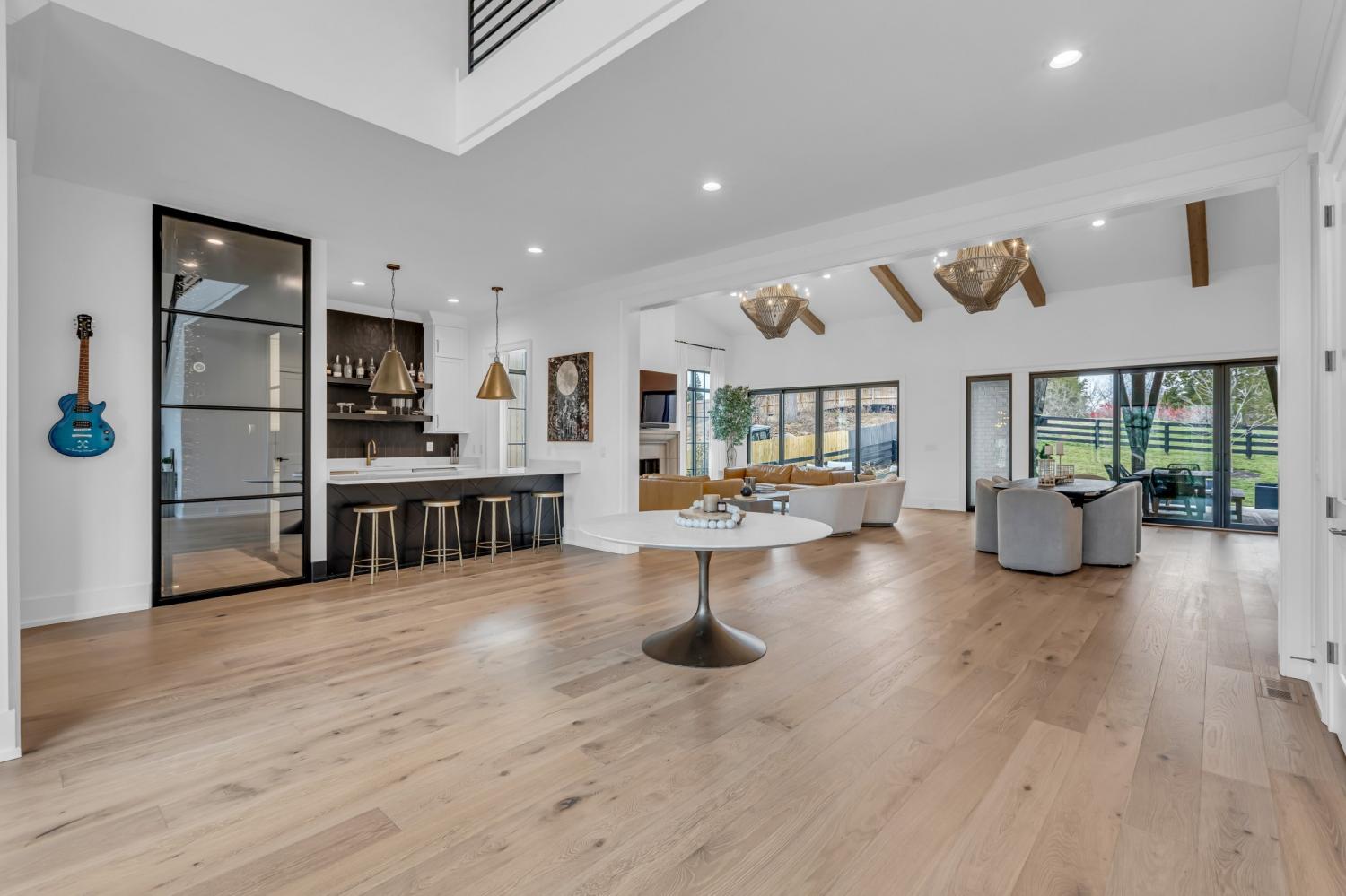 Welcome to this stunning custom-built residence in the prestigious Troubadour Golf & Field Club, crafted by Tennessee Valley Homes in 2022. Spanning 5,929 square feet on a 0.45-acre lot, this architectural masterpiece combines modern elegance with timeless design, offering an unparalleled lifestyle in one of Middle Tennessee’s most sought-after communities. This home features five spacious bedrooms, five full bathrooms, and two half baths, providing ample space for family and guests. Step inside to discover an open-concept floor plan flooded with natural light and adorned with wide-plank hardwood floors. The soaring ceilings and exposed beams create a sense of grandeur, while sleek, modern finishes provide a warm and inviting atmosphere. The gourmet kitchen boasts top-of-the-line appliances, a large island, and seamless flow into the dining and living areas—perfect for entertaining. A dedicated office space with custom millwork and large windows offers serene views and an ideal work-from-home environment. The luxurious primary suite serves as a private retreat, featuring a spa-like bathroom and generous closet space. For the ultimate in leisure and entertainment, enjoy the indoor bar room with a glass-enclosed wine cellar, a state-of-the-art golf simulator, and multiple lounge areas designed for relaxation and social gatherings. The expansive outdoor entertaining area is a true showstopper, featuring a fully equipped kitchen, a cozy fireplace, and ample seating for guests. The highlight is the resort-style pool and hot tub, surrounded by sleek stonework and lush landscaping, offering breathtaking views of Troubadour’s Tom Fazio-designed championship golf course. Additional features include striking curb appeal with modern architectural design, large glass doors that seamlessly connect indoor and outdoor spaces, designer lighting fixtures, custom finishes throughout, and a three-car garage with ample storage. This home is more than a residence—it’s a lifestyle.