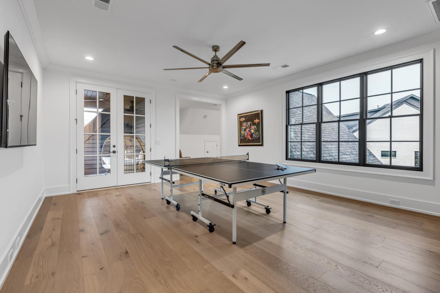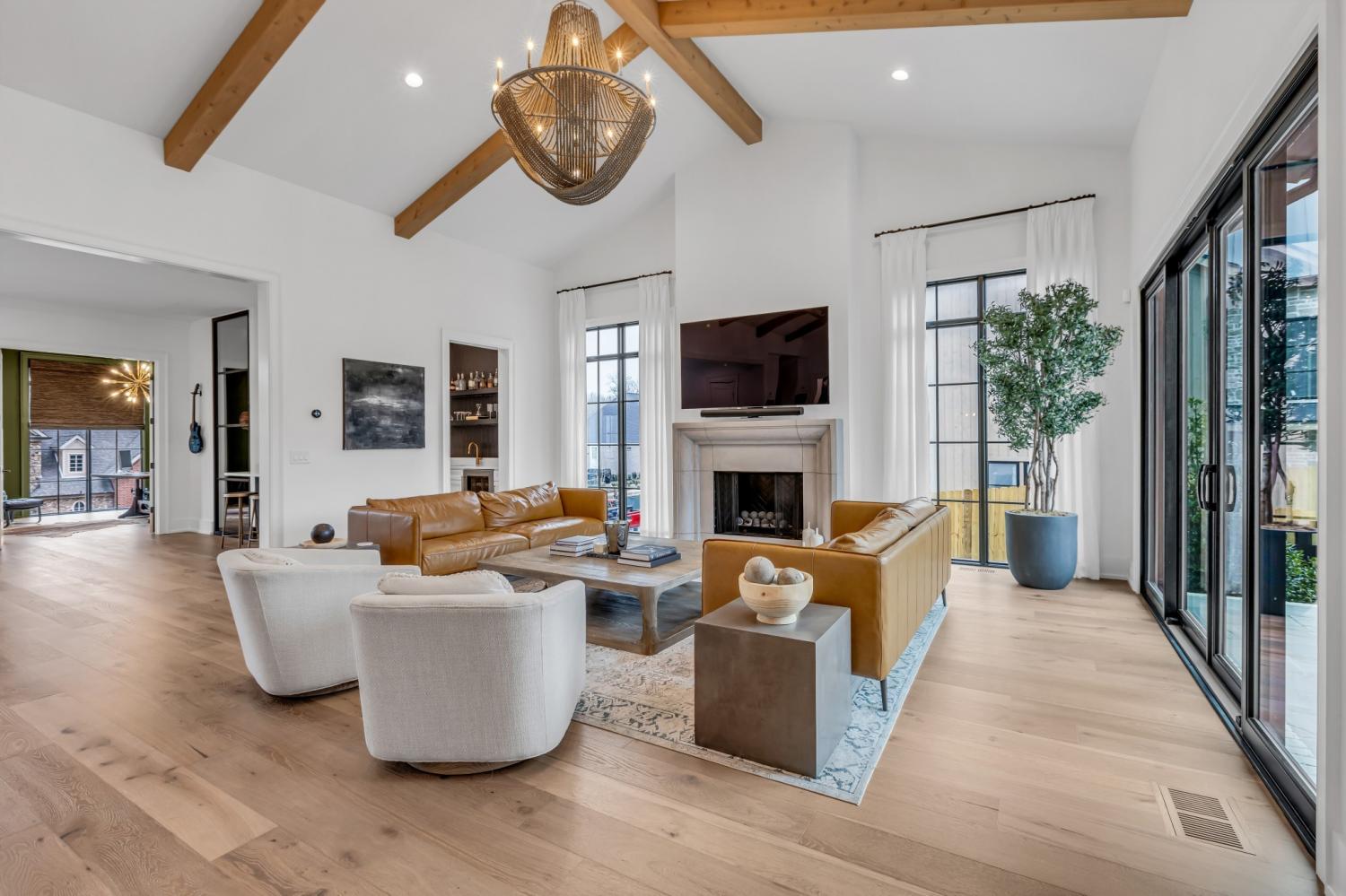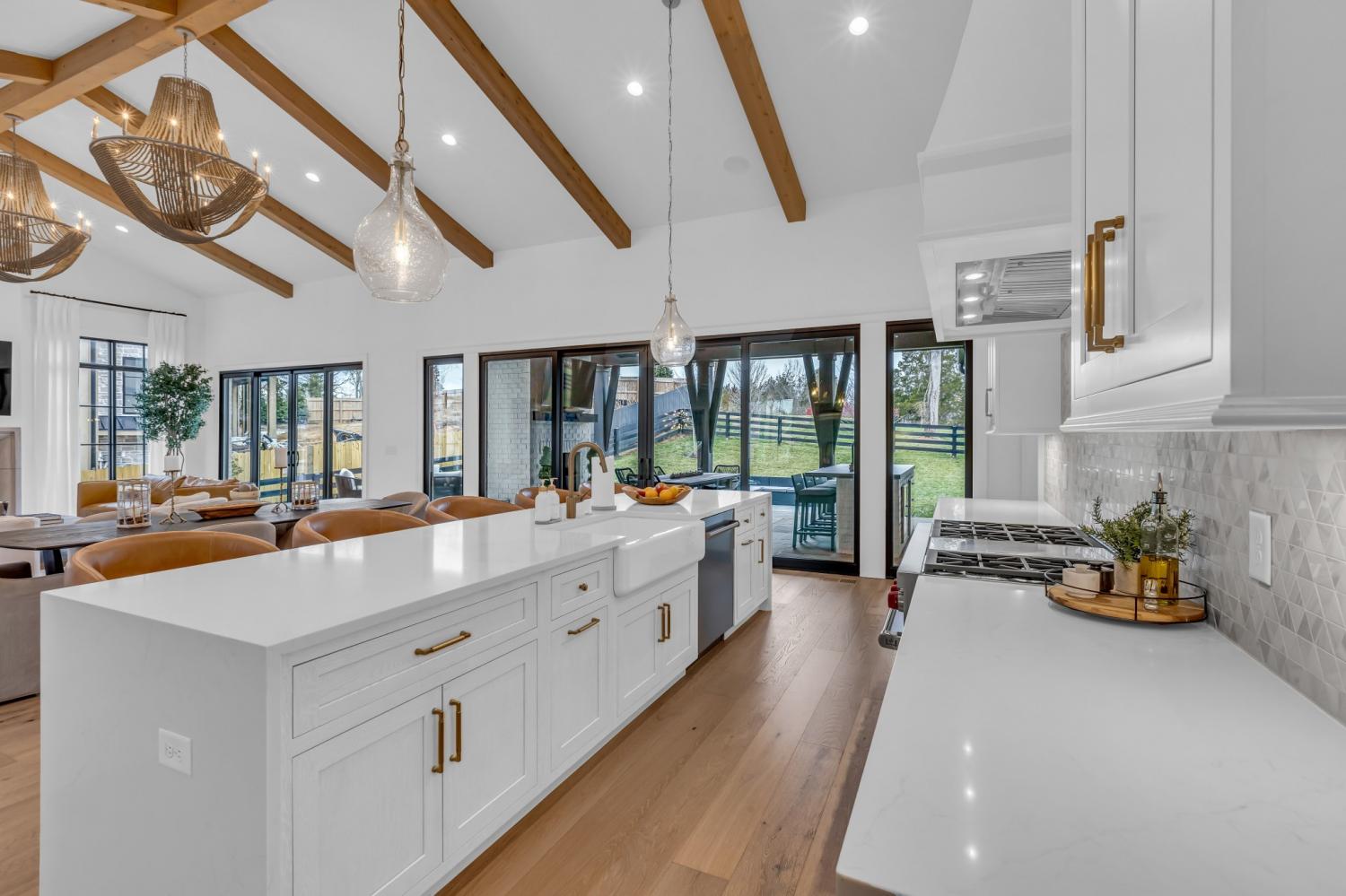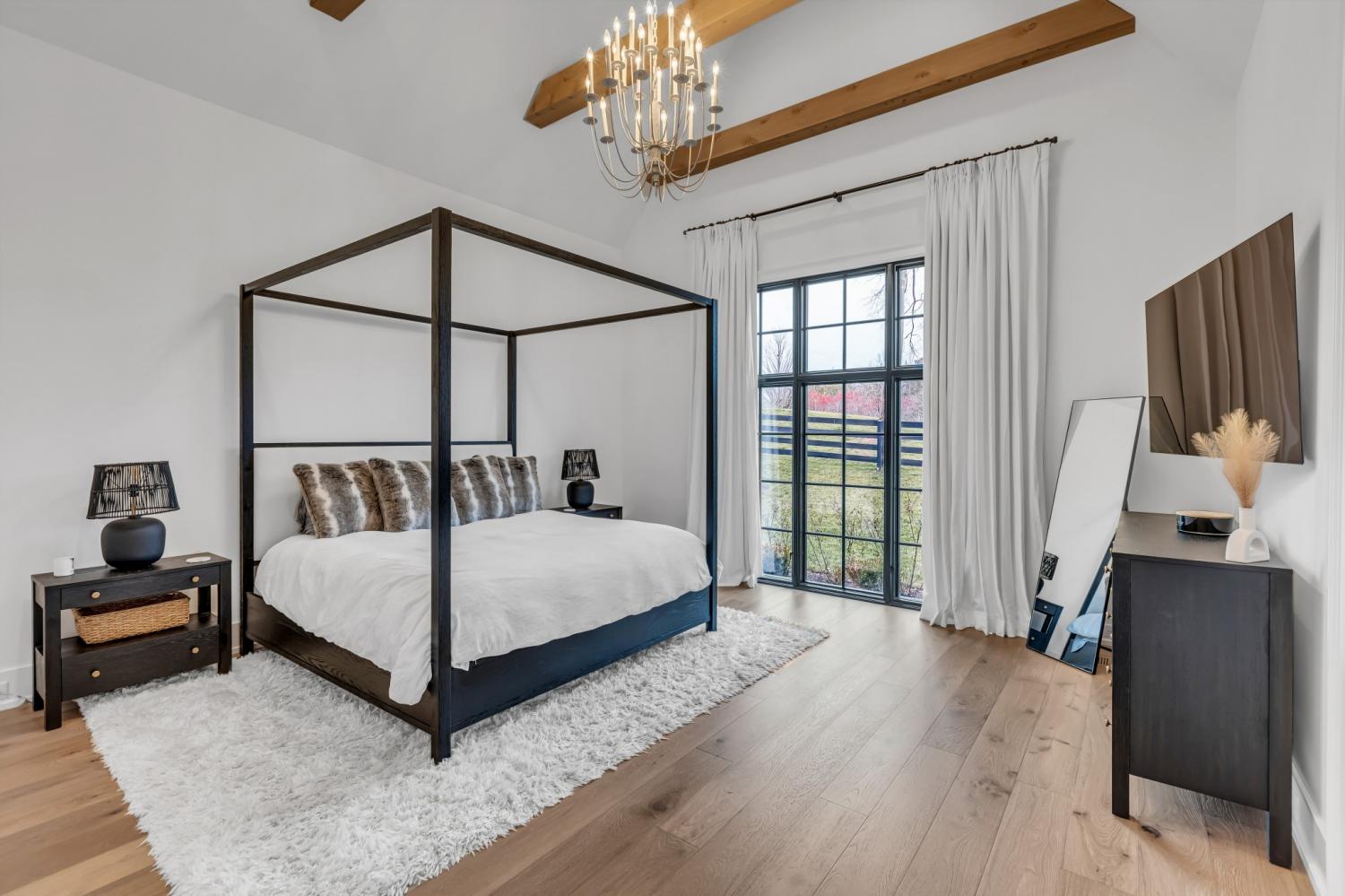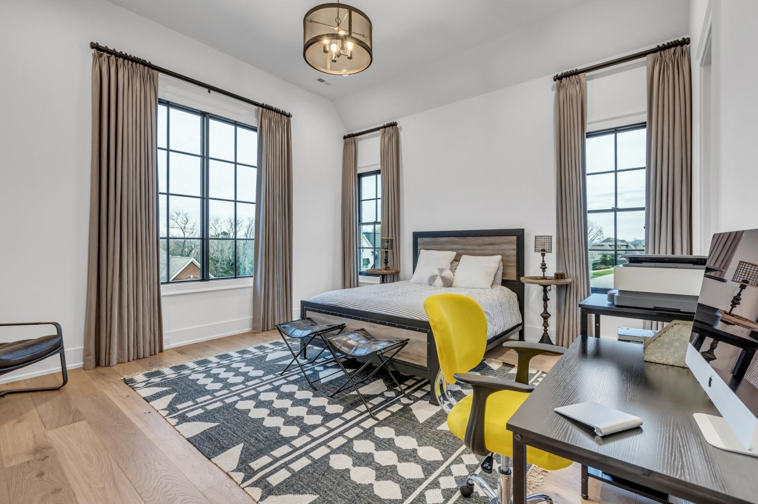 Welcome to this stunning custom-built residence in the prestigious Troubadour Golf & Field Club, crafted by Tennessee Valley Homes in 2022. Spanning 5,929 square feet on a 0.45-acre lot, this architectural masterpiece combines modern elegance with timeless design, offering an unparalleled lifestyle in one of Middle Tennessee’s most sought-after communities. This home features five spacious bedrooms, five full bathrooms, and two half baths, providing ample space for family and guests. Step inside to discover an open-concept floor plan flooded with natural light and adorned with wide-plank hardwood floors. The soaring ceilings and exposed beams create a sense of grandeur, while sleek, modern finishes provide a warm and inviting atmosphere. The gourmet kitchen boasts top-of-the-line appliances, a large island, and seamless flow into the dining and living areas—perfect for entertaining. A dedicated office space with custom millwork and large windows offers serene views and an ideal work-from-home environment. The luxurious primary suite serves as a private retreat, featuring a spa-like bathroom and generous closet space. For the ultimate in leisure and entertainment, enjoy the indoor bar room with a glass-enclosed wine cellar, a state-of-the-art golf simulator, and multiple lounge areas designed for relaxation and social gatherings. The expansive outdoor entertaining area is a true showstopper, featuring a fully equipped kitchen, a cozy fireplace, and ample seating for guests. The highlight is the resort-style pool and hot tub, surrounded by sleek stonework and lush landscaping, offering breathtaking views of Troubadour’s Tom Fazio-designed championship golf course. Additional features include striking curb appeal with modern architectural design, large glass doors that seamlessly connect indoor and outdoor spaces, designer lighting fixtures, custom finishes throughout, and a three-car garage with ample storage. This home is more than a residence—it’s a lifestyle.