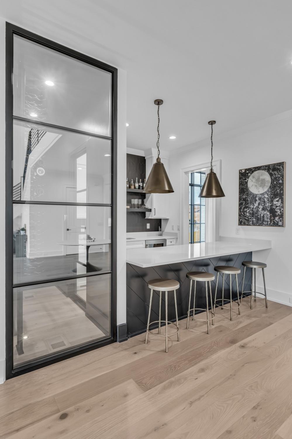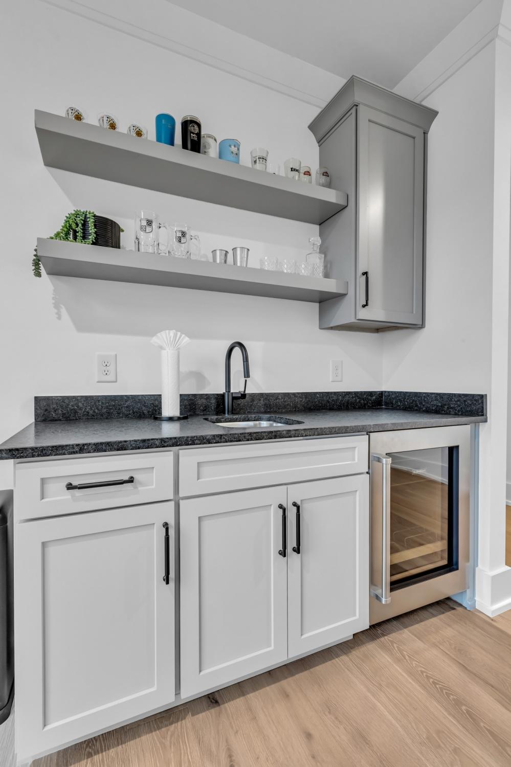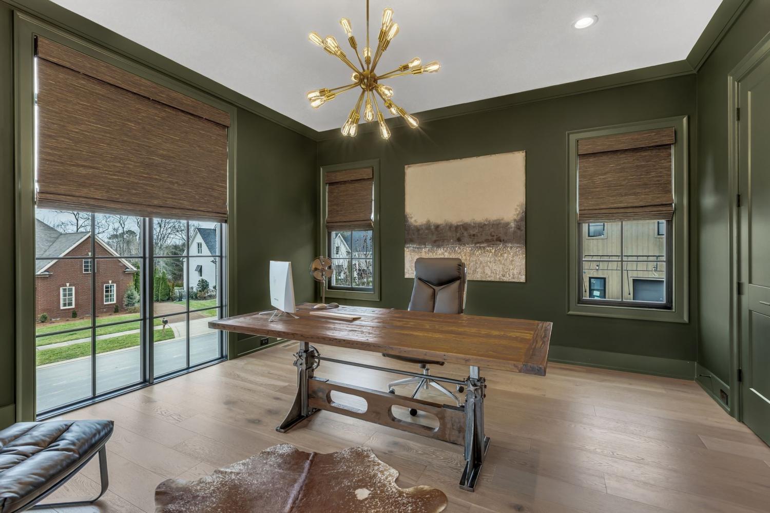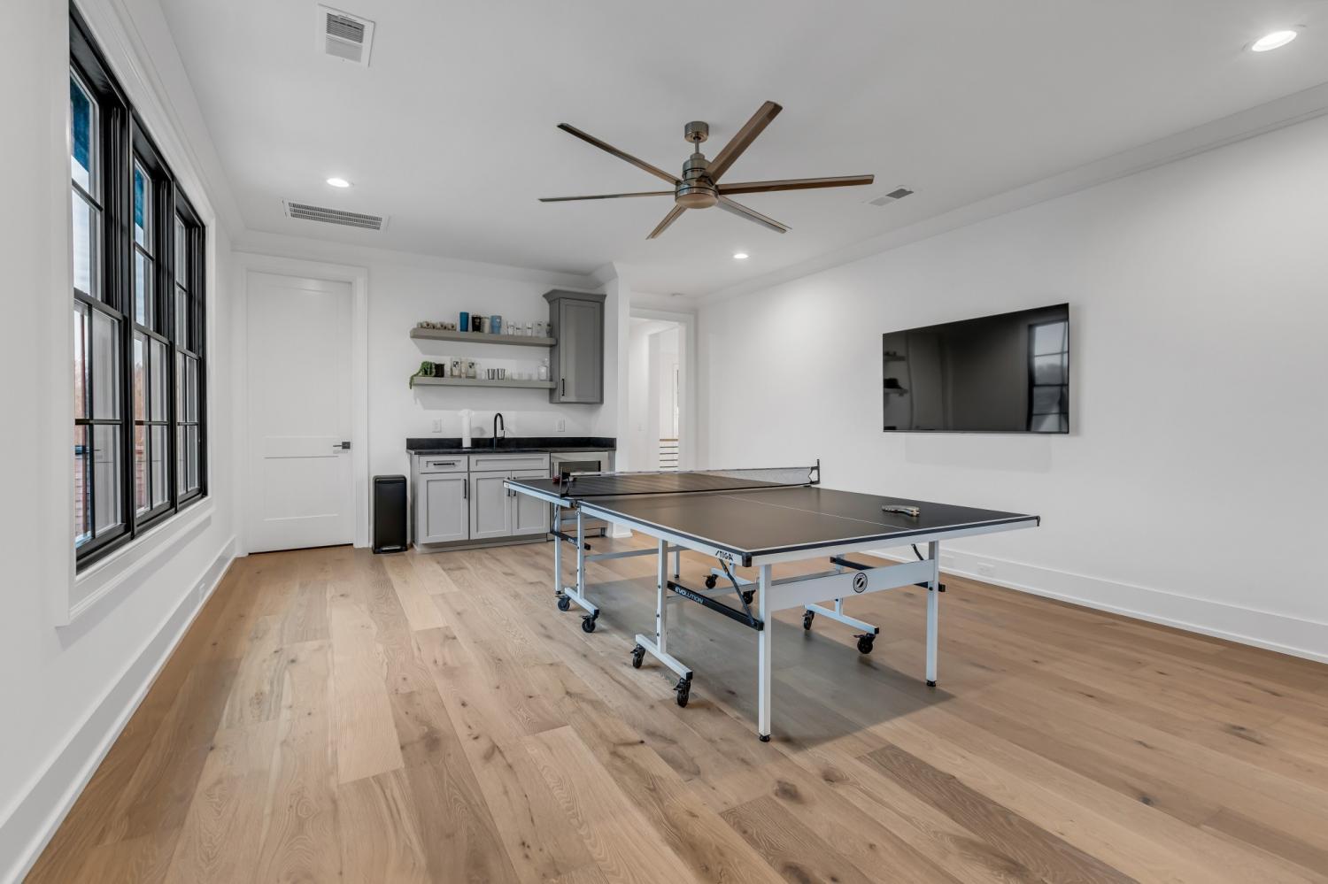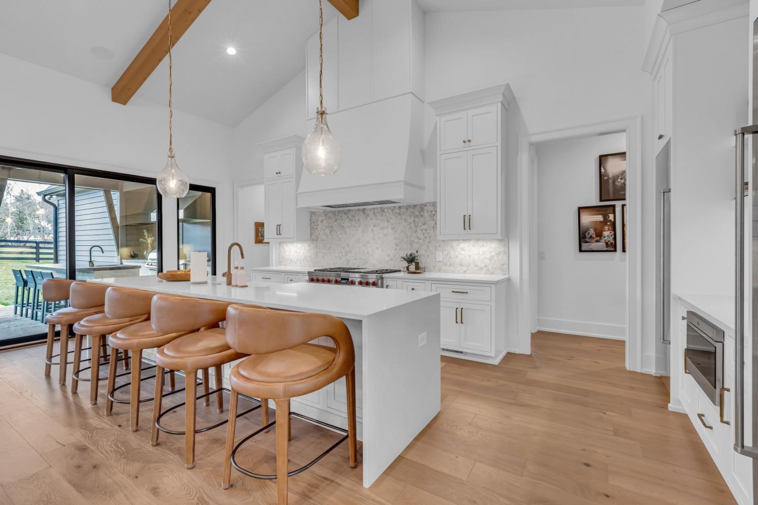 Welcome to this stunning custom-built residence in the prestigious Troubadour Golf & Field Club, crafted by Tennessee Valley Homes in 2022. Spanning 5,929 square feet on a 0.45-acre lot, this architectural masterpiece combines modern elegance with timeless design, offering an unparalleled lifestyle in one of Middle Tennessee’s most sought-after communities. This home features five spacious bedrooms, five full bathrooms, and two half baths, providing ample space for family and guests. Step inside to discover an open-concept floor plan flooded with natural light and adorned with wide-plank hardwood floors. The soaring ceilings and exposed beams create a sense of grandeur, while sleek, modern finishes provide a warm and inviting atmosphere. The gourmet kitchen boasts top-of-the-line appliances, a large island, and seamless flow into the dining and living areas—perfect for entertaining. A dedicated office space with custom millwork and large windows offers serene views and an ideal work-from-home environment. The luxurious primary suite serves as a private retreat, featuring a spa-like bathroom and generous closet space. For the ultimate in leisure and entertainment, enjoy the indoor bar room with a glass-enclosed wine cellar, a state-of-the-art golf simulator, and multiple lounge areas designed for relaxation and social gatherings. The expansive outdoor entertaining area is a true showstopper, featuring a fully equipped kitchen, a cozy fireplace, and ample seating for guests. The highlight is the resort-style pool and hot tub, surrounded by sleek stonework and lush landscaping, offering breathtaking views of Troubadour’s Tom Fazio-designed championship golf course. Additional features include striking curb appeal with modern architectural design, large glass doors that seamlessly connect indoor and outdoor spaces, designer lighting fixtures, custom finishes throughout, and a three-car garage with ample storage. This home is more than a residence—it’s a lifestyle.