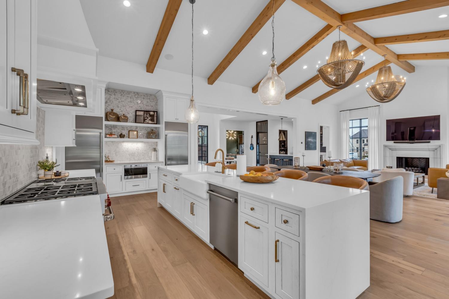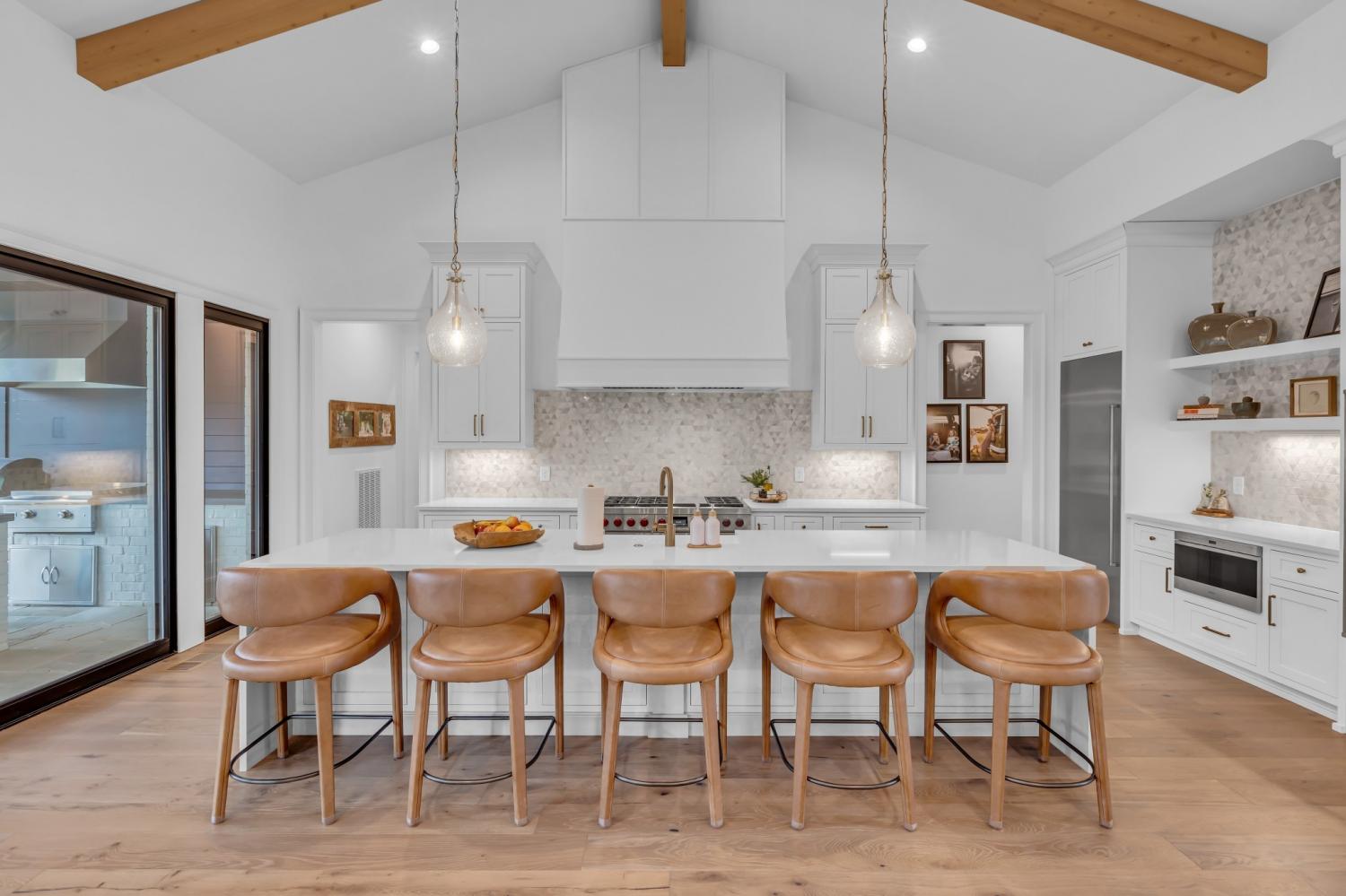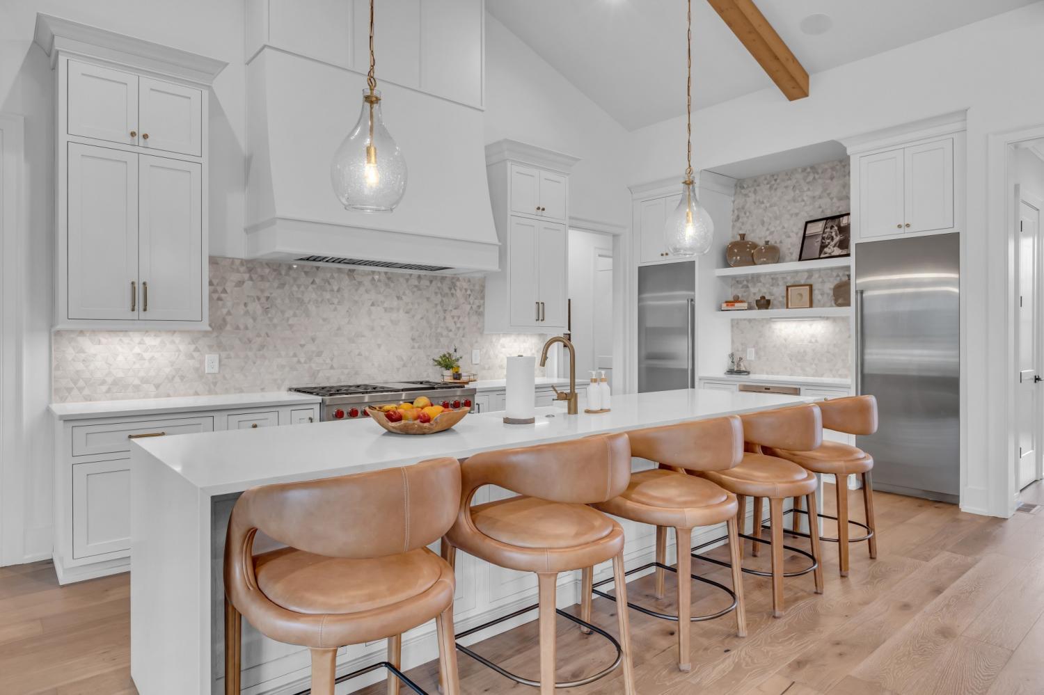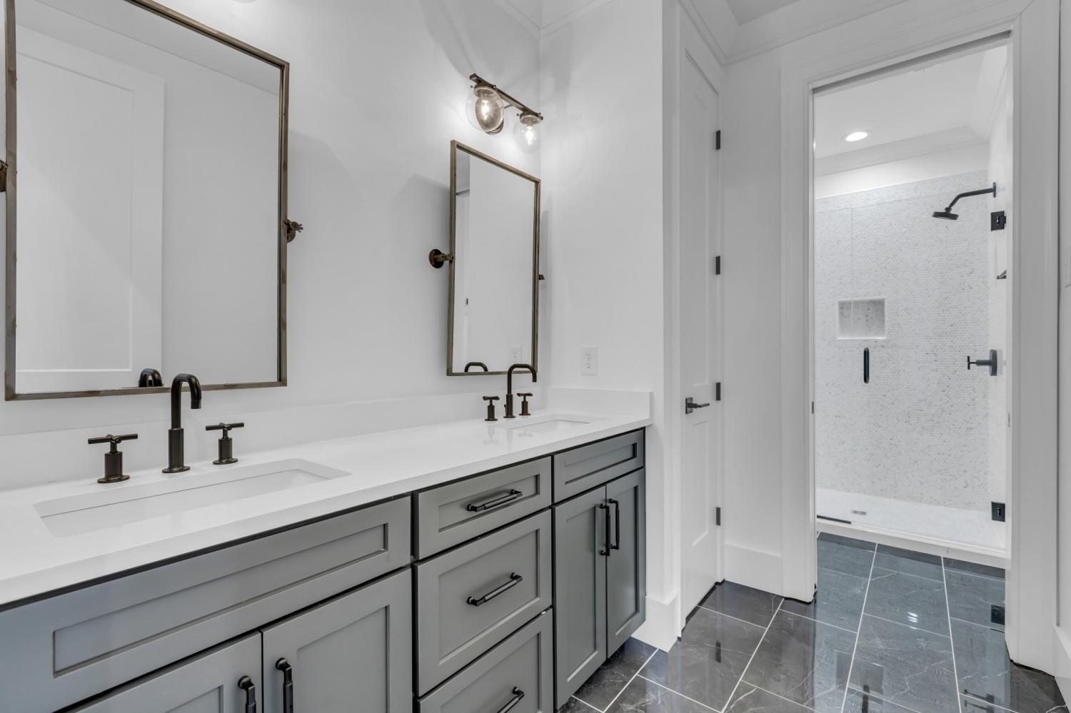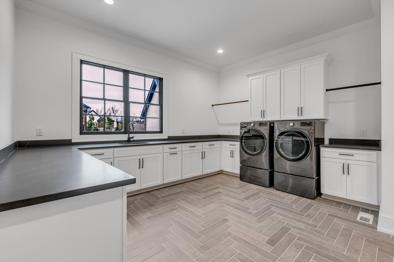 Welcome to this stunning custom-built residence in the prestigious Troubadour Golf & Field Club, crafted by Tennessee Valley Homes in 2022. Spanning 5,929 square feet on a 0.45-acre lot, this architectural masterpiece combines modern elegance with timeless design, offering an unparalleled lifestyle in one of Middle Tennessee’s most sought-after communities. This home features five spacious bedrooms, five full bathrooms, and two half baths, providing ample space for family and guests. Step inside to discover an open-concept floor plan flooded with natural light and adorned with wide-plank hardwood floors. The soaring ceilings and exposed beams create a sense of grandeur, while sleek, modern finishes provide a warm and inviting atmosphere. The gourmet kitchen boasts top-of-the-line appliances, a large island, and seamless flow into the dining and living areas—perfect for entertaining. A dedicated office space with custom millwork and large windows offers serene views and an ideal work-from-home environment. The luxurious primary suite serves as a private retreat, featuring a spa-like bathroom and generous closet space. For the ultimate in leisure and entertainment, enjoy the indoor bar room with a glass-enclosed wine cellar, a state-of-the-art golf simulator, and multiple lounge areas designed for relaxation and social gatherings. The expansive outdoor entertaining area is a true showstopper, featuring a fully equipped kitchen, a cozy fireplace, and ample seating for guests. The highlight is the resort-style pool and hot tub, surrounded by sleek stonework and lush landscaping, offering breathtaking views of Troubadour’s Tom Fazio-designed championship golf course. Additional features include striking curb appeal with modern architectural design, large glass doors that seamlessly connect indoor and outdoor spaces, designer lighting fixtures, custom finishes throughout, and a three-car garage with ample storage. This home is more than a residence—it’s a lifestyle.