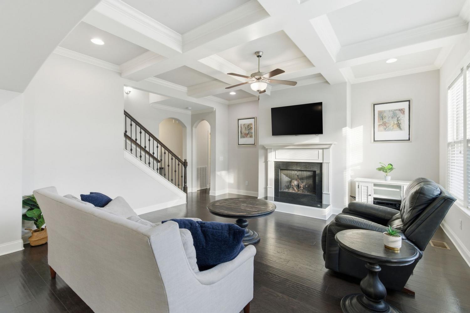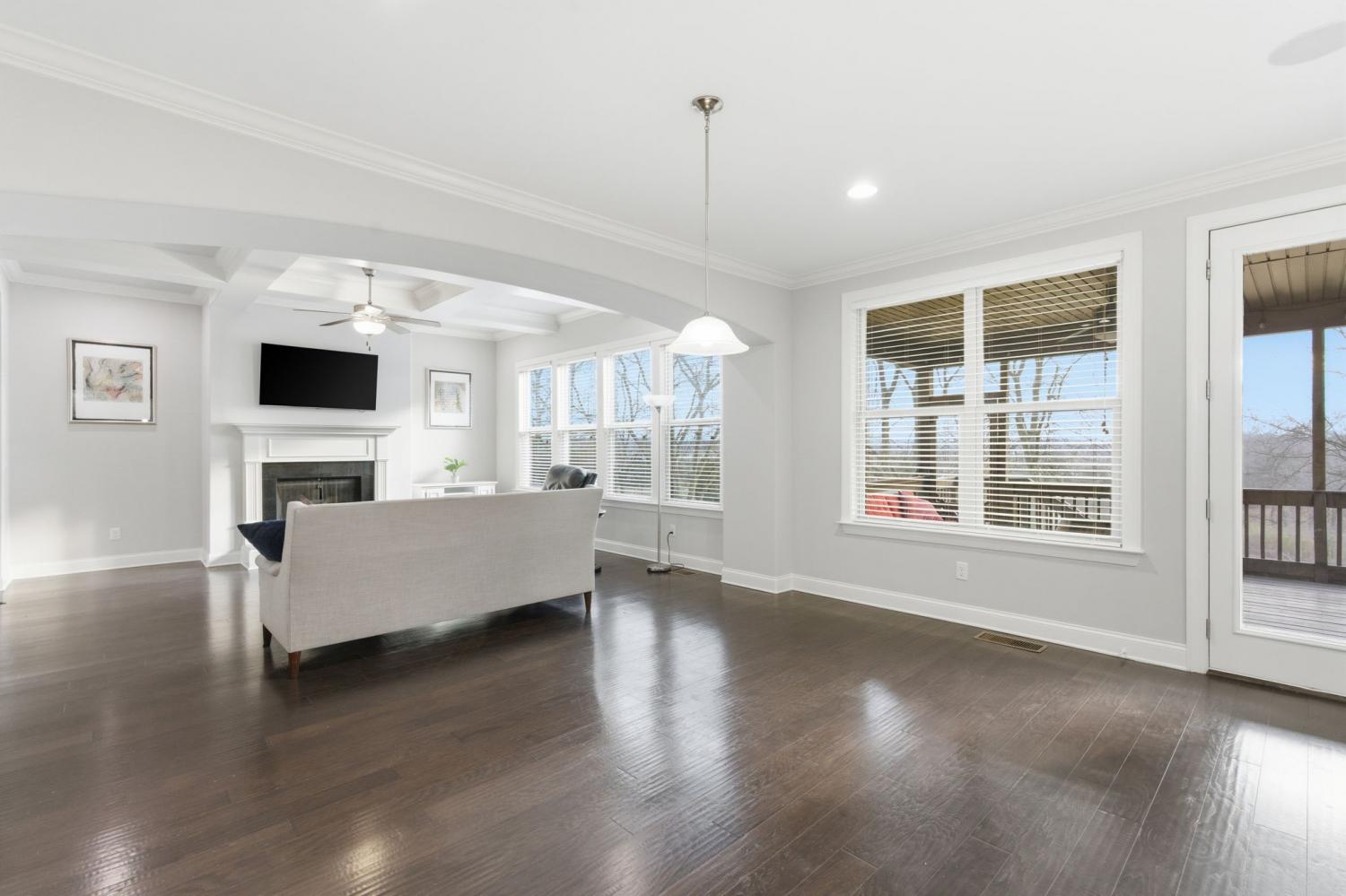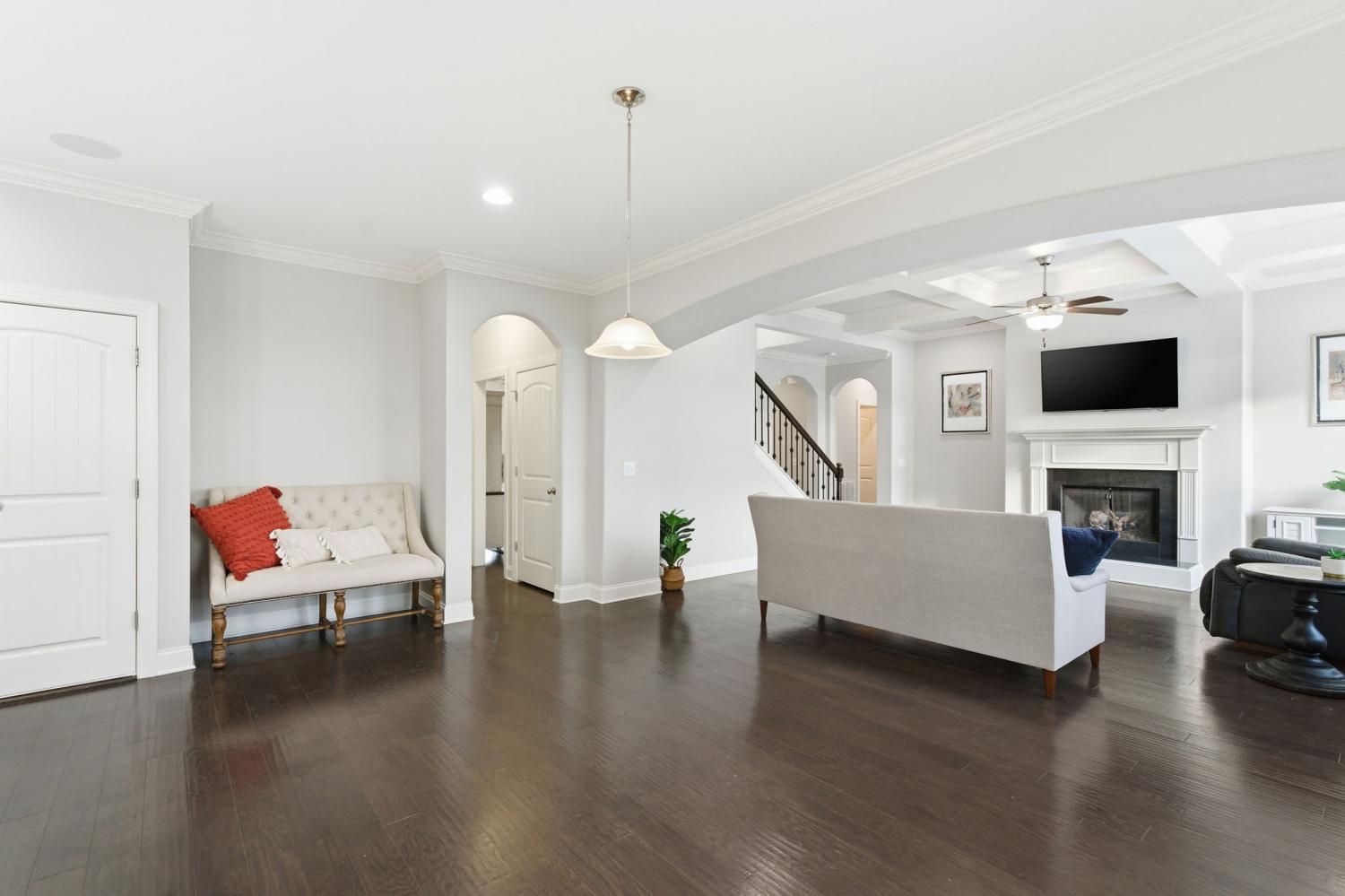 Discover refined living in one of the area’s most sought-after communities, just 20 minutes from downtown Nashville. This beautifully maintained 4-bedroom, 3.5-bath home offers a thoughtfully designed floor plan that balances everyday comfort with effortless entertaining. The main level features rich hardwood floors, an inviting living room with a coffered ceiling and fireplace, and seamless flow into the kitchen and dining areas. The chef-inspired kitchen showcases an expansive granite island, custom cabinetry, stainless steel appliances, and ample space for gathering. A flexible front room with French doors works beautifully as a home office, formal dining room, or additional living space. The owner’s suite is conveniently located on the main level and includes a spacious bedroom, spa-like bath with dual vanities, soaking tub, separate shower, an oversized walk-in closet, and a private laundry room just steps away. Upstairs, you’ll find three additional bedrooms—two connected by a Jack-and-Jill bathroom—plus an additional full bath and a large bonus room ideal for a media room, playroom, or home gym. The setting truly sets this home apart. Backing directly to Ravenwood Park and the Stones River Greenway, the property offers peaceful, tree-lined views and immediate access to miles of scenic walking and biking trails—an extension of your backyard and lifestyle. Outdoor living is layered and inviting with a screened-in back porch overlooking the greenway and a ground-level concrete patio perfect for grilling and gathering. Additional value comes from the large crawlspace with approximately 8-foot clearance—ideal for storage, hobbies, or future flexibility. A fully paid-off solar panel system conveys with the home, offering impressively low utility costs, a transferable NES agreement with potential rebates, and approximately 11 years remaining on the warranty.