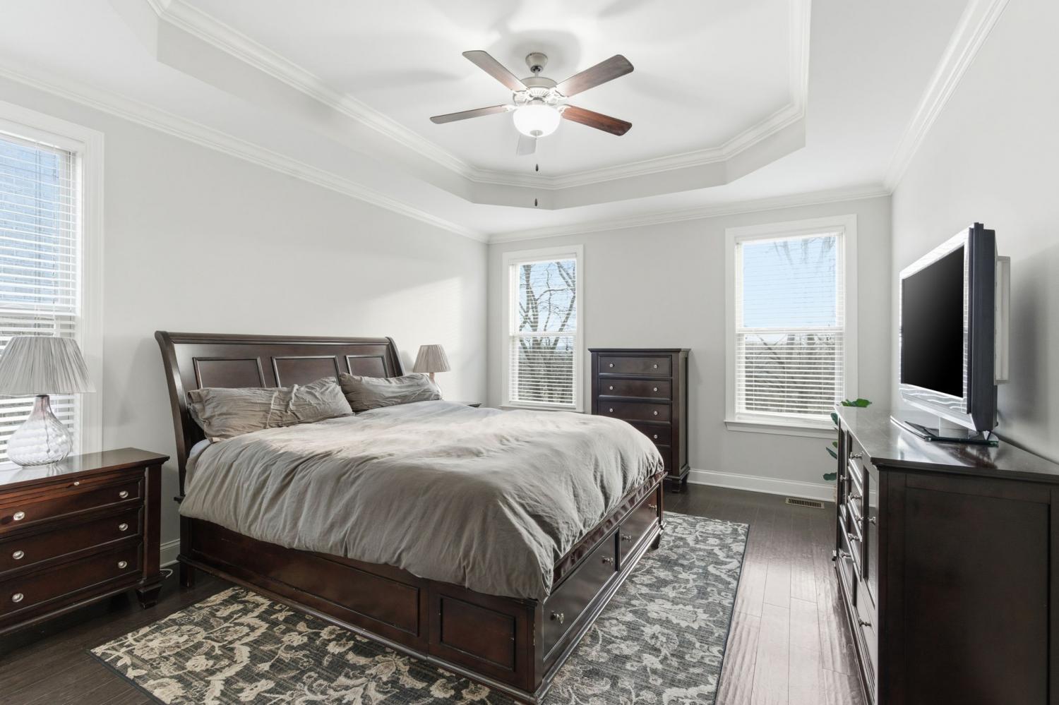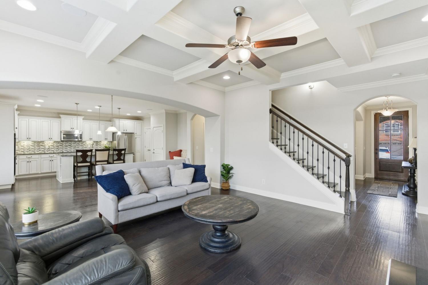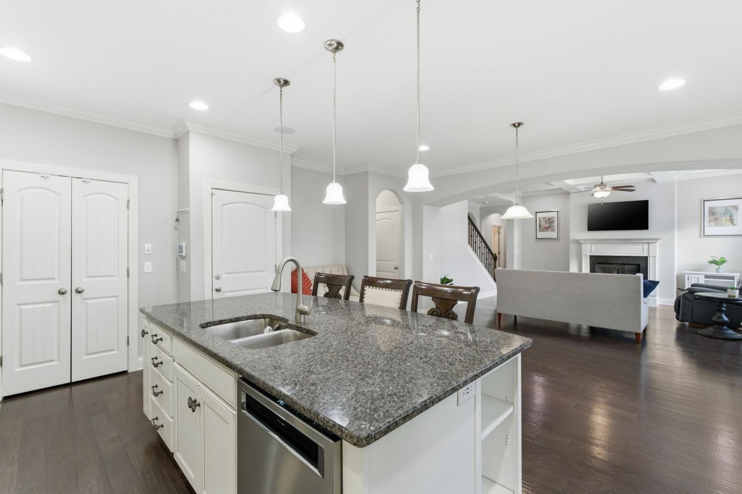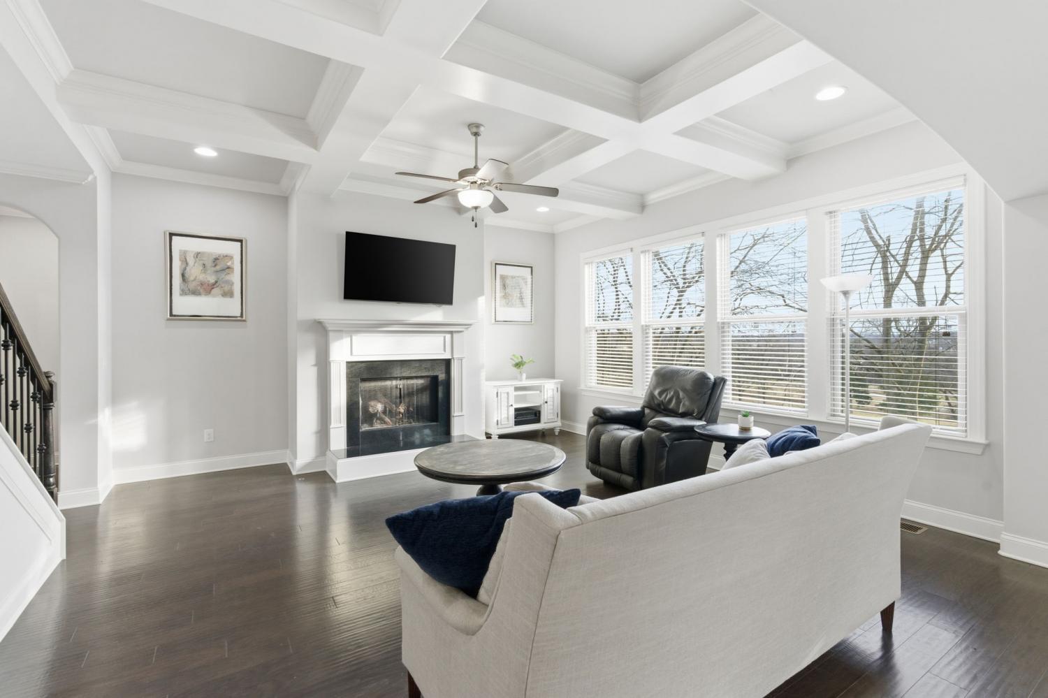 Discover refined living in one of the area’s most sought-after communities, just 20 minutes from downtown Nashville. This beautifully maintained 4-bedroom, 3.5-bath home offers a thoughtfully designed floor plan that balances everyday comfort with effortless entertaining. The main level features rich hardwood floors, an inviting living room with a coffered ceiling and fireplace, and seamless flow into the kitchen and dining areas. The chef-inspired kitchen showcases an expansive granite island, custom cabinetry, stainless steel appliances, and ample space for gathering. A flexible front room with French doors works beautifully as a home office, formal dining room, or additional living space. The owner’s suite is conveniently located on the main level and includes a spacious bedroom, spa-like bath with dual vanities, soaking tub, separate shower, an oversized walk-in closet, and a private laundry room just steps away. Upstairs, you’ll find three additional bedrooms—two connected by a Jack-and-Jill bathroom—plus an additional full bath and a large bonus room ideal for a media room, playroom, or home gym. The setting truly sets this home apart. Backing directly to Ravenwood Park and the Stones River Greenway, the property offers peaceful, tree-lined views and immediate access to miles of scenic walking and biking trails—an extension of your backyard and lifestyle. Outdoor living is layered and inviting with a screened-in back porch overlooking the greenway and a ground-level concrete patio perfect for grilling and gathering. Additional value comes from the large crawlspace with approximately 8-foot clearance—ideal for storage, hobbies, or future flexibility. A fully paid-off solar panel system conveys with the home, offering impressively low utility costs, a transferable NES agreement with potential rebates, and approximately 11 years remaining on the warranty.