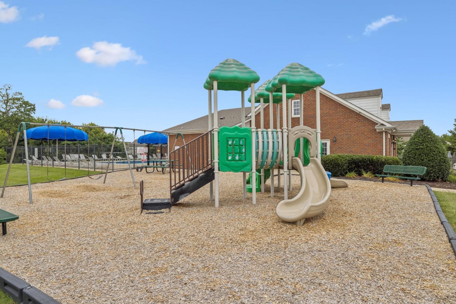 Beautifully updated townhome offering the perfect balance of comfort and style. Each bedroom features its own private bath, providing privacy and flexibility. The kitchen and bathrooms shine with brand-new quartz countertops and faucets, paired with updated designer lighting/ceiling fans throughout. Georgeous refinished hardwood floors flow across the main level, while new carpet upstairs adds warmth. With all-new interior paint, this home is completely move-in ready. Step outside to your private deck for quiet mornings or evening gatherings. Community pool, clubhouse and playground are steps away! Conveniently located near shopping, dining, and schools—this townhome checks all the boxes!