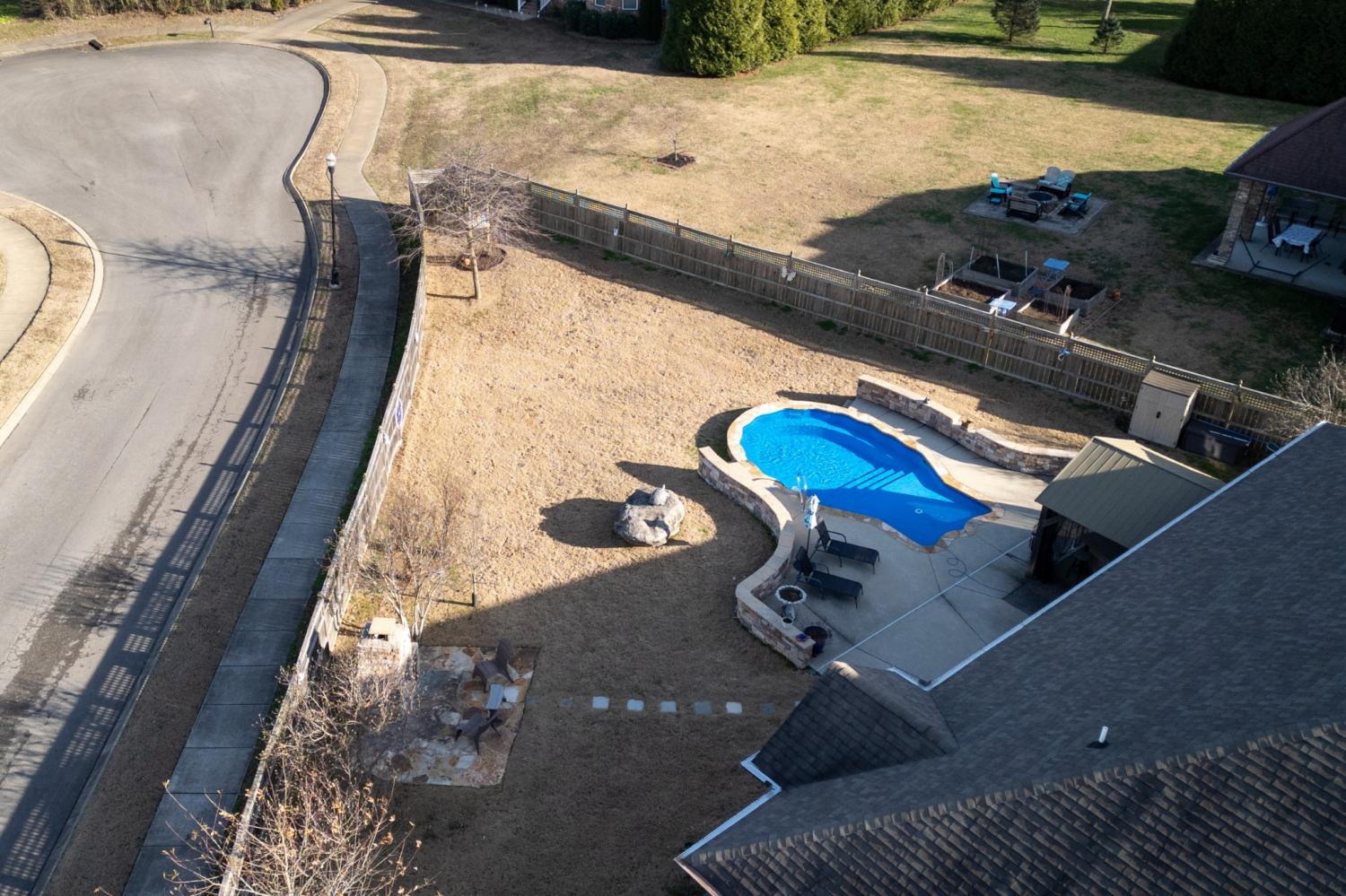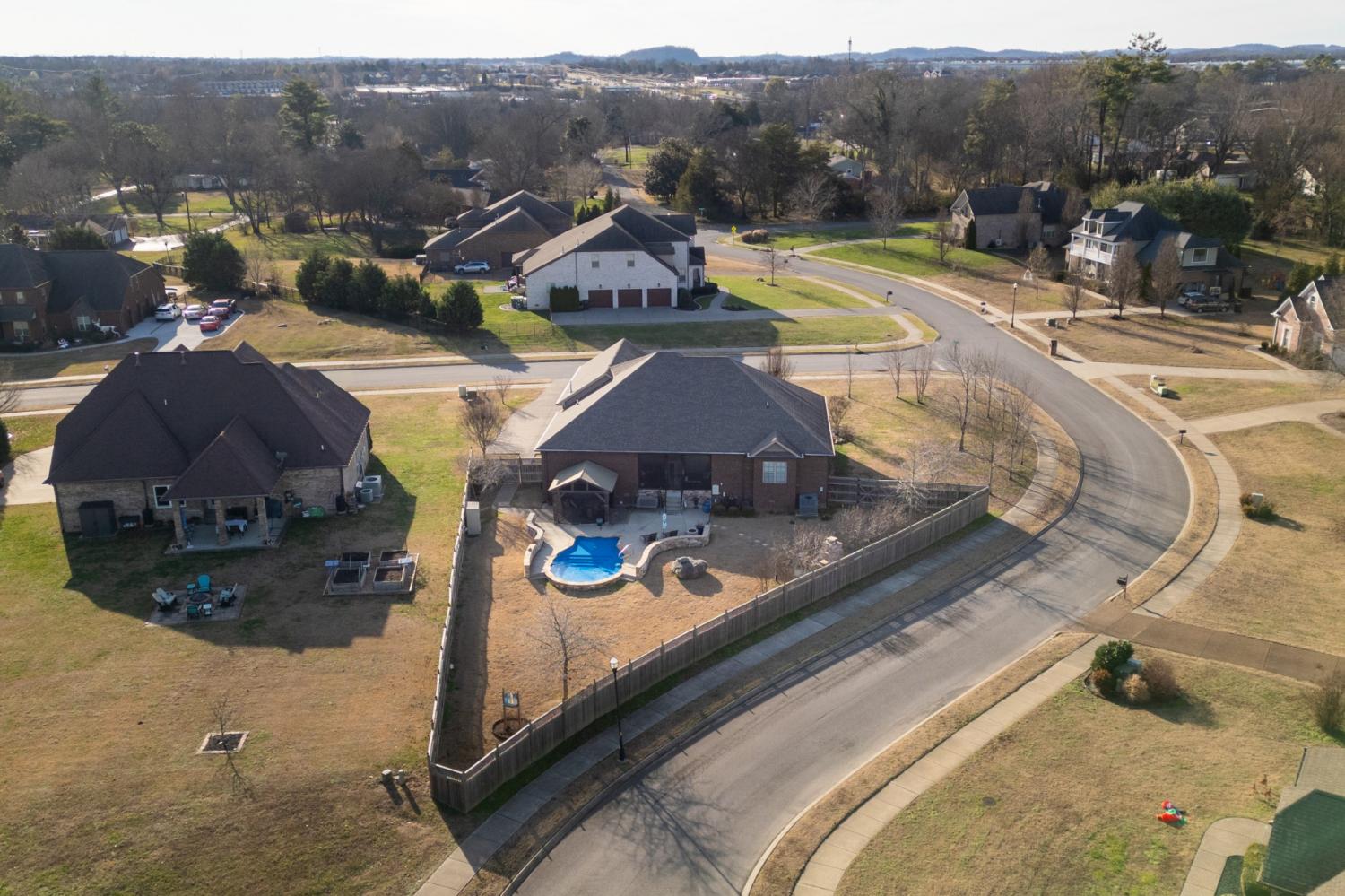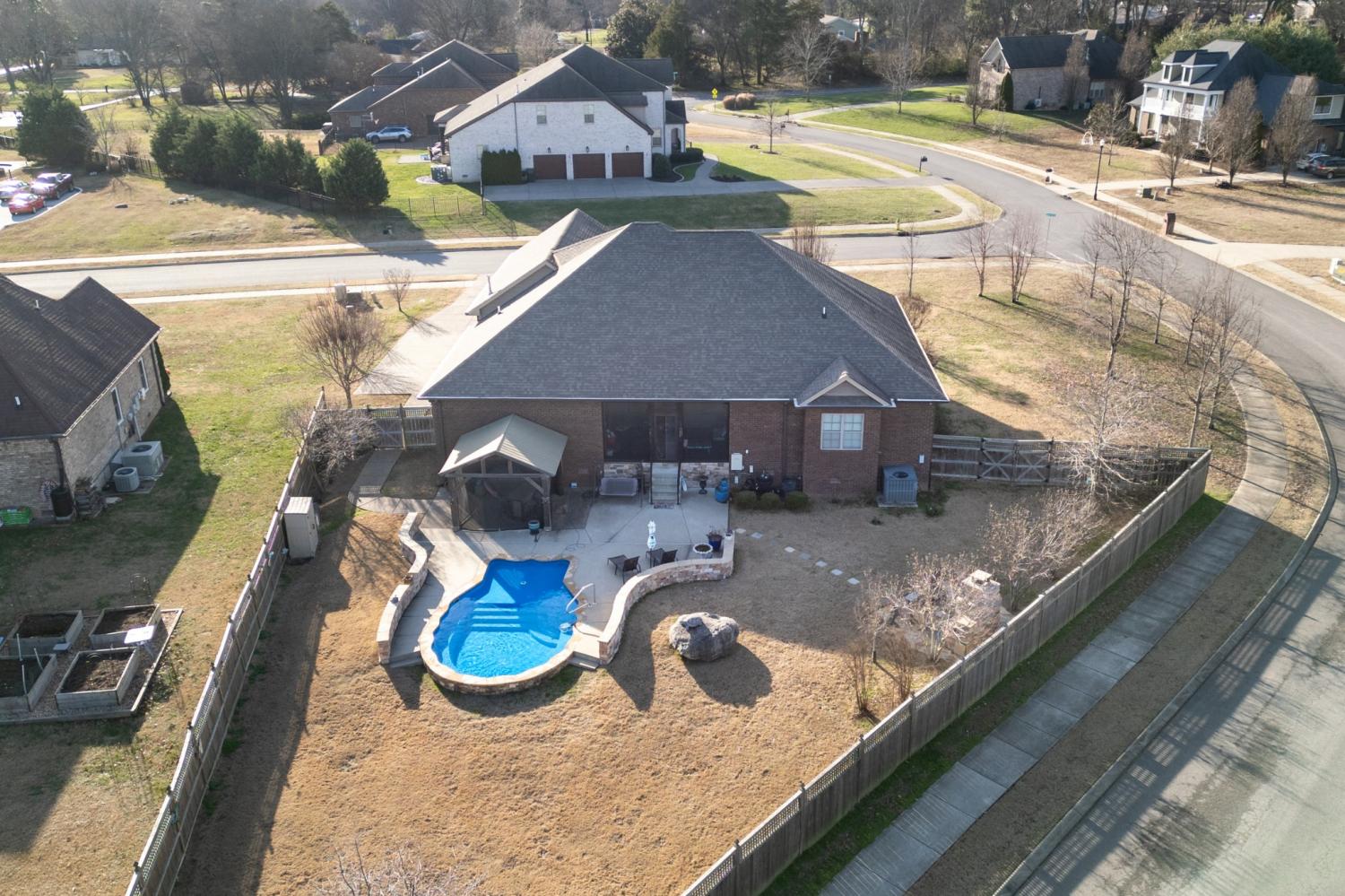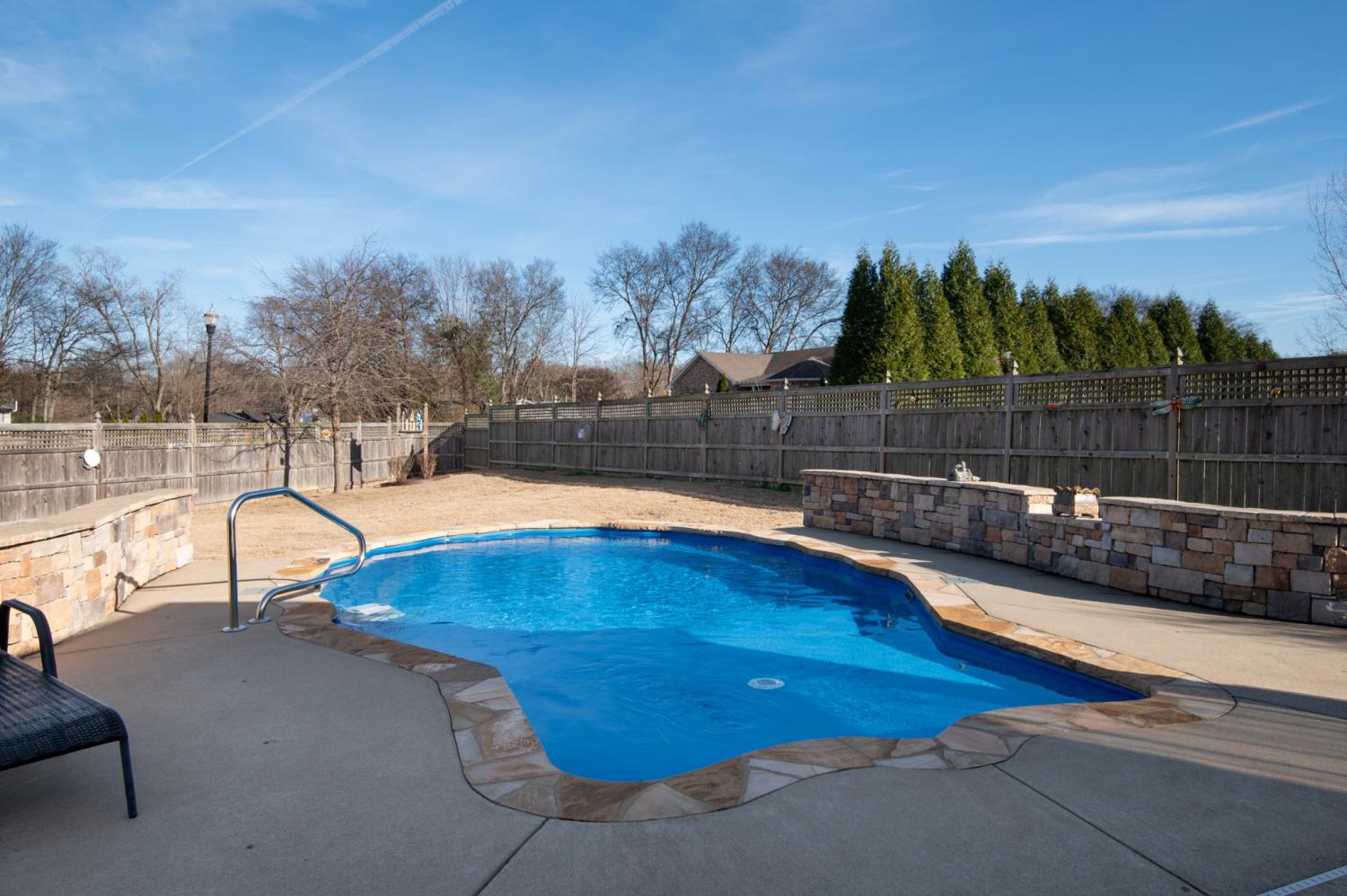 Incredible NEW Price! Welcome to 605 Concord Drive where PRIME LOCATION, .48 Acre LEVEL LOT, ONE LEVEL LIVING & NO HOA come together! Additionally, this all brick custom residence is where elevated design meets exceptional functionality. Upon entering the home, distinctive features such as the gleaming hardwood flooring, 9' coffered & wood beam ceilings plus 2 natural gas fireplaces showcase its unique quality. Thoughtfully curated upgrades are evident throughout as well, beginning with complete remodel of both full baths on main level. The spa-inspired primary suite features a zero-step luxury shower with waterfall and rain shower fixture, a generous soaking tub, and heated tile floors for year-round comfort. The heart of the home is a chef’s kitchen outfitted with high-end finishes, an oversized island, and a dedicated prep area—ideal for both everyday living and hosting on any scale. Decorative steel security doors add peace of mind without compromising style, while seamless transitions between indoor and outdoor spaces create effortless flow for entertaining. Outdoors, natural stone retaining walls and a beautifully designed pool surround frame a heated saltwater pool, offering a sophisticated backdrop for relaxation. Natural stone, outdoor wood fireplace with cozy patio space is perfect for gathering, as well as the attached, screened porch with tv & ceiling fans. Additionally, the screened outdoor pavilion with rotating fan, lighting and gas hook up eliminates need for heavy gas tanks for grilling and provide flexibility, privacy and a resort-style experience. Completing the home is a spacious three-car garage and a setting that balances luxury, comfort, and architectural elegance in every detail. Ring security system to remain. Ideally located minutes from TN386 and 25 minutes to Nashville.