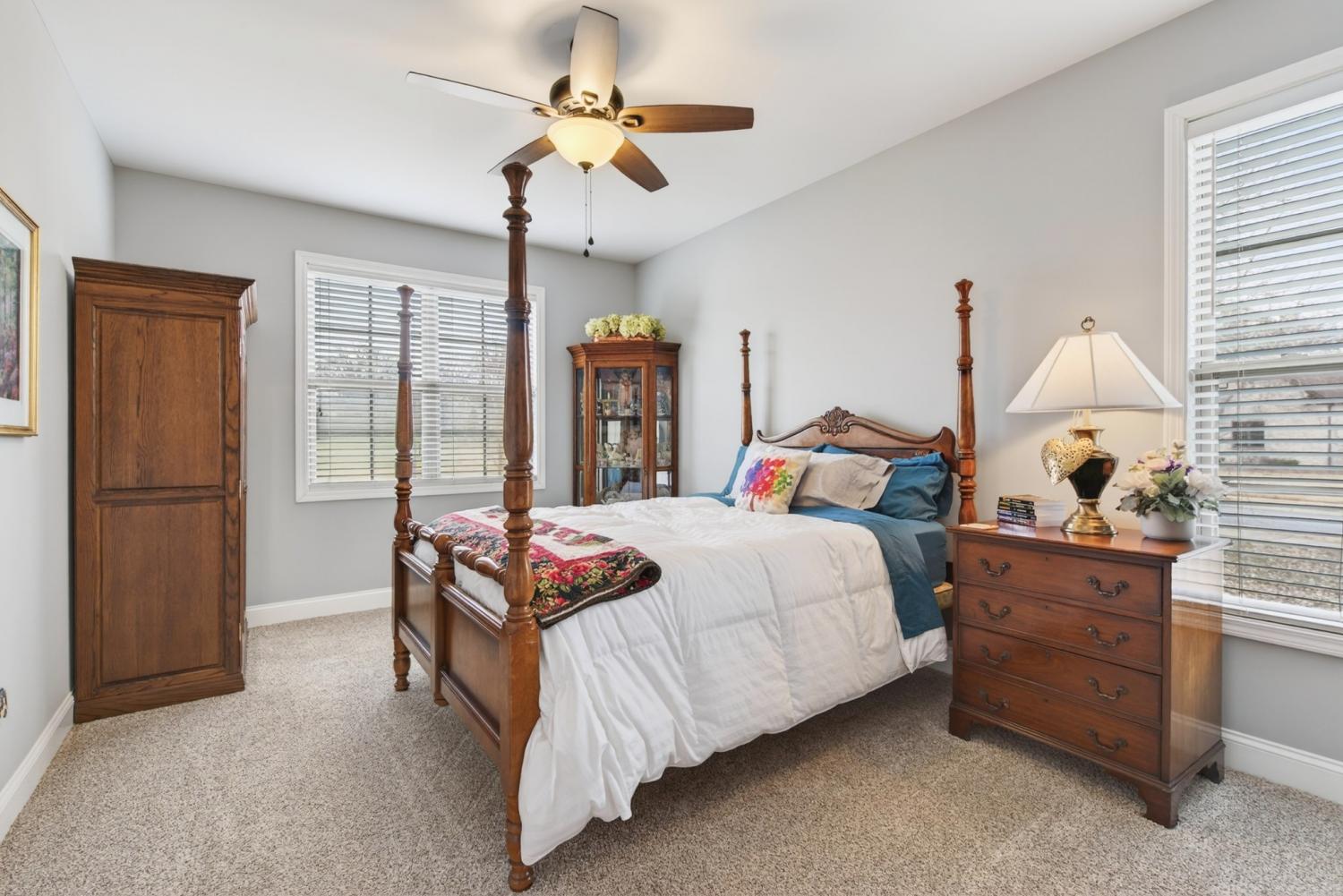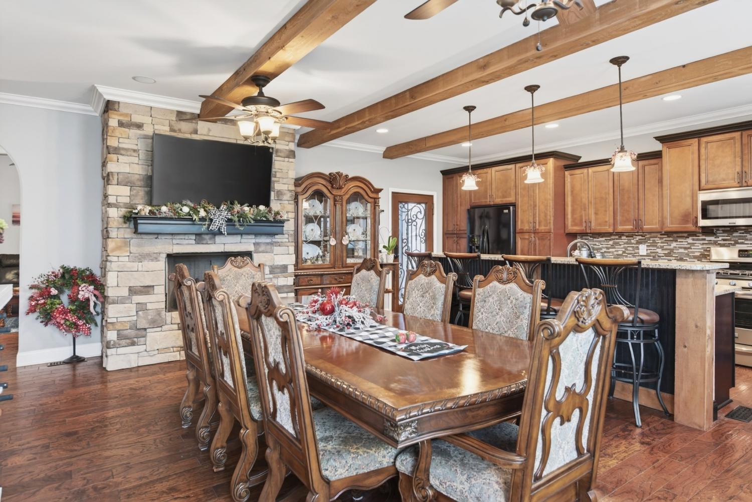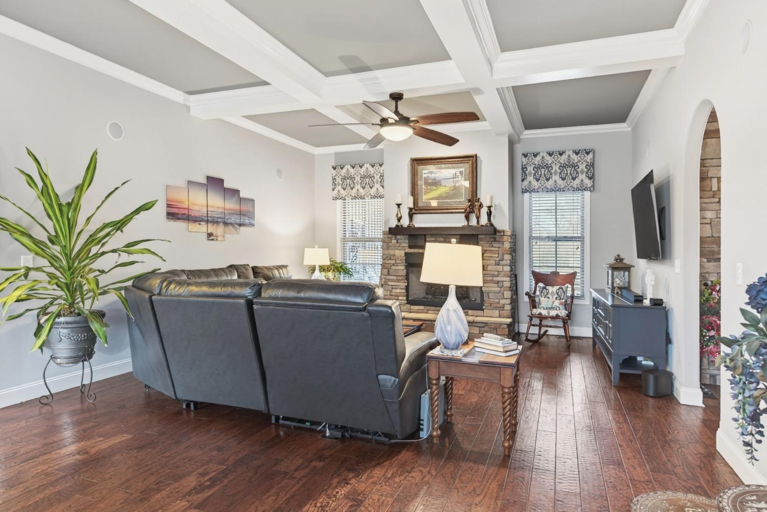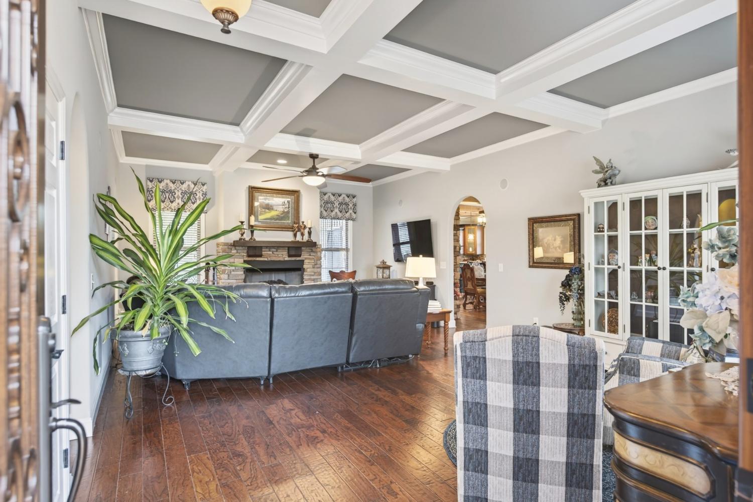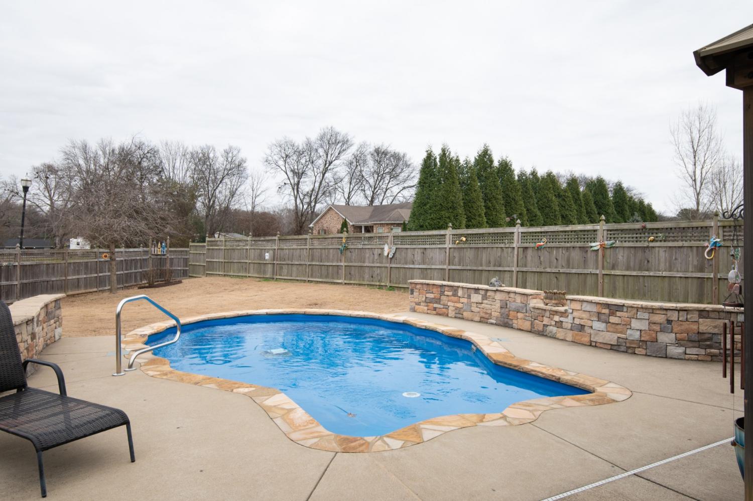 Incredible NEW Price! Welcome to 605 Concord Drive where PRIME LOCATION, .48 Acre LEVEL LOT, ONE LEVEL LIVING & NO HOA come together! Additionally, this all brick custom residence is where elevated design meets exceptional functionality. Upon entering the home, distinctive features such as the gleaming hardwood flooring, 9' coffered & wood beam ceilings plus 2 natural gas fireplaces showcase its unique quality. Thoughtfully curated upgrades are evident throughout as well, beginning with complete remodel of both full baths on main level. The spa-inspired primary suite features a zero-step luxury shower with waterfall and rain shower fixture, a generous soaking tub, and heated tile floors for year-round comfort. The heart of the home is a chef’s kitchen outfitted with high-end finishes, an oversized island, and a dedicated prep area—ideal for both everyday living and hosting on any scale. Decorative steel security doors add peace of mind without compromising style, while seamless transitions between indoor and outdoor spaces create effortless flow for entertaining. Outdoors, natural stone retaining walls and a beautifully designed pool surround frame a heated saltwater pool, offering a sophisticated backdrop for relaxation. Natural stone, outdoor wood fireplace with cozy patio space is perfect for gathering, as well as the attached, screened porch with tv & ceiling fans. Additionally, the screened outdoor pavilion with rotating fan, lighting and gas hook up eliminates need for heavy gas tanks for grilling and provide flexibility, privacy and a resort-style experience. Completing the home is a spacious three-car garage and a setting that balances luxury, comfort, and architectural elegance in every detail. Ring security system to remain. Ideally located minutes from TN386 and 25 minutes to Nashville.