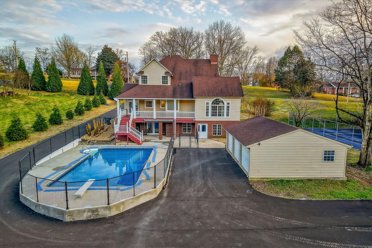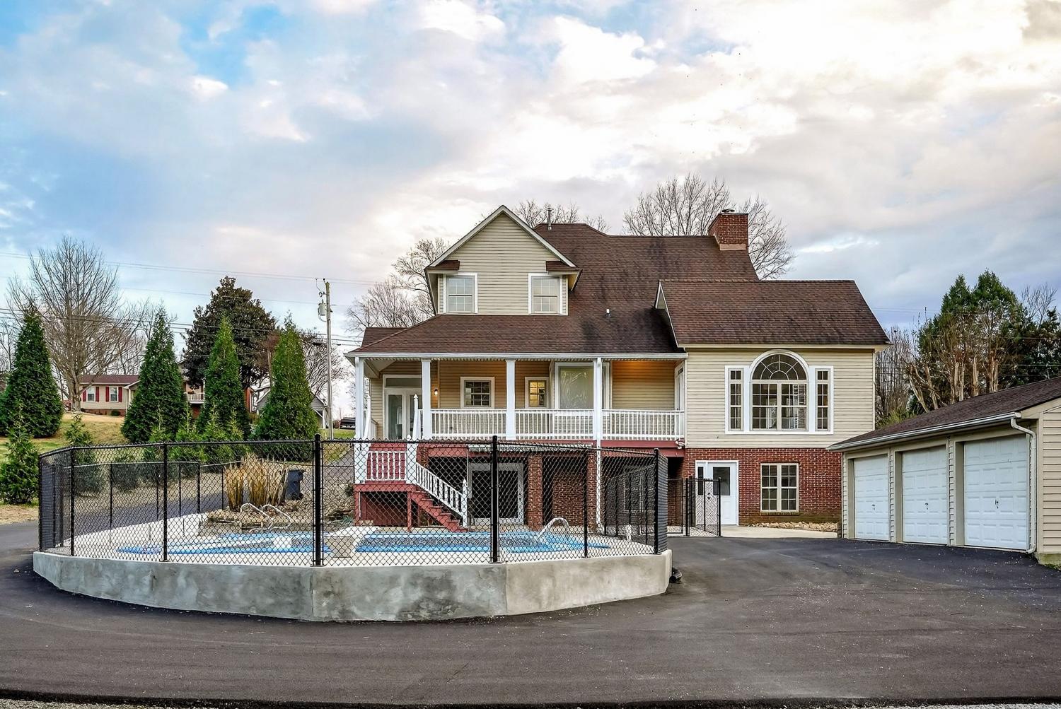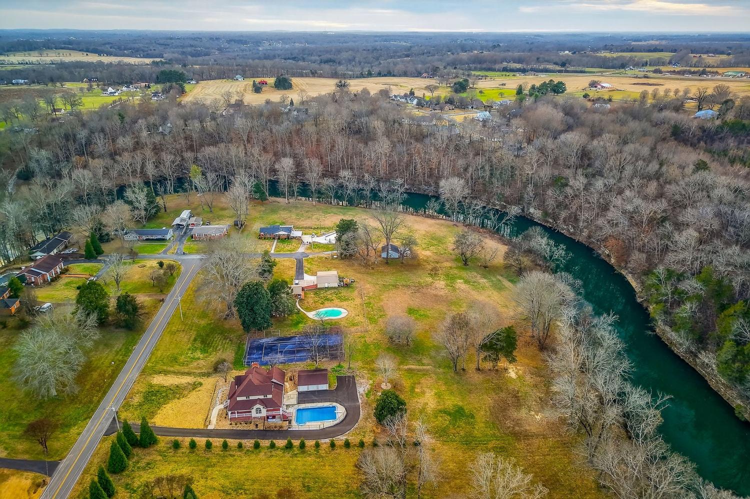 Riverfront property at its finest! This exceptional home offers everything you need. 4/5 bedrooms, 3.5 bathrooms, and an open living room featuring a wood burning fireplace. Enjoy the elegance of beautiful hardwood and tile flooring throughout. The dining area complements a great kitchen with a vaulted ceiling in the breakfast nook. The owner's suite is conveniently located on the main level and includes a beautiful tile shower and spacious walk-in closet. A stunning staircase leads to two additional bedrooms and a full bathroom upstairs. The lower-level family area is enhanced by a wood-burning stove. Additional features include a three-car detached garage and a 20x40 inground pool. The expansive backyard extends to the riverfront, providing a serene and picturesque setting.