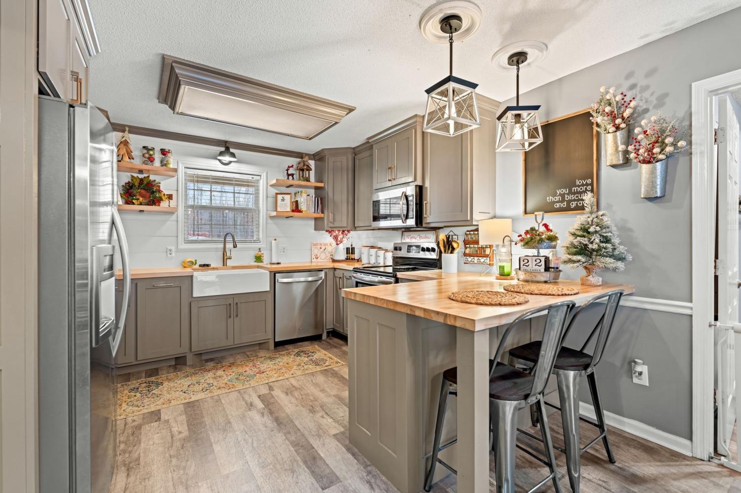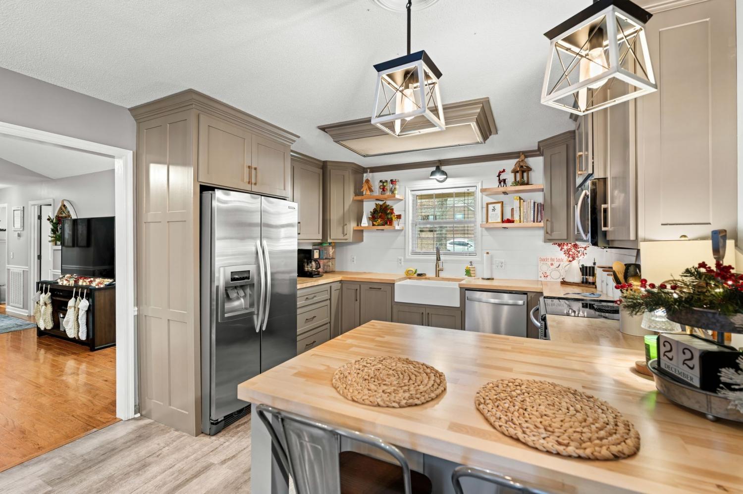 Fully Upgraded Gem with No City Taxes! Discover the perfect blend of modern comfort and peaceful country living in this beautifully maintained 3-bedroom, 2-bathroom home. Renovated from top to bottom, it features a stunning kitchen with custom cabinetry and countertops, complemented by new flooring throughout. Enjoy years of worry-free ownership with a 2-year-old roof and gutters and a 4-year-old HVAC system. Even the garage has been refreshed with a brand-new door! Step outside to your private retreat—a spacious, fenced-in backyard and deck designed for weekend BBQs or peaceful mornings. Nestled in a quiet, family-friendly neighborhood just outside the city limits, you’ll enjoy the financial advantage of no city taxes without sacrificing convenience. You’re less than 5 miles from the historic town square and just minutes from the scenic trails of David Crockett State Park. This home is truly move-in ready and priced to sell. Schedule your showing today to experience everything this Lawrenceburg treasure has to offer!