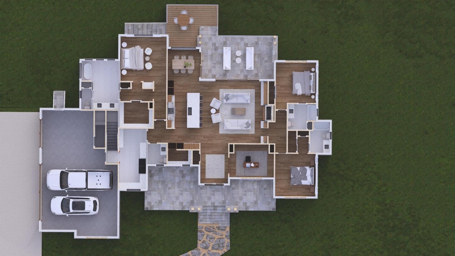 To be built by the highly respected Lighthouse Construction, this thoughtfully designed custom home reflects the builder's reputation for exceptional craftsmanship, architectural integrity, and timeless design. Ideally positioned on a desirable corner lot just across from a planned amenity center, the home also enjoys the rare benefit of permanent greenspace behind it, creating a setting that balances convenience, privacy, and natural beauty. Every detail has been carefully considered to deliver a refined and enduring living experience. The three-bedroom, three-and-a-half-bath floor plan is designed for modern livability, featuring a soaring great room, a dedicated home office, and a gourmet kitchen with a walk-in pantry. A main-level primary suite provides comfort and privacy, while an upstairs bonus loft offers flexible space for recreation, media, or additional guest accommodations. Generous outdoor living areas and a three-car garage enhance everyday functionality, and the mountain-inspired architecture is highlighted by timber accents, stone veneer, and layered rooflines that create a striking yet timeless presence. With customizable options and luxury finishes, this home presents the opportunity to create a personal retreat built with the quality and integrity Lighthouse Construction is known for. Opened in 2022, River Gorge Ranch is a premier master-planned, gated mountaintop community just 20 minutes from Chattanooga, Tennessee, developed by the team behind Jasper Highlands. Encompassing approximately 7,400 acres with a long-term vision of 2,500 homesites, the walkable and secure community offers panoramic bluff and mountain views above the Tennessee River, sidewalks throughout, miles of maintained hiking trails, neighborhood parks, a community lake, a dog park, and multiple planned amenity centers, including a future 27-acre Village Center envisioned to feature a fitness center, restaurant, retail space, great lawn, pond, and on-site fire departm