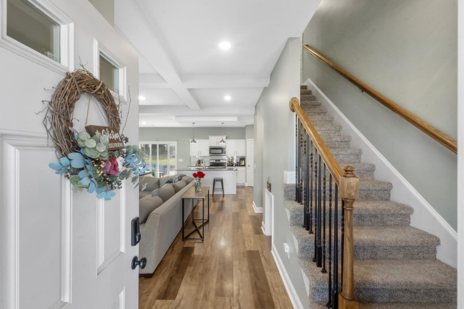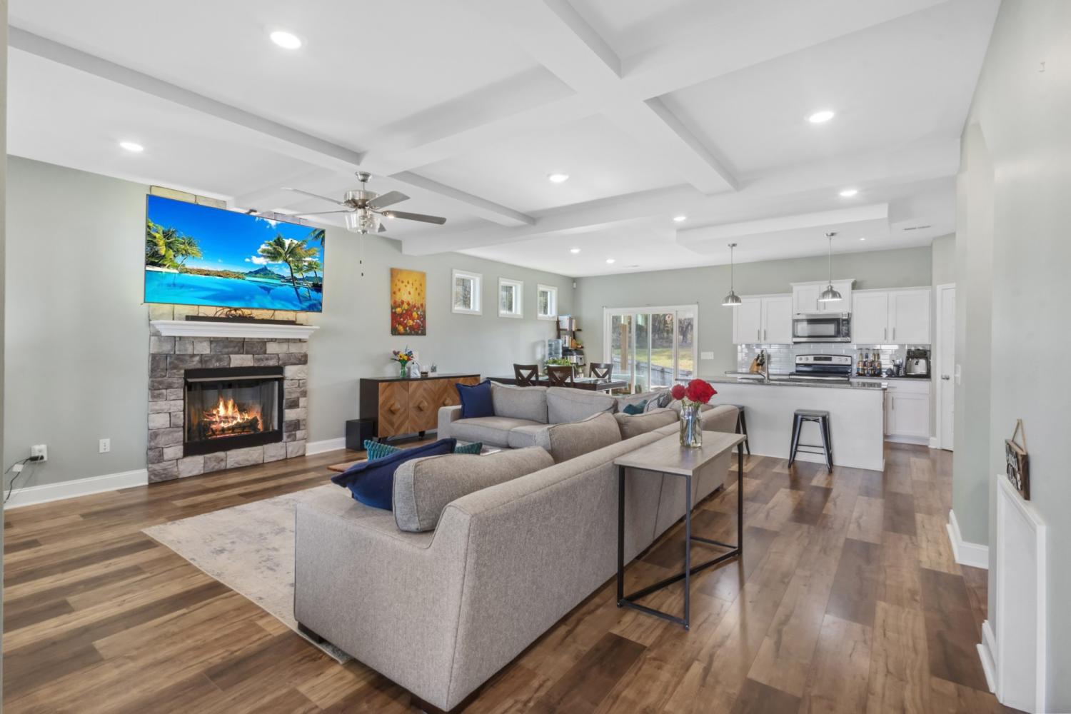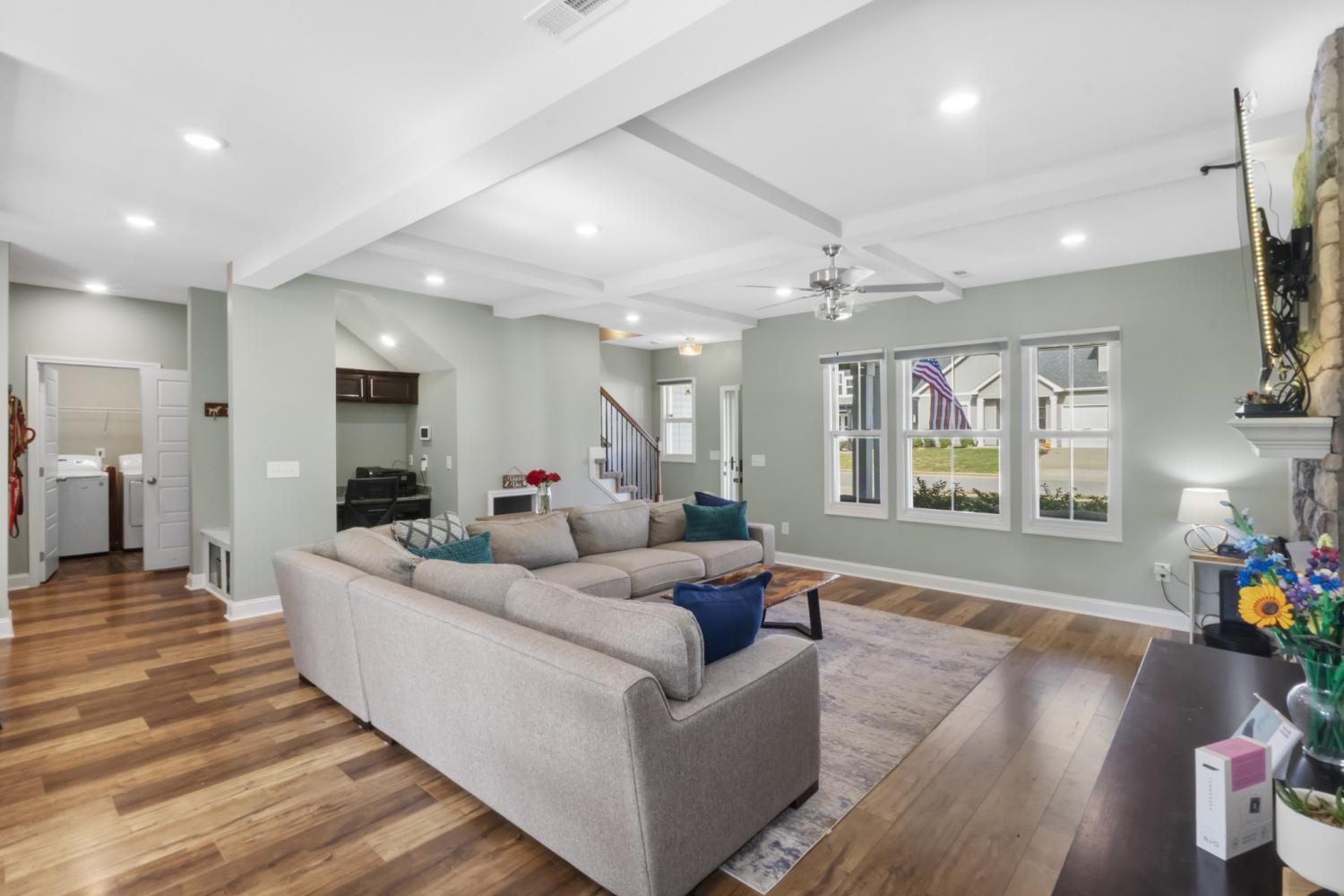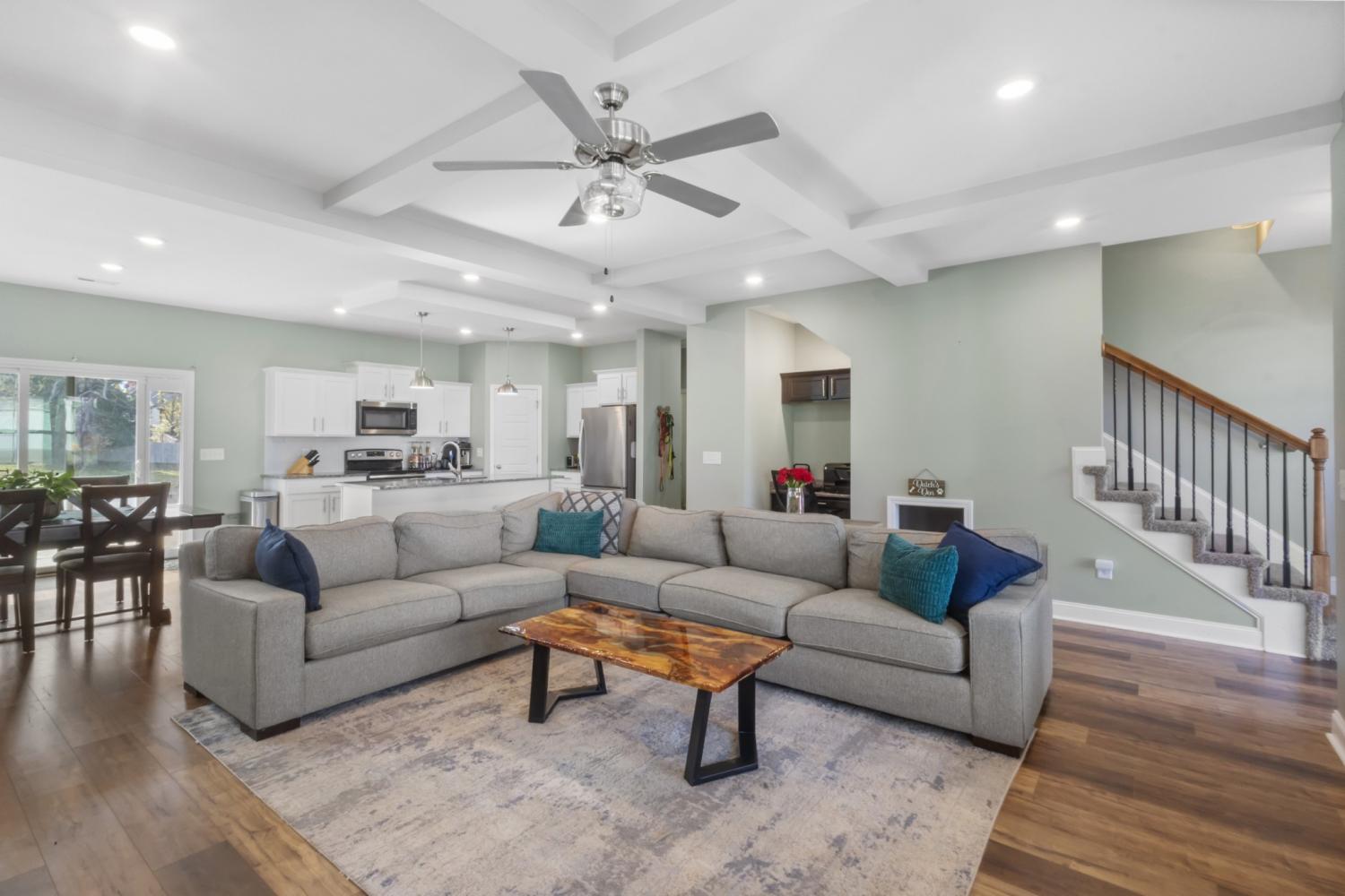 Beautiful two-story home offering a spacious and thoughtfully designed floor plan with four generously sized bedrooms. The heart of the home features a stunning kitchen with a large island overlooking the great room, highlighted by a gorgeous stone fireplace—perfect for everyday living and entertaining. The main-level primary suite provides a private retreat with a huge walk-in closet and an oversized tile shower. Enjoy outdoor living on the covered deck, ideal for relaxing or hosting guests. Conveniently located close to schools, shopping, and Fort Campbell, this home offers both comfort and convenience.