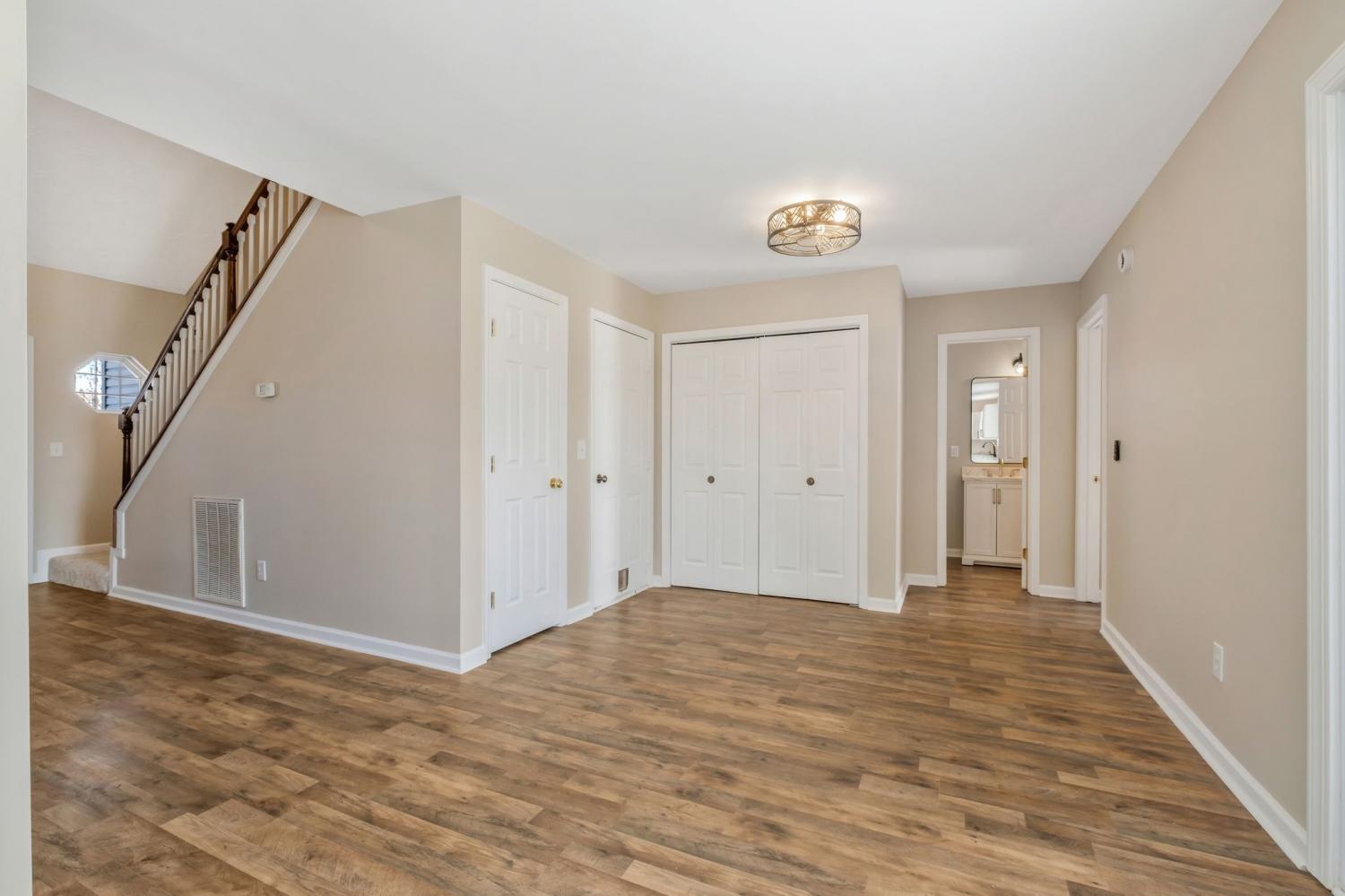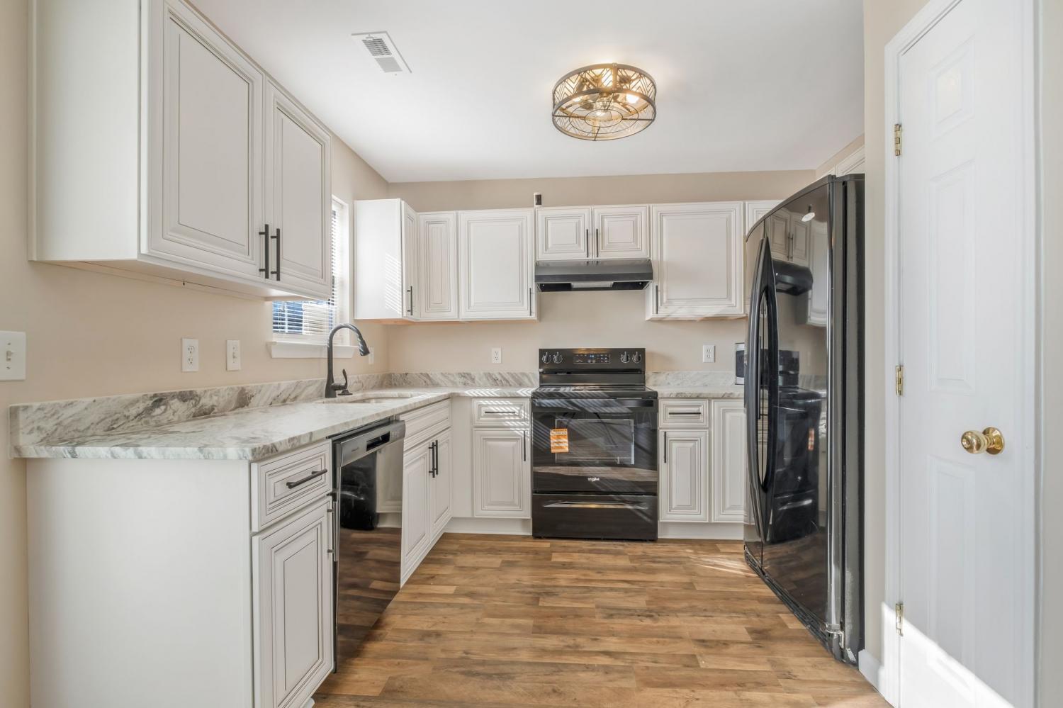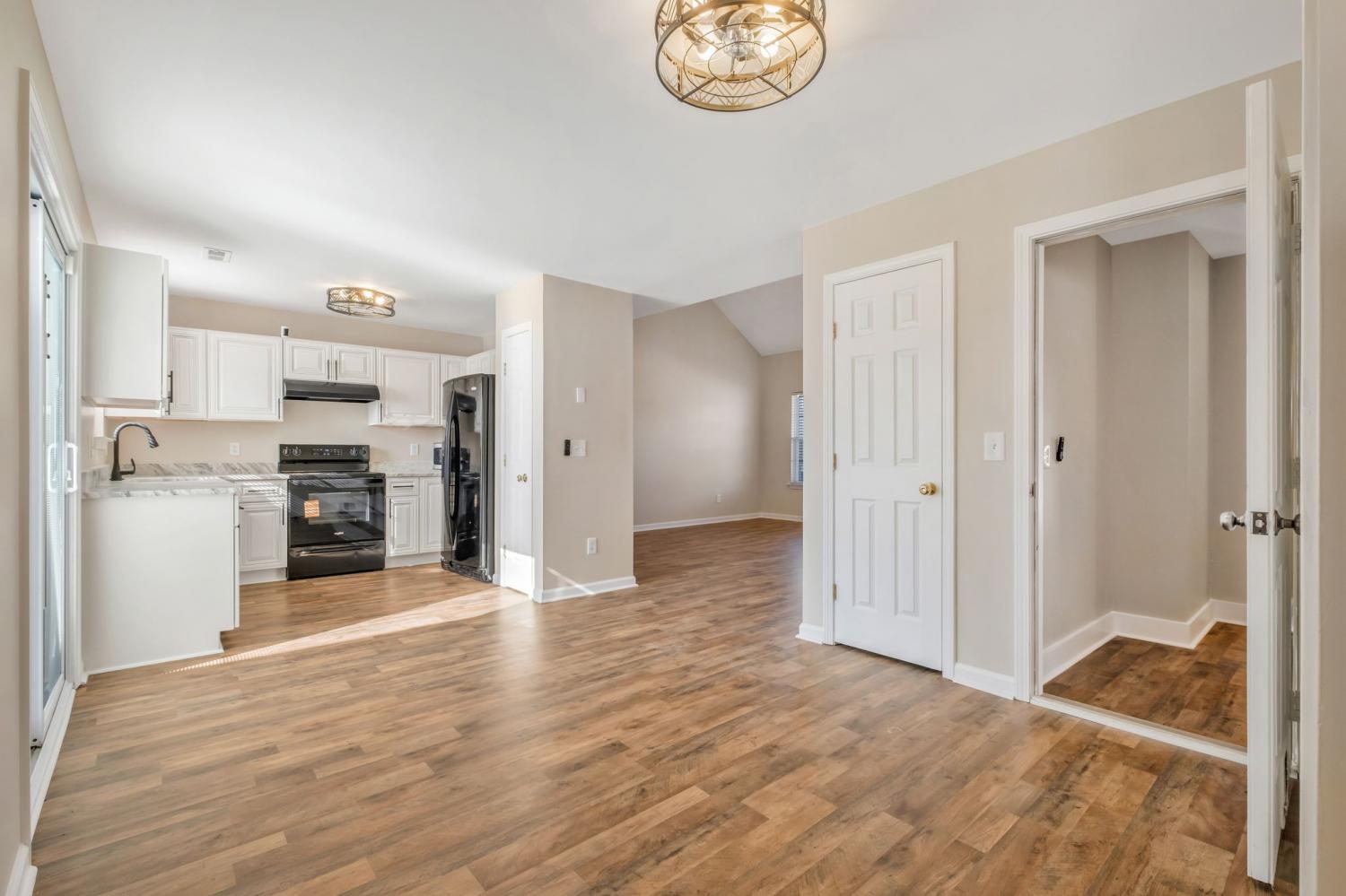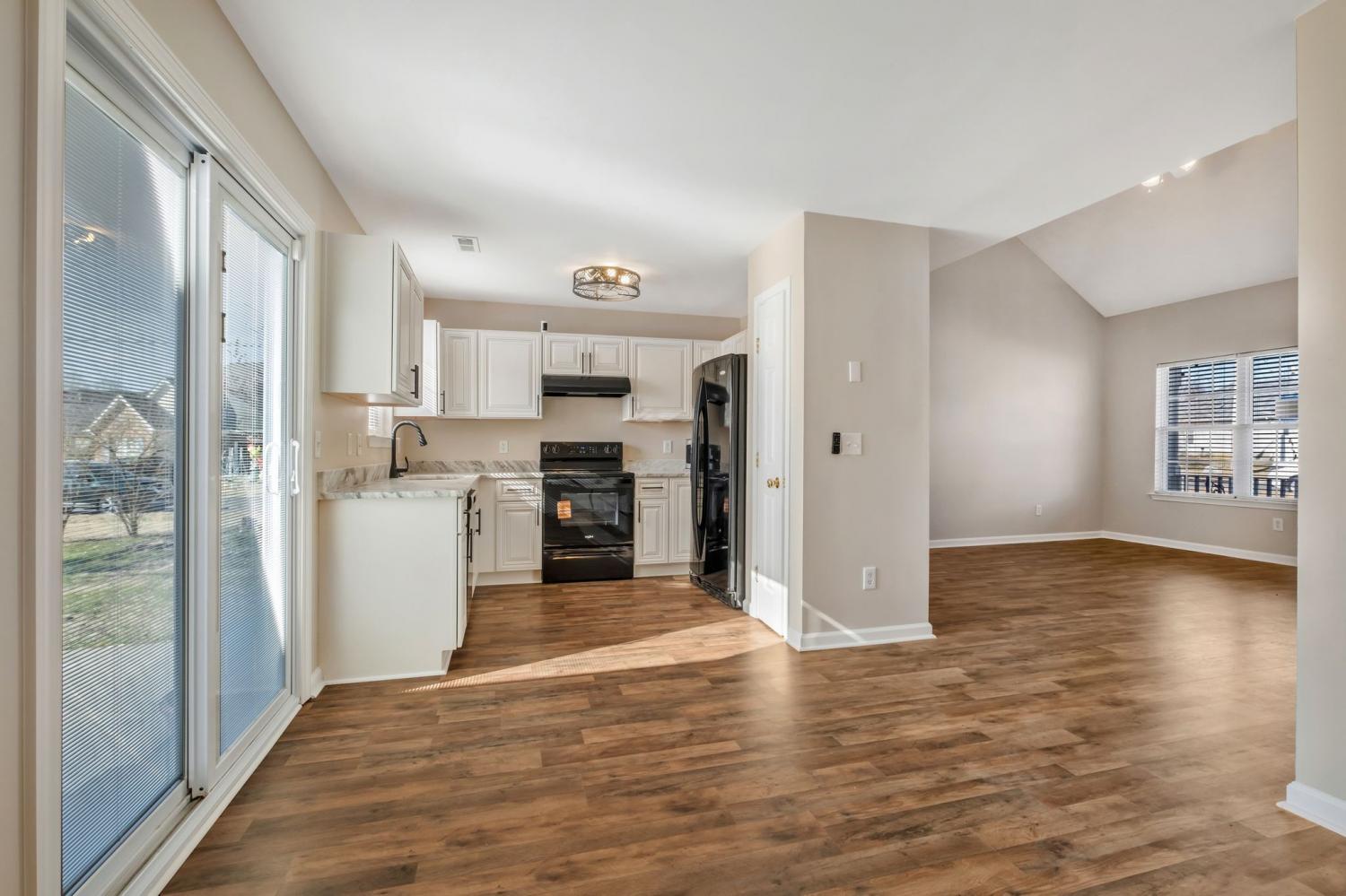 COMPLETELY UPDATED and truly move-in ready, this charming four-bedroom home sits on a desirable corner lot and feels brand new from the moment you step inside. FRESH PAINT and NEW FLOORING throughout create a crisp, modern backdrop for everyday living. The beautifully updated kitchen shines with LEATHERED MARBLE COUNTERTOPS and NEW SOFT-CLOSE CABINETRY. Soaring vaulted ceilings and a high dormer window flood the living room with NATURAL LIGHT, while sliding glass doors from the kitchen invite sunshine and seamless indoor-outdoor living. Outside, the OVERSIZED CORNER LOT with mature landscaping offers the perfect setting for play, entertaining, or peaceful evenings under the trees. The downstairs primary suite is spacious and serene with VAULTED CEILINGS, complemented by a second main-level bedroom ideal for a nursery, home office, bonus room, or gym. The upstairs bedrooms share a bathroom, and there is ample WALK-OUT ATTIC STORAGE SPACE. All of this in a CONVENIENT LOCATION just minutes to shopping, dining, schools, and with quick access to I-24. A STORYBOOK 4-BEDROOM HOME set up perfectly for comfort and ease with NO HOA — this one truly feels like home the moment you arrive. Quick closing possible!