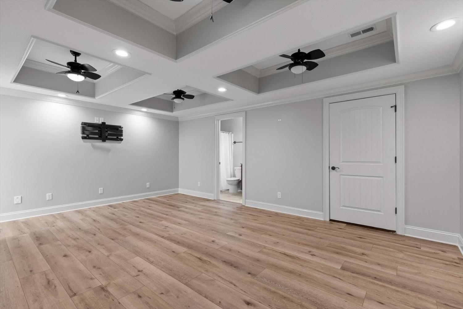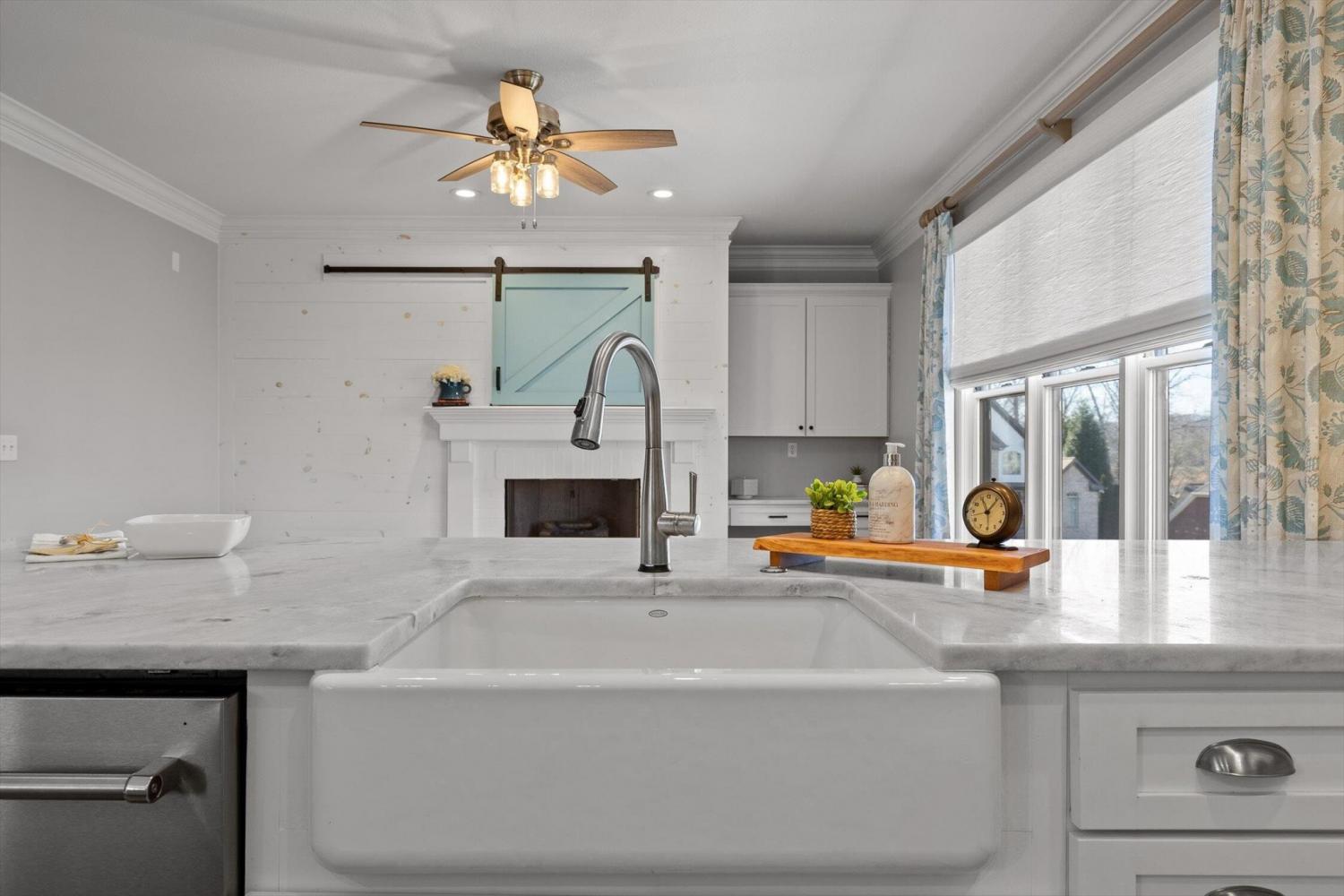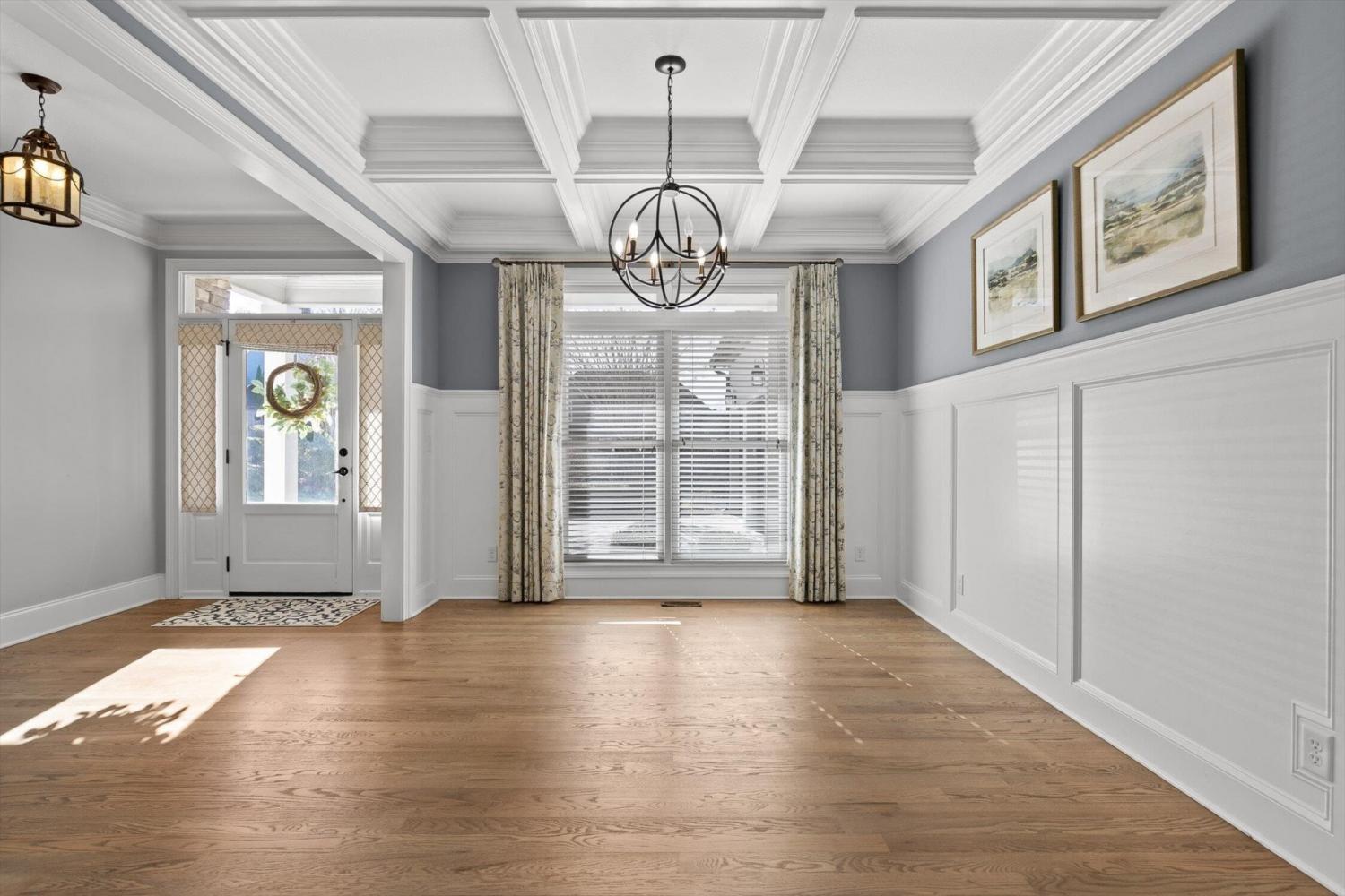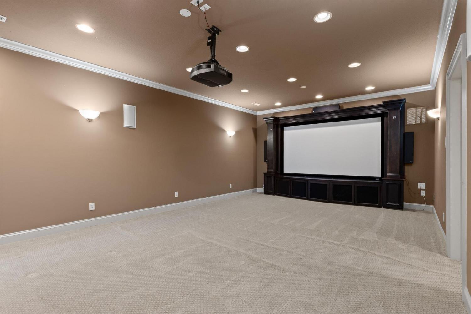 Welcome to this gorgeous home that gives you so many living options! This spacious home in Crystal Brook subdivision has three living levels to fit an extended family. This open floor plan home offers professional updates and custom details throughout. The Great Room has 20' ceilings, hardwood flooring, and a cozy gas fireplace with stone surround. As you enter the home, there is a formal dining room with craftsman style wainscoting and a coffered ceiling. What a perfect place to host large gatherings. A generous kitchen is centered around the gas range, complete with granite counters, center work island, bar, and pantry. All of this is open to the den/keeping room, for easy entertaining. There are plenty of windows for natural lighting and two fireplaces. A covered porch connects with an open porch to give you the best of outdoor living, all just off the main level Great Room. The spacious, detailed primary suite, with a gorgeous bath, is on the main level. An abundance of countertop space, and a large walk-in closet, highlight this space. The upper level features three bedrooms with walk-in closets, a bonus room or an another bedroom- you choose. There is also an additional walk-out storage area. The full basement has the same level of high-end finishes. The home theater room has surround sound, insulated walls, HD projection screen and all the equipment. In addition, there's an executive-level office space, another well-appointed full bath, and a finished room that's perfect for another large bedroom. It would be easy to make this a stand-alone area for anyone needing their own living space. A separate entrance complete with second driveway makes this a very unique home. The basement also features a garage/workshop, extra storage space, and a storm shelter. The location is convenient to grocery stores, The Shops at the Enclave, Cambridge Square, Hamilton Place as well as easy access to the interstate.