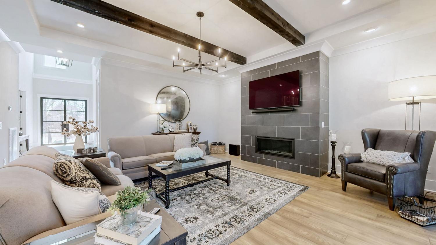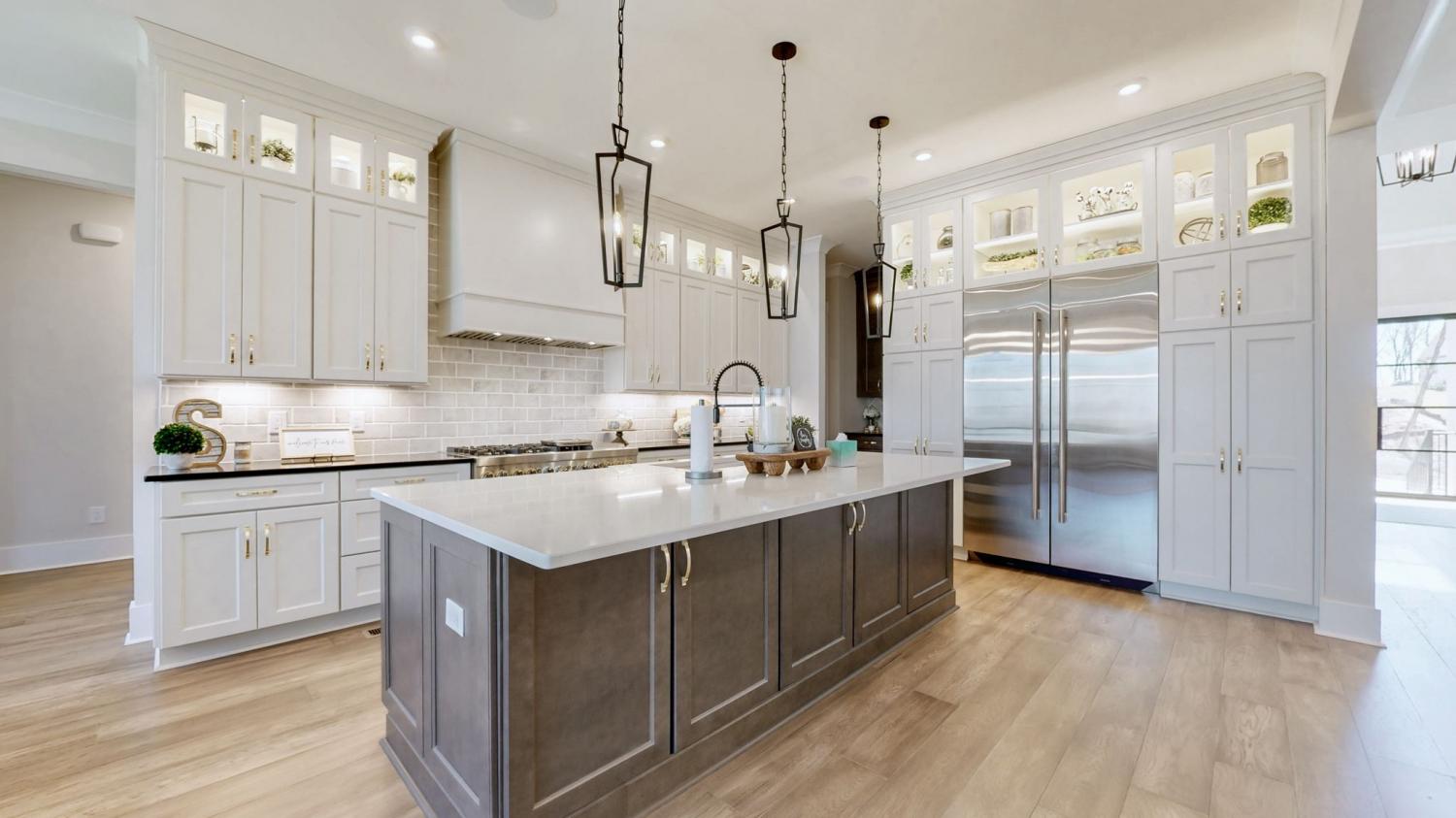 Located in the heart of Arrington’s sought-after Kings Chapel community, 4697 Majestic Meadows offers refined new construction by Drees Homes, blending timeless design with thoughtful functionality. Completed in 2024, the home spans 4,892 square feet with five bedrooms, five and a half baths, and a rare four-car garage. The main level features an open, light-filled layout designed for effortless entertaining and everyday comfort. A chef’s kitchen anchors the space with a generous island, custom cabinetry, and premium appliances, flowing seamlessly into the living and dining areas. The primary suite provides a private retreat with a spa-inspired bath and expansive walk-in closet, while additional bedrooms offer excellent separation and flexibility for guests, home office needs, or multi-generational living. Outdoor living is elevated with a covered patio and outdoor fireplace, overlooking a wooded backdrop that adds privacy and a sense of calm. Kings Chapel is known for its scenic setting and strong sense of community, offering gated access, a clubhouse, fitness center, pool, walking trails, and playground. Conveniently located near Arrington Vineyards and just minutes from Franklin, this home delivers both tranquility and easy access to shopping, dining, and top Williamson County destinations.