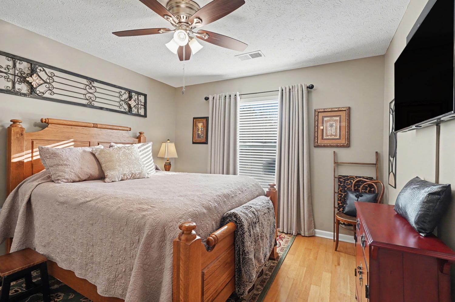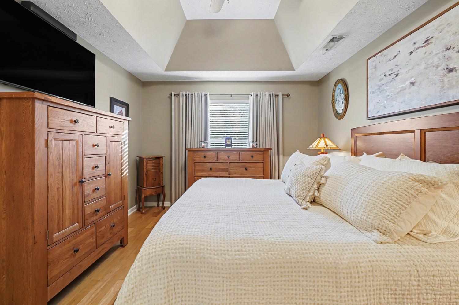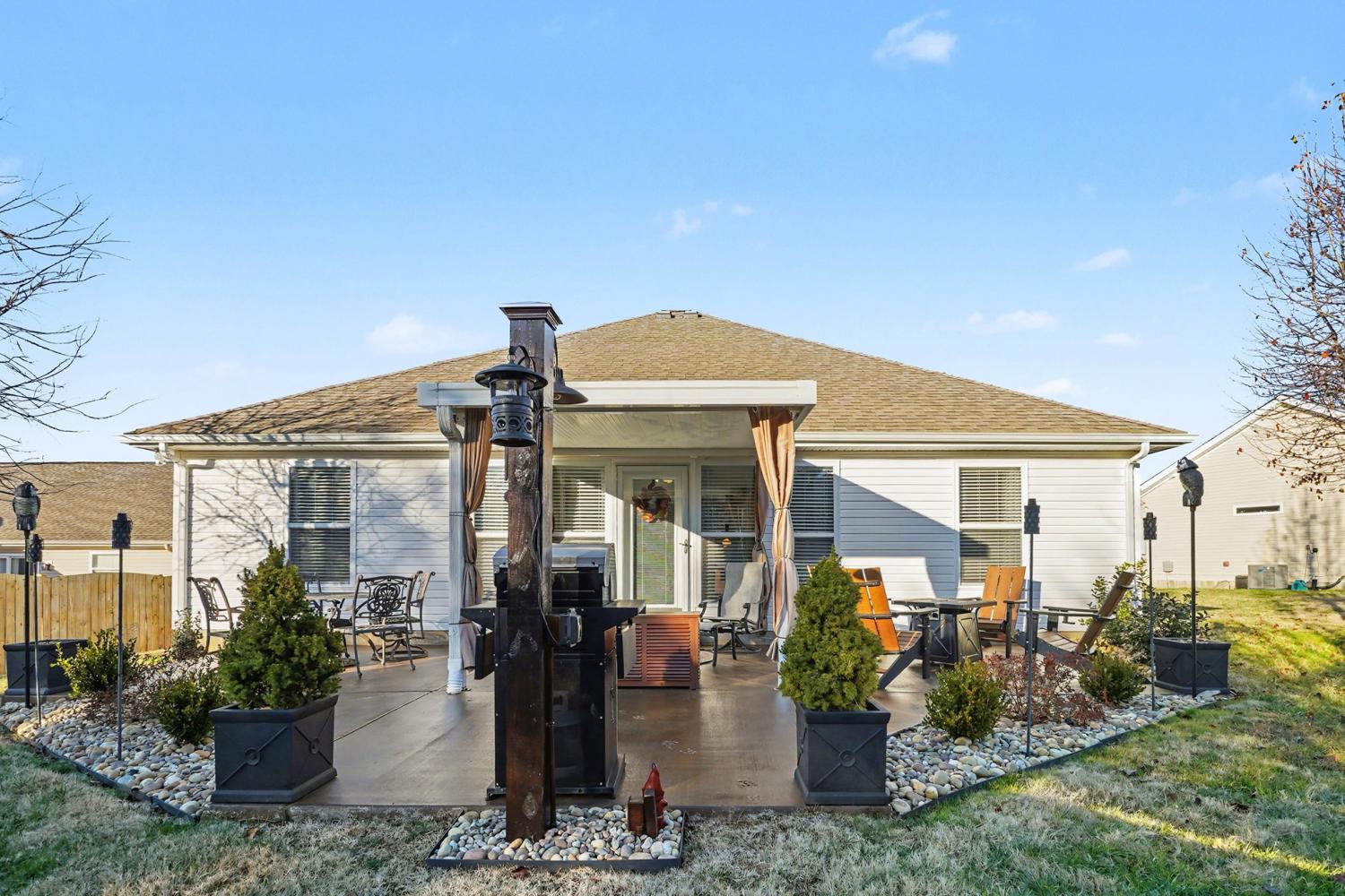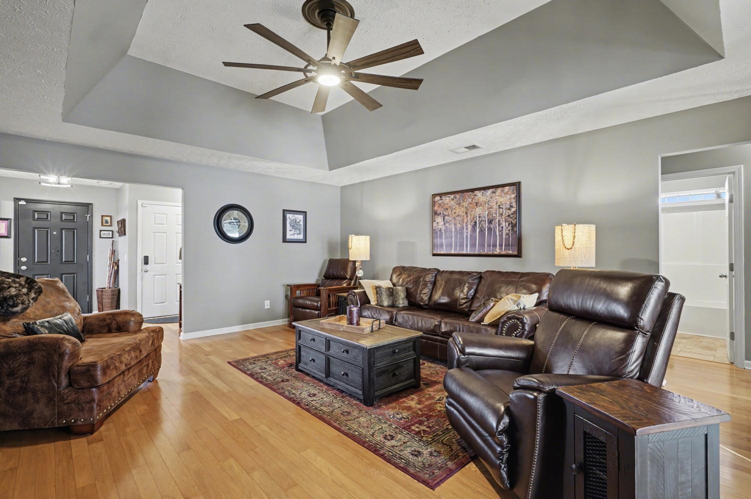 Welcome to this 0 entry one level 3-bedroom, 2-bath home with a sunroom, conveniently located just minutes from Lebanon Town Square and its shopping, dining, and local events. This well-maintained, upgraded home is tucked away on a cul-de-sac. Step into the open living room featuring tray ceilings that create a bright and inviting atmosphere. The eat-in kitchen boasts brand new stainless steel appliances, new trim on top and bottom cabinetry, a large breakfast bar, and plenty of counter space. The primary suite is amazing, completed with a spacious bathroom featuring double vanities, a separate shower and soaking tub, and a huge walk-in closet. Secondary bedrooms are well-sized and include generous closet space. Enjoy outdoor living in the large private backyard with a covered patio perfect for that morning coffee! Extra large 2 car garage. Additional upgrades include a new hot water heater, storm doors, and ceiling fans,. The HOA offers fantastic amenities, including a clubhouse, pool, gym, and playground. This home offers comfort, space, and a prime location all in one! Bonus, it has extra wide door ways.
