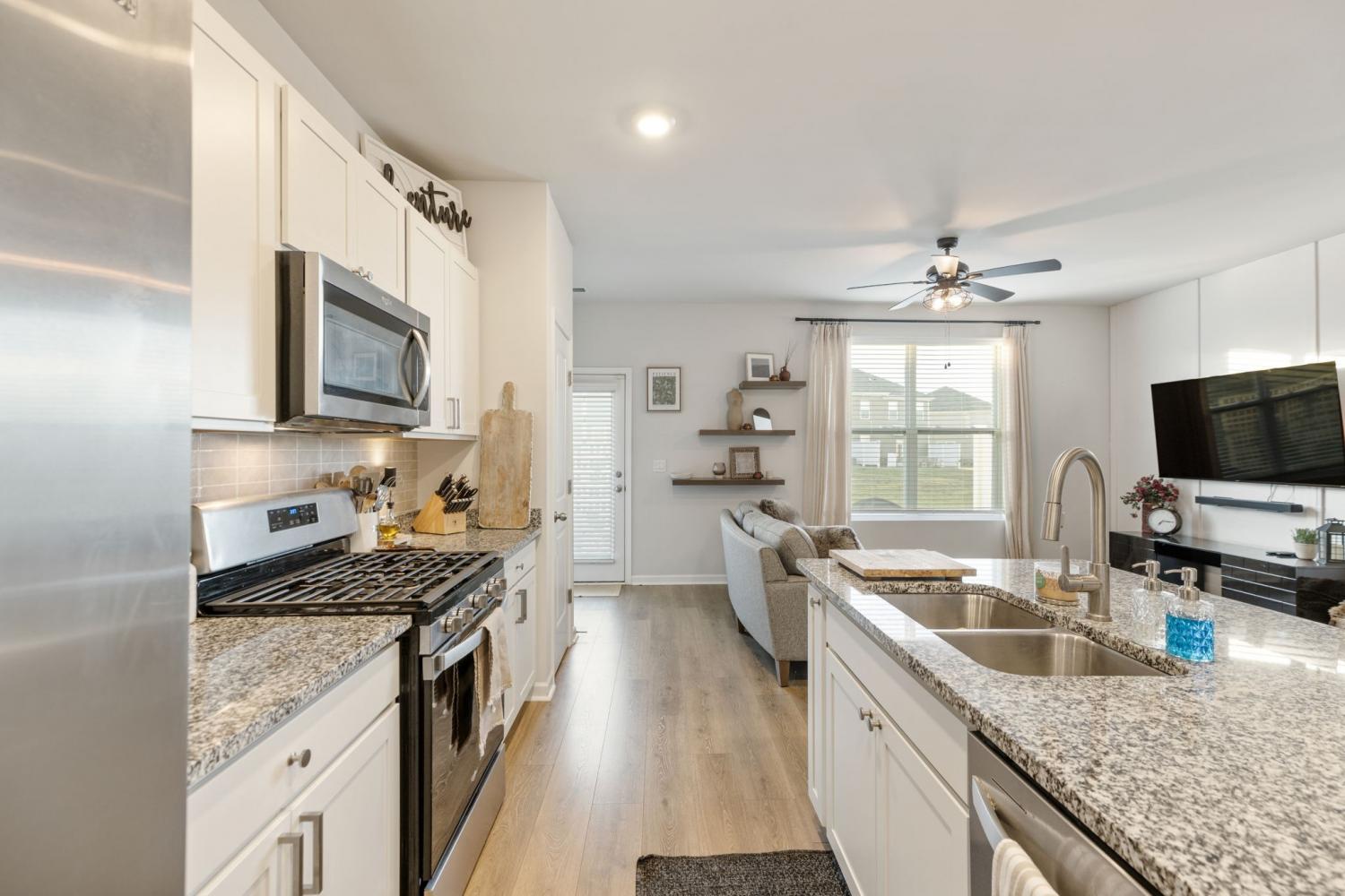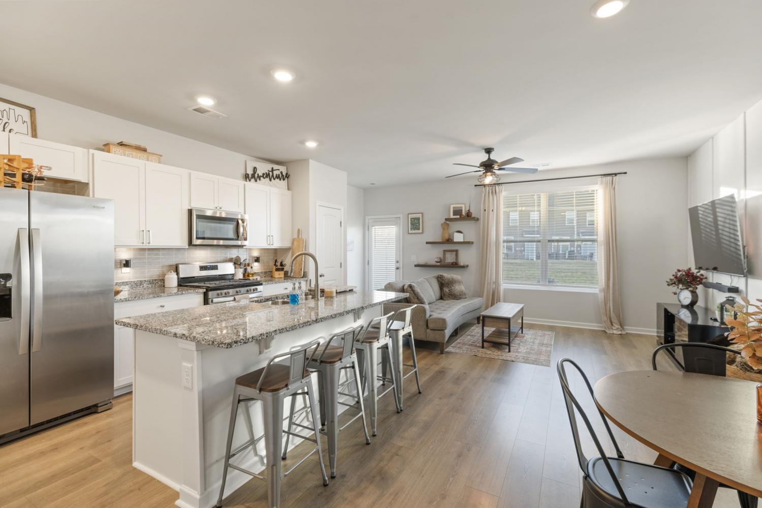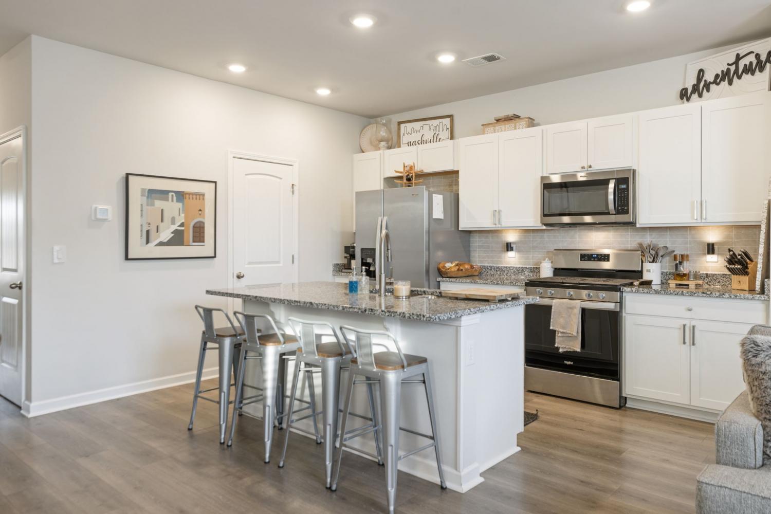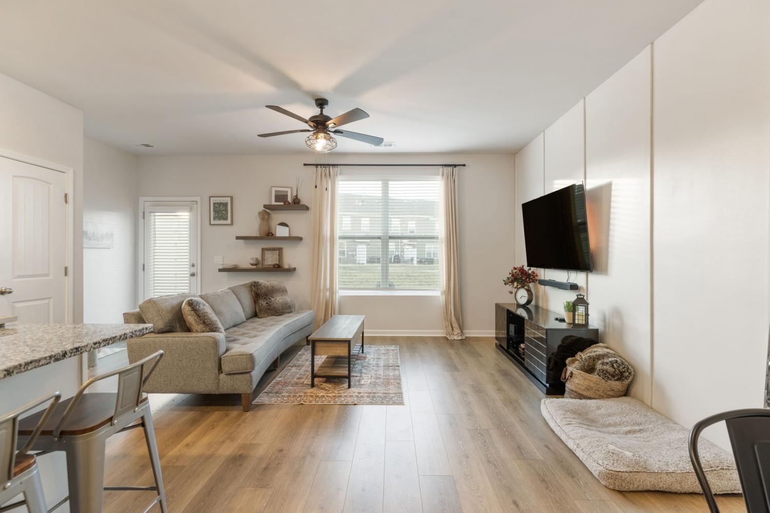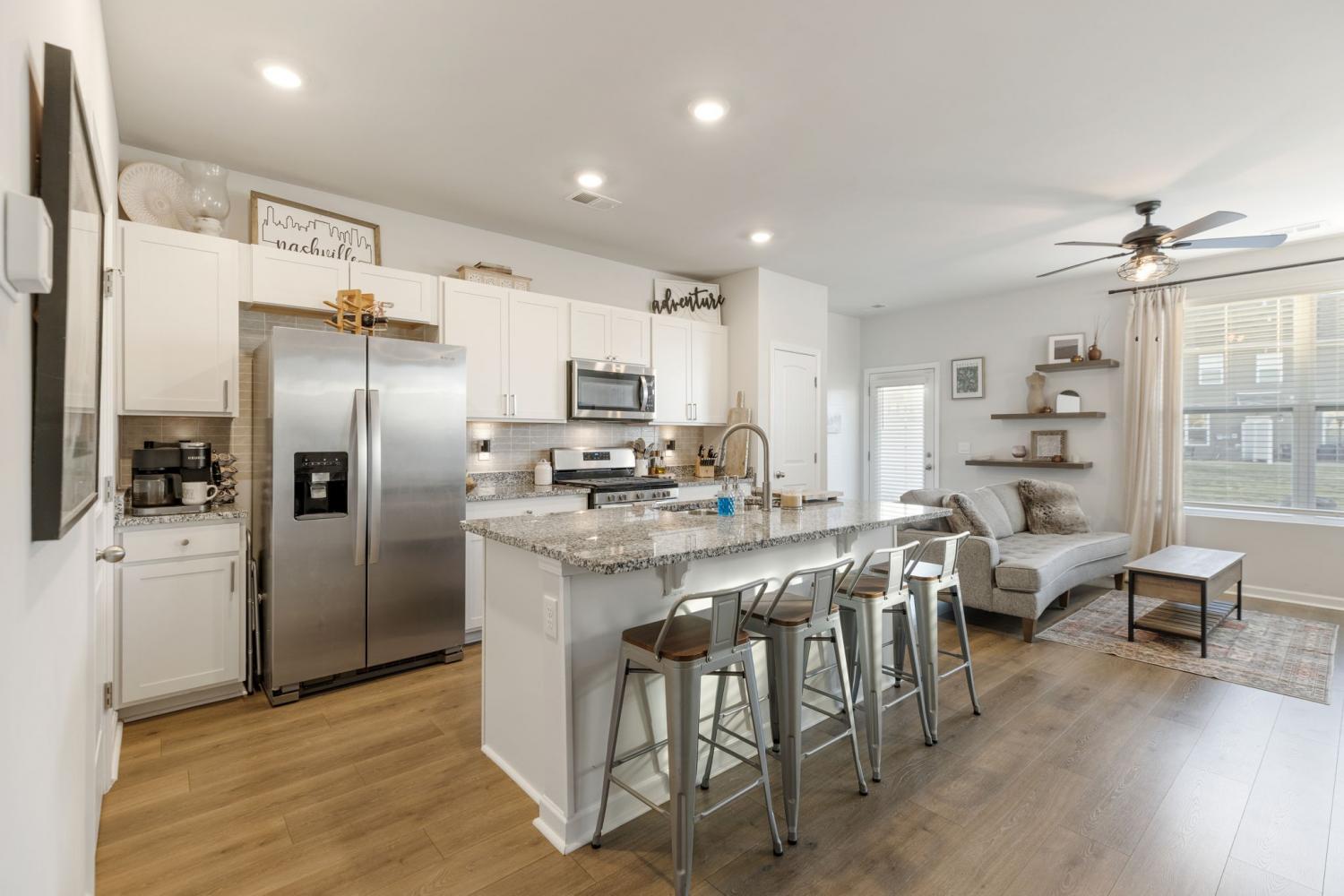 Beautiful, well maintained 3 bed/2.5 bath townhome with all the modern finishes and conveniences. Great floor plan provides spacious rooms and easy living. A 220V charging port has been installed in the garage, ideal for fast charging a plug-in EV or hybrid. Amenity rich neighborhood has resort-style pool and two dog parks, so many neighborhood activities including food trucks for neighborhood events. Conveniently located to the Providence shopping area in Mt. Juliet with lots of dining options and a recently constructed and expanding plaza with Publix, Chipotle, and additional retail is just five minutes away. We are directly across the street from the newly opened East Nash Beer Works and the Food Truck Beer Hall, making for an easy and fun night out Can be leased with or without furnishings with flexible lease terms. For an additional $100 per month, this home can be leased fully furnished as shown, excluding the soundbar, guitar, treadmill, and gym weights.