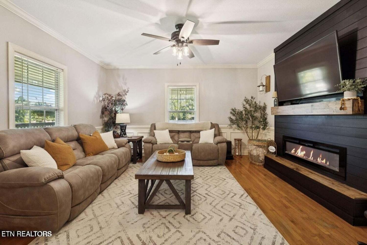 'Welcome Homestead'' Almost 8 Acres of unrestricted land in between Knoxville and Sevierville; 2960 sq ft home enhanced with a 3/4 wrap around porch; its own spring water with 3 spring fed ponds stocked; small barn; portion cleared with more if need be to expand your pasture for your future homestead. The fiberglass pool with a surround patio awaits your floats. Entering this farmstyle home you are greeted to hardwood flooring; vaulted ceilings; a bedroom on main floor with a living area flowing into the kitchen area offers 3 tone custom maple cabinetry; granite counter tops; composite granite double sink; newer appliances; and a center island; laundry is conveniently located for life ease. Sweeping upstairs on hardwood flooring, there are 3 updated bedrooms including a large master suite area. New roof in 2020; new tankless water heater in 2024; one new heating/cooling unit installed in 2024. There is also a separate septic system with another electric pole for another home. Property is ready for your small farm and peace. 36 miles to Dollywood and University of Tennessee is 25 miles from this oasis of peace. ''Come On Homestead'' Buyer to verify information before making an informed offer.