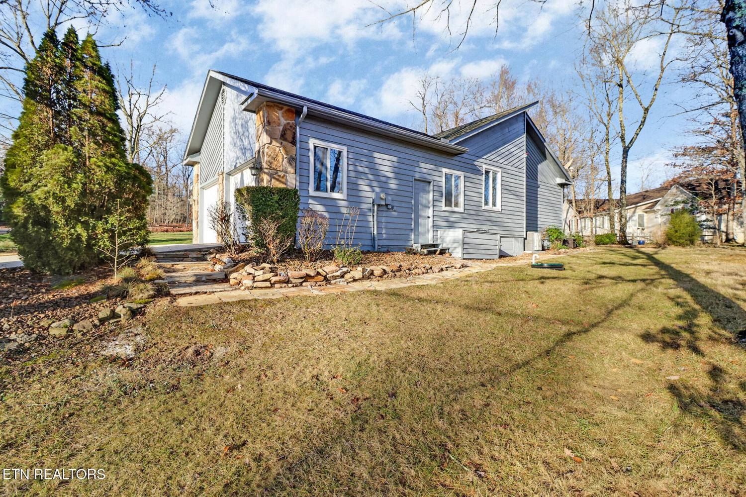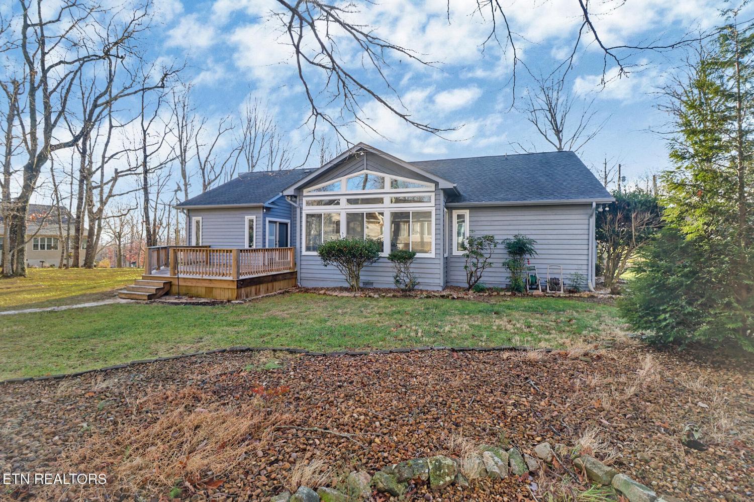Beautifully updated and move-in ready, this 2,055 sq ft home is ideally located just minutes from Fairfield Glade's championship-quality Stonehenge Golf Course and Restaurant. Situated on a desirable double lot, the home offers privacy, upgrades, exceptional curb appeal, and an abundance of natural light throughout. Inside, you'll find 13-foot ceilings, a spacious open layout, and a stunning fireplace anchoring the main living area. The home features 3 bedrooms, including a luxurious primary suite with a spa-like master bath and his-and-hers walk-in closets. A dedicated office area, sunroom, and wet bar with sink provide flexible spaces for work, entertaining, or relaxation. Recent upgrades include professional interior and exterior paint, new LVP flooring throughout, a newer roof, and quality finishes such as granite surfaces. Step outside to a large deck perfect for enjoying the peaceful surroundings. An oversized garage offers ample storage and workspace complete with additional sink. HVAC has been recently serviced for peace of mind. Propane gas is on site. This home combines modern updates, generous living space, and one of Fairfield Glade's most sought-after locations. *Buyer to verify all information before making an informed offer.*