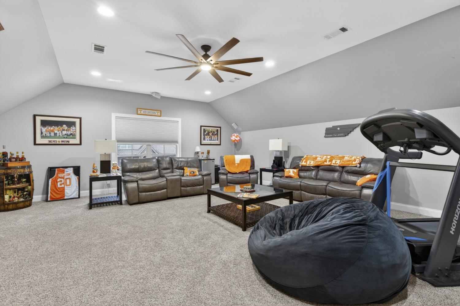Rare find in Silver Springs! This 2017 all-brick, one-owner home features 3 bedrooms on the main level, including the large 16'x18' primary suite with custom closet built-ins. The open floor plan with 9-ft ceilings includes a natural gas fireplace, hardwood floors, in-wall stereo surround sound system in living room, and a kitchen with natural gas oven and range and granite counter tops. Need space? The enormous second floor features a 16'x17' 4th bedroom with an ensuite full bath with walk-in closet (like having a second primary suite that's perfect for your guests or even multi-generation living), large office nook, 21'x23' bonus room, and a 13'x21' expansion room added by the owner. Outside, you'll enjoy the covered screened deck, patio, continuous curbing around landscaping, and private fenced-in fescue yard with whole-yard irrigation that backs up to common area. Community pool & playground are a short 5-minute walk away. Unbeatable Location: You are less than 2 minutes from West Elementary and 4 minutes from Mt. Juliet High. Enjoy weekends on the water with Lone Branch boat ramp just 3.5 miles away. Commuters are 10 mins from I-40 (Golden Bear Exit) and 25 mins from BNA; plus you are right down the road from the new Costco (12 mins) and just 15 mins to Providence shopping! Be sure to check out the property video. Wireless Nest thermostats do not convey.