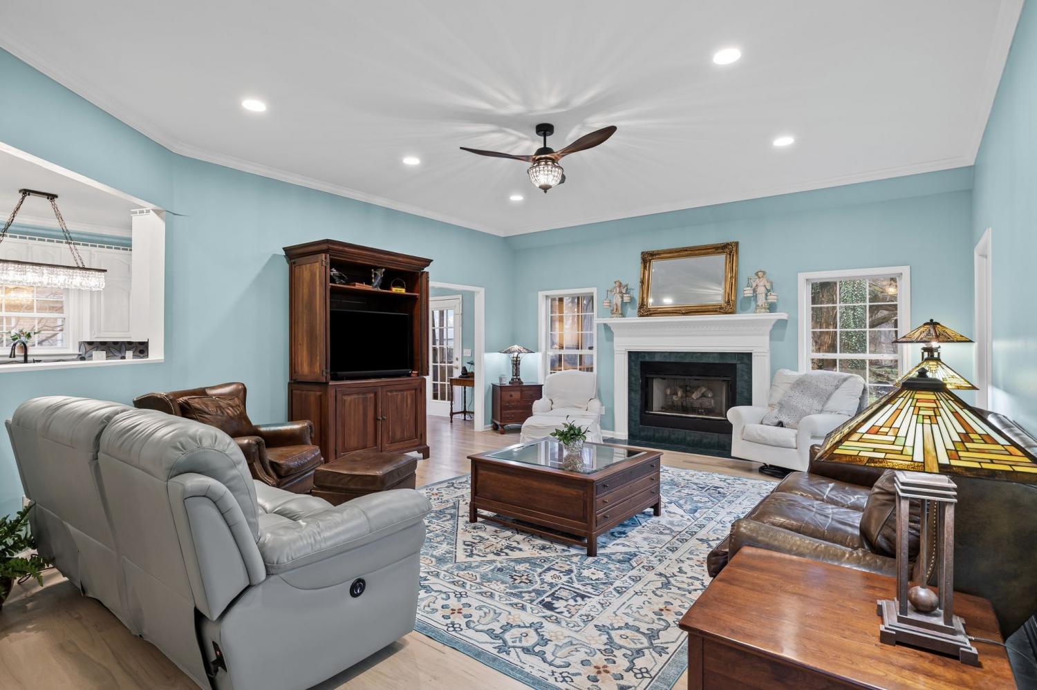 PRICE IMPROVEMENT!!! Highly sought after subdivision, Hunters Glen! You won't want to miss this elegantly renovated, single story oasis! This home has it all! New paint in every room, new flooring throughout the entire home, designer light fixtures in every room. Spacious Owners suite includes extra space for possible office/sitting/reading area, two walk in closets,new tiled shower, new sinks, toilets and light fixtures! Beautifully renovated chefs kitchen with new granite countertops and plenty of cabinets for storage. XLG stunning Fireplace in spacious living room. Large laundry room. Brand new Roof! Relax on your completely screened in deck in the backyard. Convenient stairway access from the garage to a roomy attic for bonus storage. Attached 2 car garage with sealed floor. All bedrooms are large and have high ceilings AND walk in closets! This house lets you live minutes from town and still feel like you live in the peaceful country!! Washer/Dryer and kitchen refrigerator to be included with a full price offer.