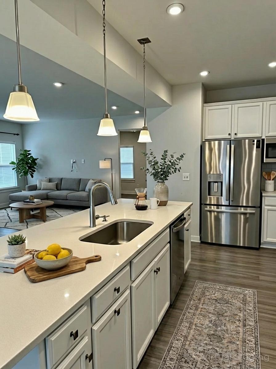 Like-new 4BR/3BA home with loft in sought-after Fairway Farms! Built in 2021 and lightly lived in, this Hudson floorplan offers an open-concept layout with modern finishes throughout, upgraded trim package, and stylish cabinetry. The spacious kitchen features a large island, exterior-vented hood, and flows seamlessly into the living and dining areas-perfect for everyday living and entertaining. The main level includes a bedroom and full bath, ideal for guests or a home office. Upstairs, the primary suite offers a spa-like bath with double vanities, separate tub and shower, and 2 generous walk-in closets. A versatile loft with storage and additional bedrooms and additional bathroom provide flexible living space. Enjoy outdoor living in the fenced backyard with extended screened-in patio featuring retractable screens (see pic), ceiling fan. Additional highlights include tankless hot water heater, walk-in attic storage, Energy Star windows, Nest thermostat up and downstairs, and spray foam insulation. Community amenities include a pool, walking trails, and playground. Conveniently located near I-386 with easy access to shopping, dining, and Gallatin's expanding commercial corridor, including Target and Wawa. Priced below comparable new construction. Note: community pool is currently winterized, pic used was previously taken. Some Photos Have Been Staged To Illustrate Potential Furniture Placement. Furnishings & Decor shown are not included and are for illustrative purposes only.