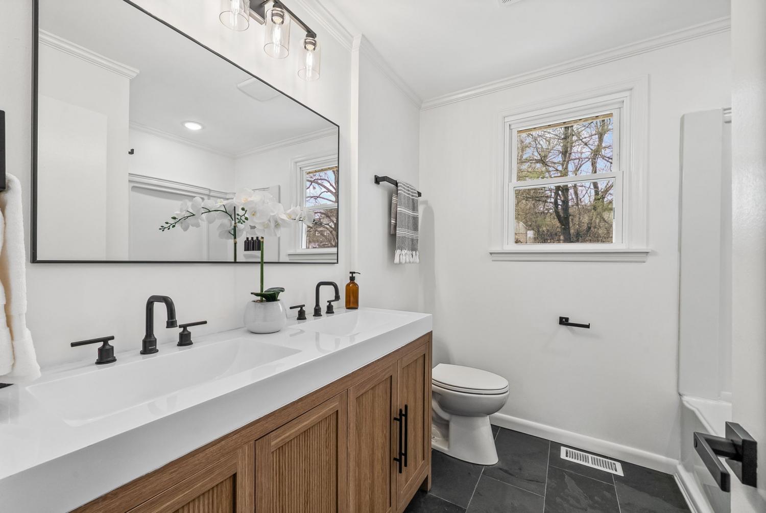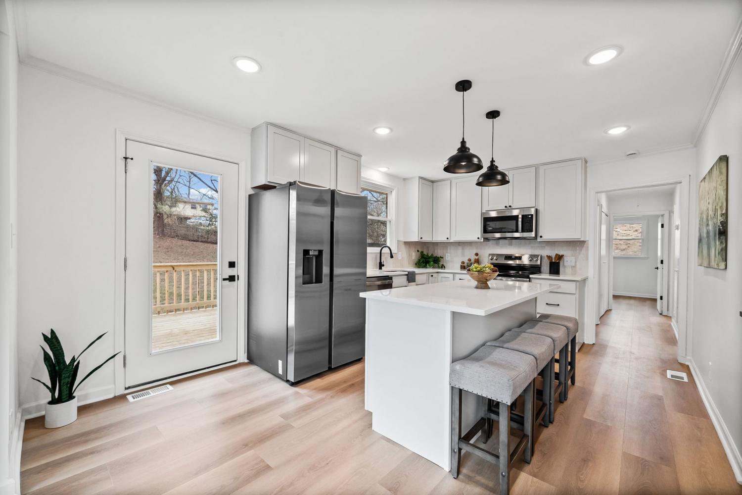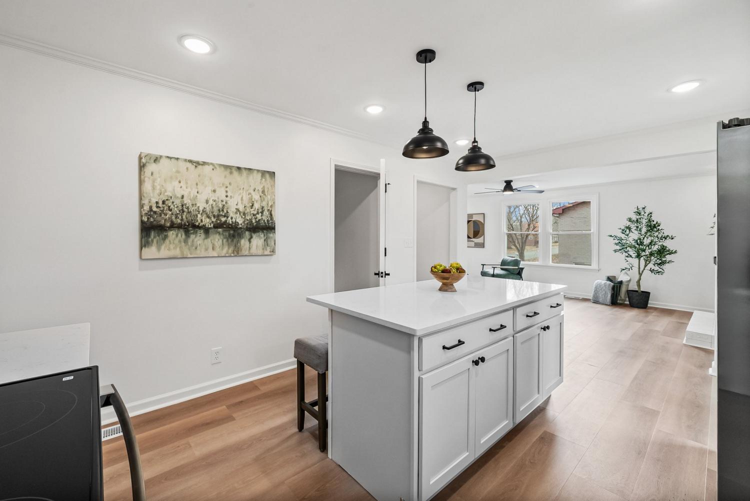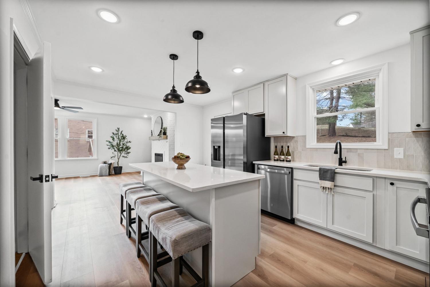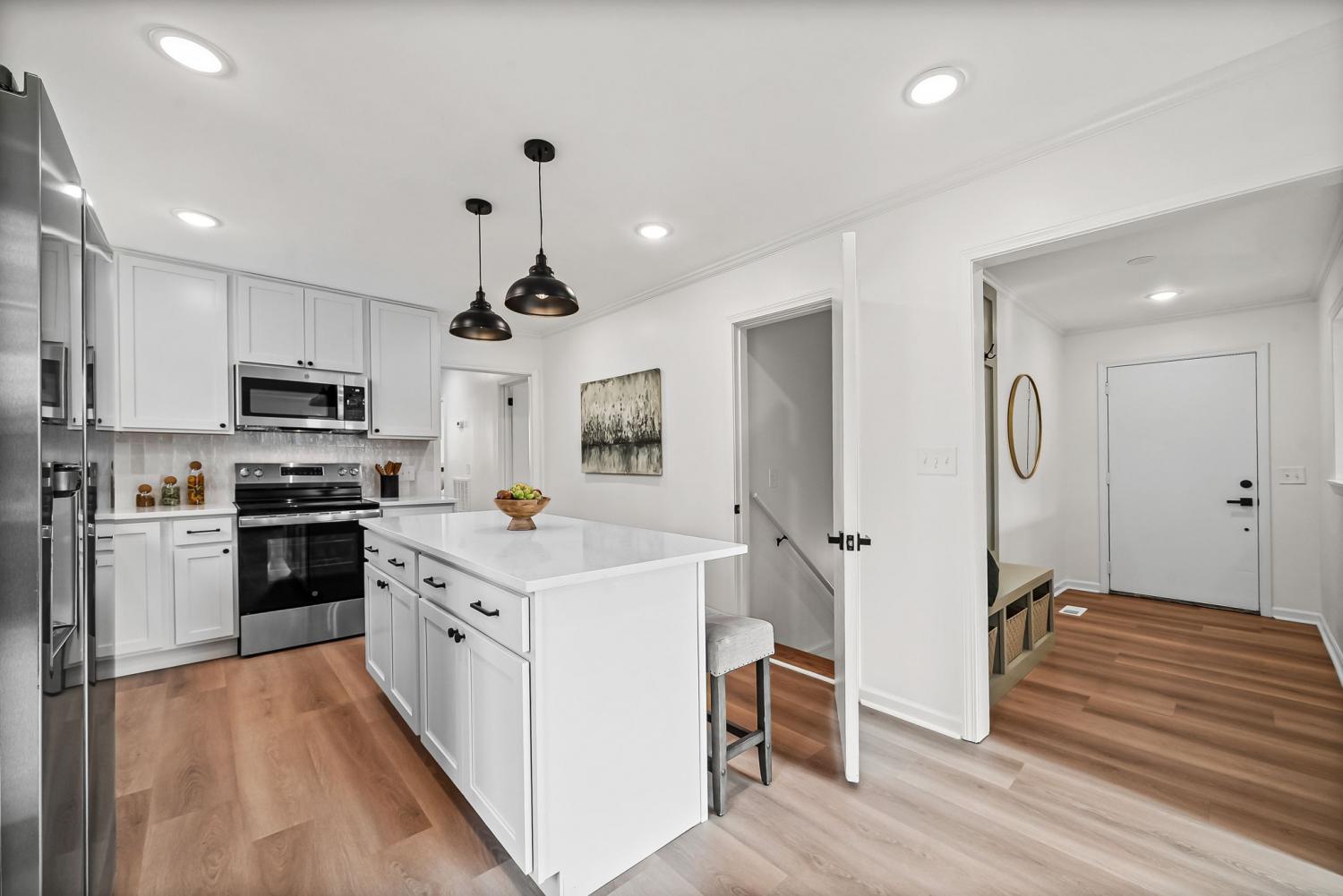 This newly renovated brick ranch home with a finished basement will check all of your boxes! As you enter from the covered front porch you will notice the new roof, new windows, new kitchen with quartz countertops, electric fireplace, and the new flooring, paint, and fixtures throughout. The main level features 3 bedrooms and 2 full bathrooms including the tiled bathroom in the primary suite. The finished basement offers an additional bathroom and an open flex space/rec area as well as access to the attached garage. Out back you'll find a fenced in back yard and a brand new deck to enjoy your morning coffee or weekend cookouts. Function meets style, schedule your tour to see all that this home has to offer!