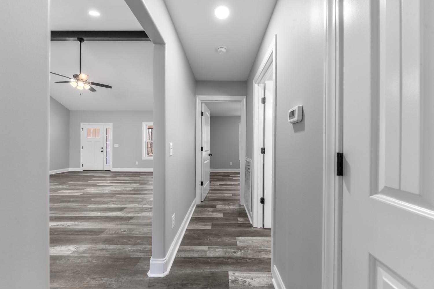Escape to this stunning, brand-new 2,125 sq. ft. construction nestled on 2.040 private, wooded acres. Combining modern elegance with serene natural beauty, this home is designed for those who want both luxury and tranquility—just 7 minutes from the shopping and amenities of downtown Lawrenceburg. Experience true convenience with a luxurious primary suite located on the main floor - enjoy the custom built ins in the primary walk in closet, sleek LVP flooring flows through every room, complemented by elegant granite countertops and custom cabinetry in the kitchen and baths. A massive bonus room over the garage also includes its own full bath—perfect for a home office, theater, or a private retreat for out-of-town guests. A large, dedicated laundry room equipped with a utility sink makes chores a breeze. Enjoy the peaceful setting as you step out onto your expansive covered back deck – perfect for entertaining! *****Special Financing Incentives Available! Get 1% of your loan amount toward closing costs or rate buy-down with CareyAnn & MyMortgageTeam at CMG Financial (NMLS 160055 | 615-456-4456)*** !! Subject to approval by CareyAnn****