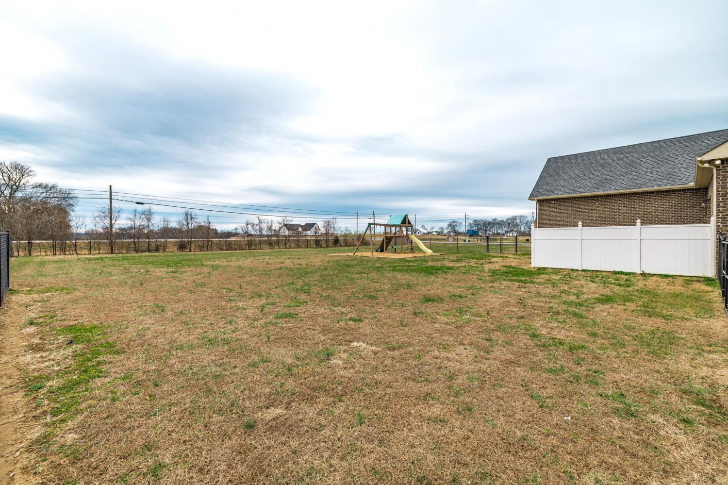 A true find in today’s market: newer construction (2022), all brick, one-level living, huge fenced yard, corner lot, and a rare oversized 2-car garage—all on 1.29 acres. This one-owner home has been meticulously cared for and offers an open layout, upgraded flooring with no carpet anywhere, granite counters, stainless appliances, and warm cabinetry that makes the kitchen the heart of the home. The primary suite features a beautifully upgraded tiled walk-in shower and double vanities, while the additional baths give your household and guests the space they need. Smart, practical upgrades matter too—gas heat for comfort and efficiency plus a tankless gas water heater for endless hot water. Outside, the backyard is exactly what buyers are looking for: fully fenced, wide open, and already set up with a high-quality play set that can remain. Plenty of room to entertain, garden, or add a pool. Move-in ready, clean, and extremely functional—this home checks the boxes others don’t.