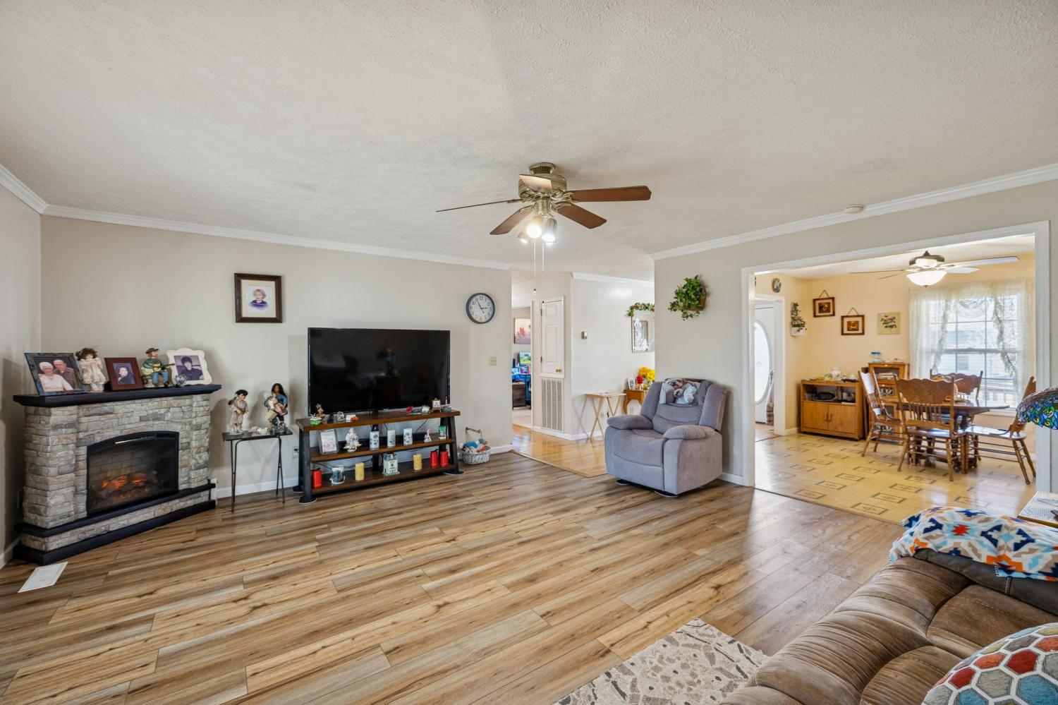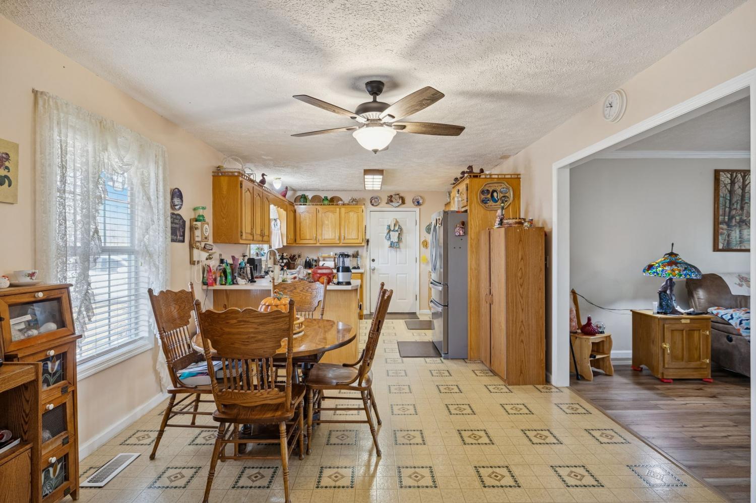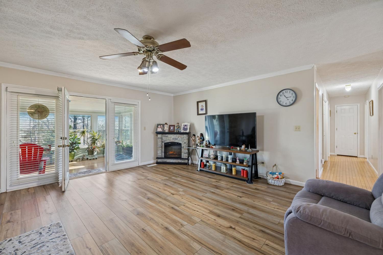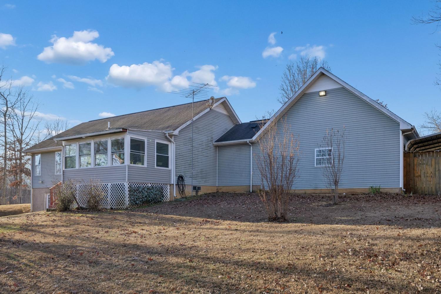This Charming Southern Living property boasts a large, covered front porch on 1.76 acres. The finished living space on one level has potential to expand into the full unfinished basement with plumbing already in place. Through the front door, step into the foyer that leads to the large living area with oversized cased doorways that create an open concept feel. An enclosed back porch, lined with windows, offers space for your greenery, sitting area, and extended views of your fenced in back yard. Master has ensuite bathroom with walk-in closet and 2 additional bedrooms with ample closet space. Attached 2 car garage for parking or hobbies. Additional covered parking for cars, boats, trailers, or toys! The peace of living on a dead-end street is unparalleled. This acreage allows space for gardening and outdoor recreation. This home offers everything that southern living is all about!