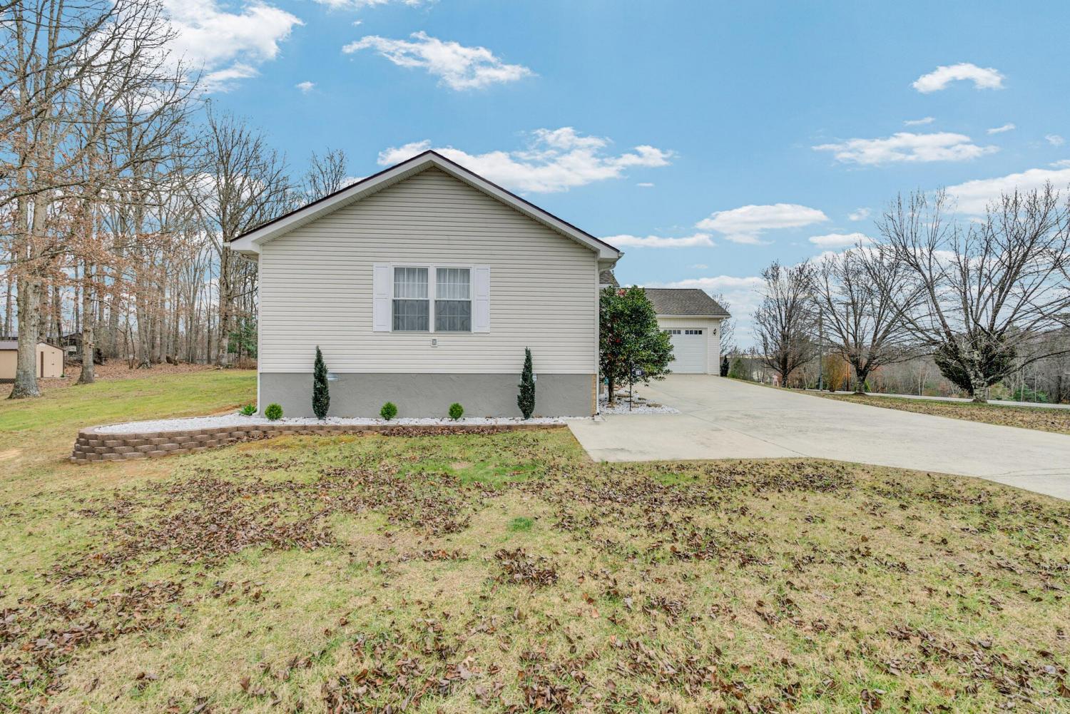 Welcome to 18 Sundown Lane, a 3-bedroom, 2.5-bath home with an office, situated on 1.78 acres in a peaceful Crossville setting. This property offers privacy, space, and functionality rarely found together. The main living area features hardwood floors, a cathedral ceiling, ceiling fan, and an electric fireplace, creating a warm and inviting atmosphere. The open kitchen flows into the living room and includes granite countertops, tile backsplash, hardwood floors, and a spacious dining area that overlooks the covered back deck. The dedicated office has a wall-to-wall bookcase and ample storage. A recently upgraded walk-in shower adds modern comfort. The property also features an oversized, newly built metal 2-bay garage/shop with an air compressor, plus a 1-bay attached garage, making it a true shop-lover's dream. Natural gas is available at the road but is not currently connected to the home. A rare opportunity combining acreage, living space, and exceptional workshop amenities. Schedule your private showing today.