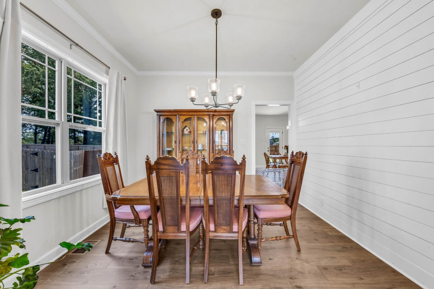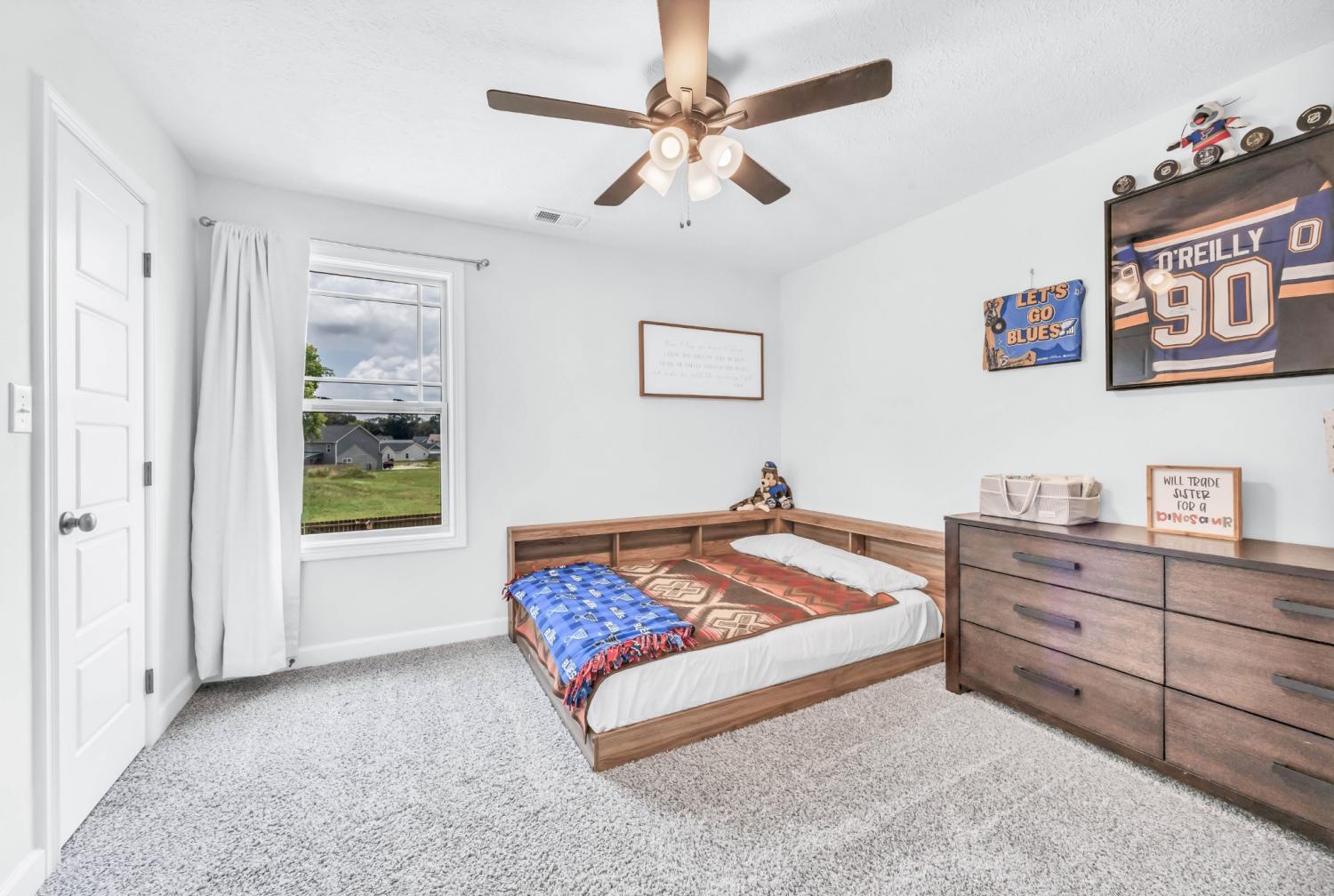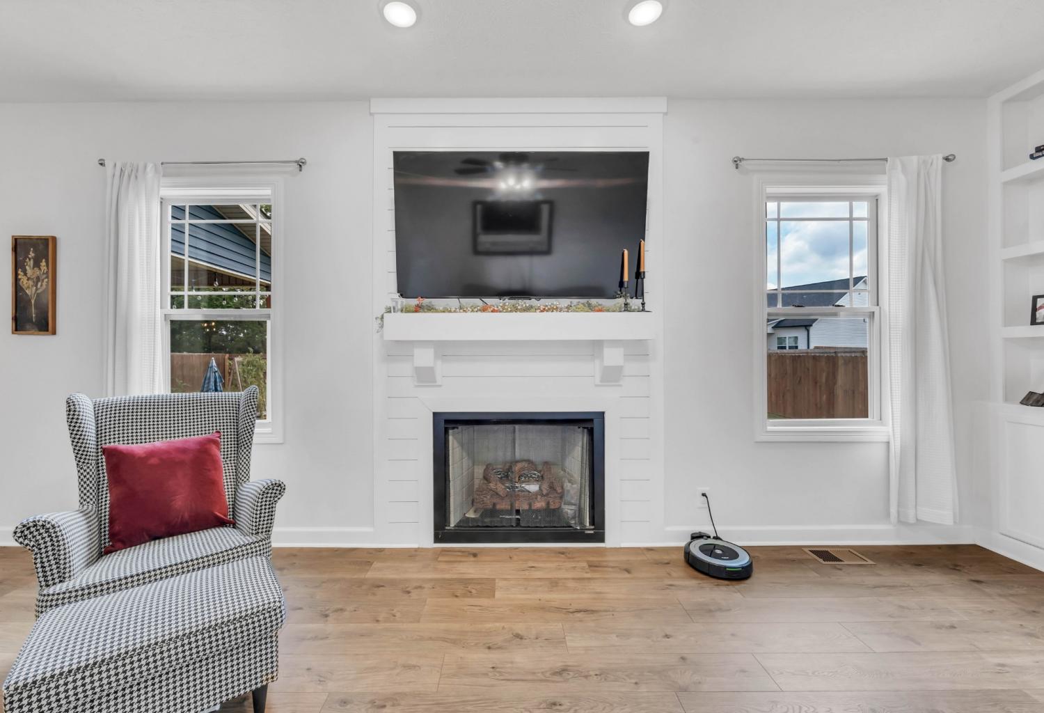 Beautifully designed and move-in ready, this Cherry Fields home offers standout curb appeal and thoughtful upgrades throughout. From the moment you arrive, the welcoming exterior sets the tone for what’s inside. Step into a bright foyer featuring a striking accent wall that blends style and function, creating an immediate wow factor. Durable and stylish LVP flooring flows throughout the main level, leading into a spacious living room with custom built-in cabinetry for both storage and a polished, custom feel. The kitchen is a true highlight, featuring soft close cabinetry, granite countertops, a modern tile backsplash, stainless steel appliances, and a generously sized pantry, perfect for everyday living and entertaining. The adjacent dining area is accented with a shiplap feature wall, adding a touch of modern farmhouse charm. Upstairs, the primary suite offers a relaxing retreat with a tray ceiling and elegant crown molding. The ensuite bath includes double vanities with granite countertops and ample storage. Additional bathrooms also feature granite countertops, maintaining a cohesive and upscale finish throughout the home. A large linen closet adds even more practical storage. Notable upgrades include a floored attic for extra storage and an enhanced crawlspace with moisture barrier, providing added peace of mind. Outside, enjoy a fully fenced backyard, ideal for relaxing, gardening, or entertaining. Located in the desirable Cherry Fields community in Clarksville, this home offers convenient access to shopping, dining, schools, and Fort Campbell, while still providing a neighborhood feel. Stylish, functional, and well cared for, this is one you’ll want to see in person. VA assumable loan is also an option.