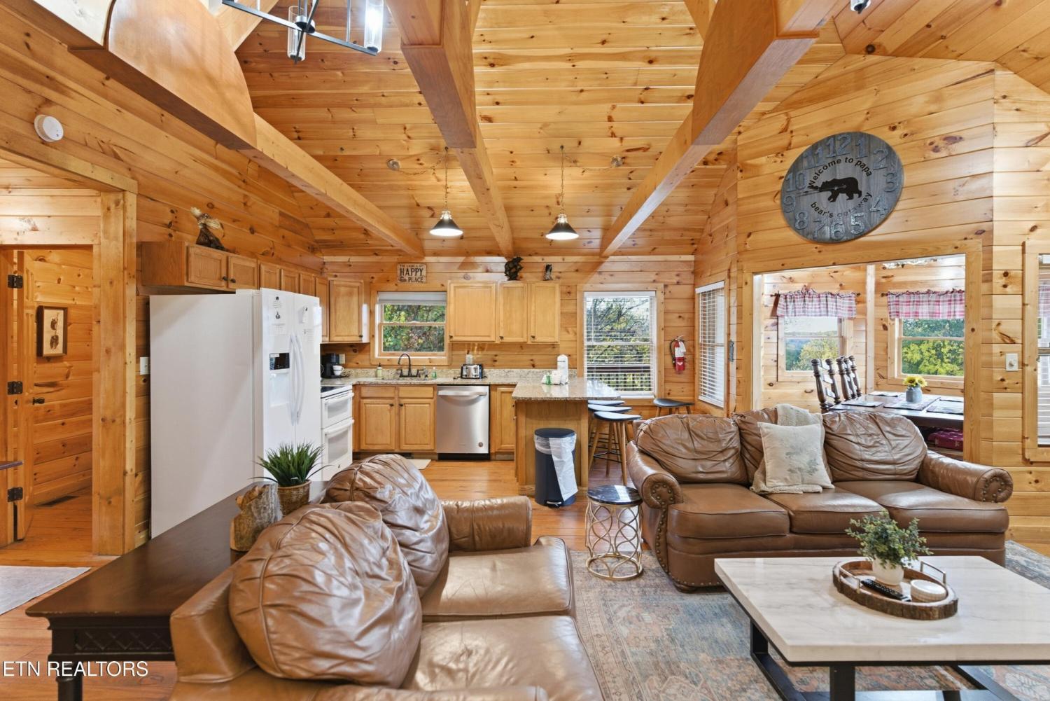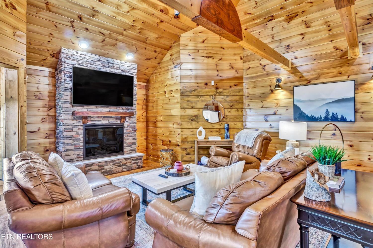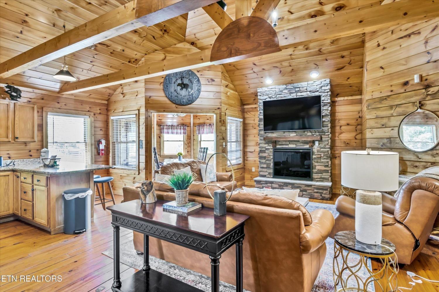 What an opportunity for a great TURN KEY VACATION RENTAL!!! Discover the ultimate mountain retreat with this stunning tri-level cabin just 17 minutes from Dollywood! Spacious enough to SLEEP 14 PEOPLE in its 3 BEDROOM PLUS BONUS AND BUNK ROOM, 3.5 bath and array of amenities. Enjoy movie nights in the THEATRE ROOM and challenge friends in the GAME ROOM. The ENLARGED and UPDATED KITCHEN is perfect for friends and family to enjoy cooking together, while the outdoor FIREPIT AREA and HOT TUB offer relaxation under the stars or take in the mountain views. This lovely cabin is a perfect blend of comfort and convenience in a picturesque setting. Plenty of off street parking, spacious enough for an RV or up to 6 or 7 cars. This lovely cabin would make a great family get-a-way or turn key vacation rental with potential to earn over $115,000 in RENTAL INCOME, based on the previous owners rental income. Current owner has invested close to $30,000 in improvements or upgrades and is selling fully furnished. The cabin also features a full security system from ADT that potentially could give you a discount on homeowners insurance.