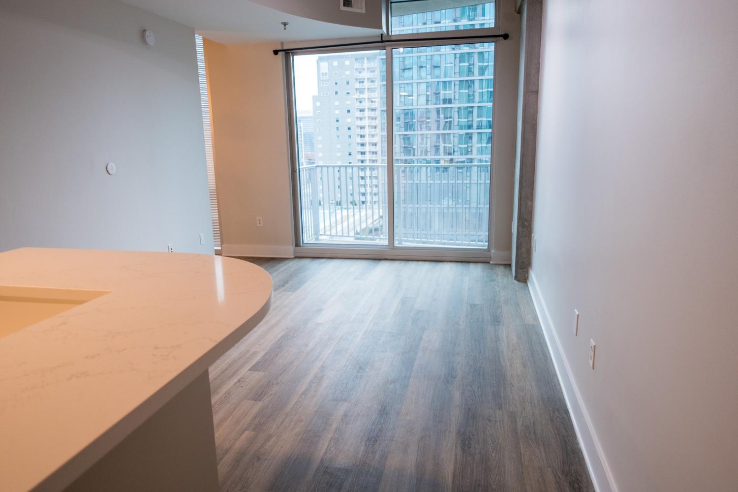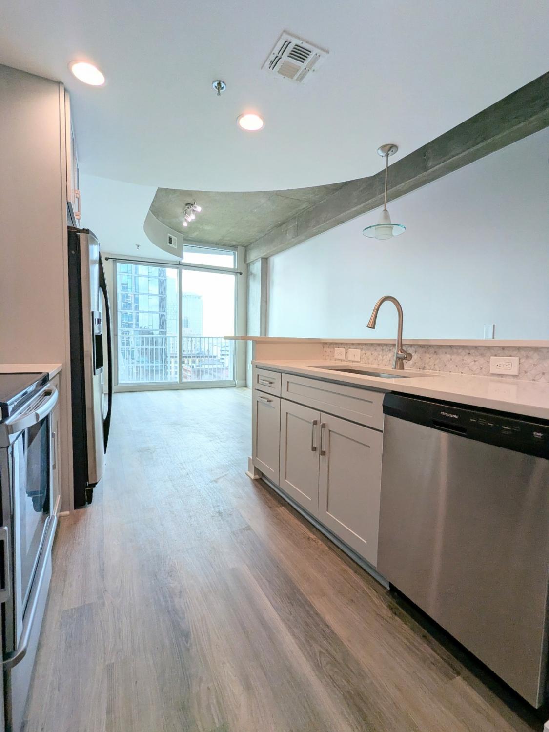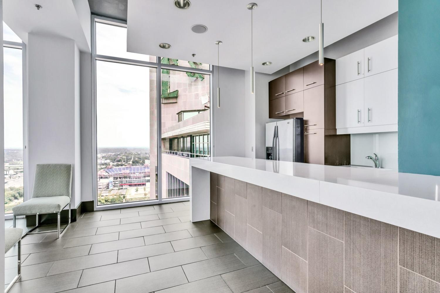 1-Bedroom, 1-Bath Downtown Condo High-Rise Living!– ALL UTILITIES INCLUDED + ONE Reserved Parking! Welcome to Viridian Residence 1204, an impeccably updated high-rise condominium in the heart of Downtown. This spacious, city home blends industrial character with modern sophistication — perfect for year-round city living. Interior Features include a NEW Wood-flooring NEW Granite countertops-NEW Kitchen Cabinets - NEW Lighting & MORE. A Step-out balcony with city views off the living space. Oversized floor-to-ceiling windows. Tall ceilings paired with architectural concrete deliver an elevated, industrial-chic aesthetic. Condo includes spacious Laundry, Built-in work station and Large Closets. Building Amenities include a Rooftop resort-style pool (31st floor), open year-round and accessible 24/7. Rooftop terrace with panoramic skyline views and free Wi-Fi. Resident clubroom with city views, catering kitchen, and complimentary morning coffee. 24/7 Fitness Center and Concierge services. SAVI Market just off the lobby open daily with all the essentials!!