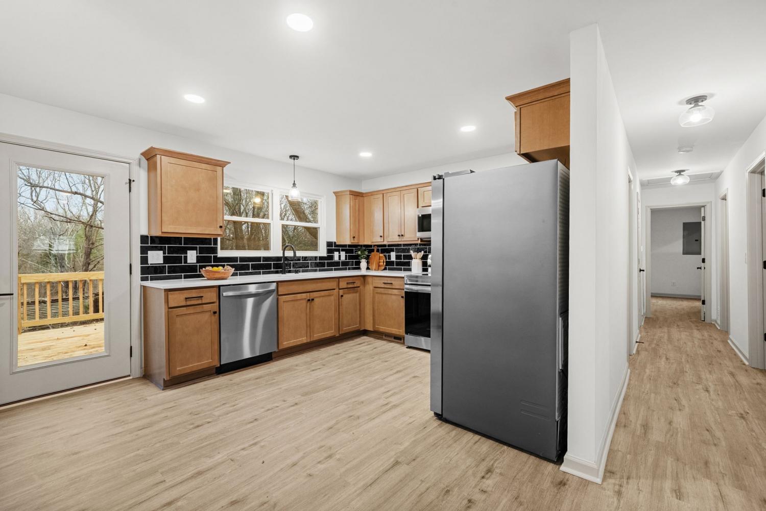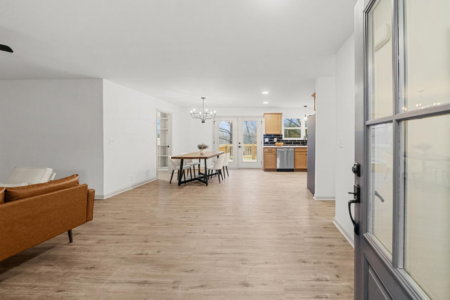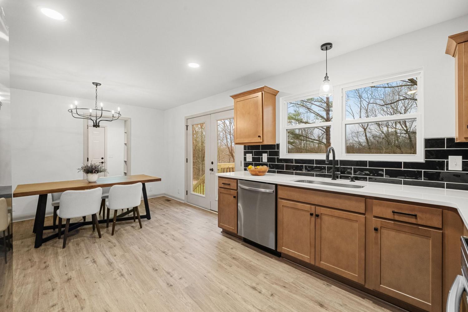 Completely renovated and move-in ready, this stunning home offers modern style and peaceful living on 3 gorgeous acres! Inside, large windows provide ample natural light throughout! The home flows seamlessly through the large living room to the open concept dining/kitchen area. In the kitchen, you’ll find beautiful quartz countertops, fashionable cabinetry, modern finishes, and a generously sized pantry—perfect for storage and organization.The primary bedroom has abundant space and includes a oversized closet with custom shelving and a bathroom with a sleek stand-up tile shower and a double vanity sink! Major updates include a brand new roof, garage doors, deck, appliances, and windows. Enjoy the perfect balance of privacy and convenience, located just minutes from I-24 and ideally situated between Clarksville and Nashville. This beautifully updated home offers space, comfort, and easy access to everything you need—don’t miss this exceptional opportunity!