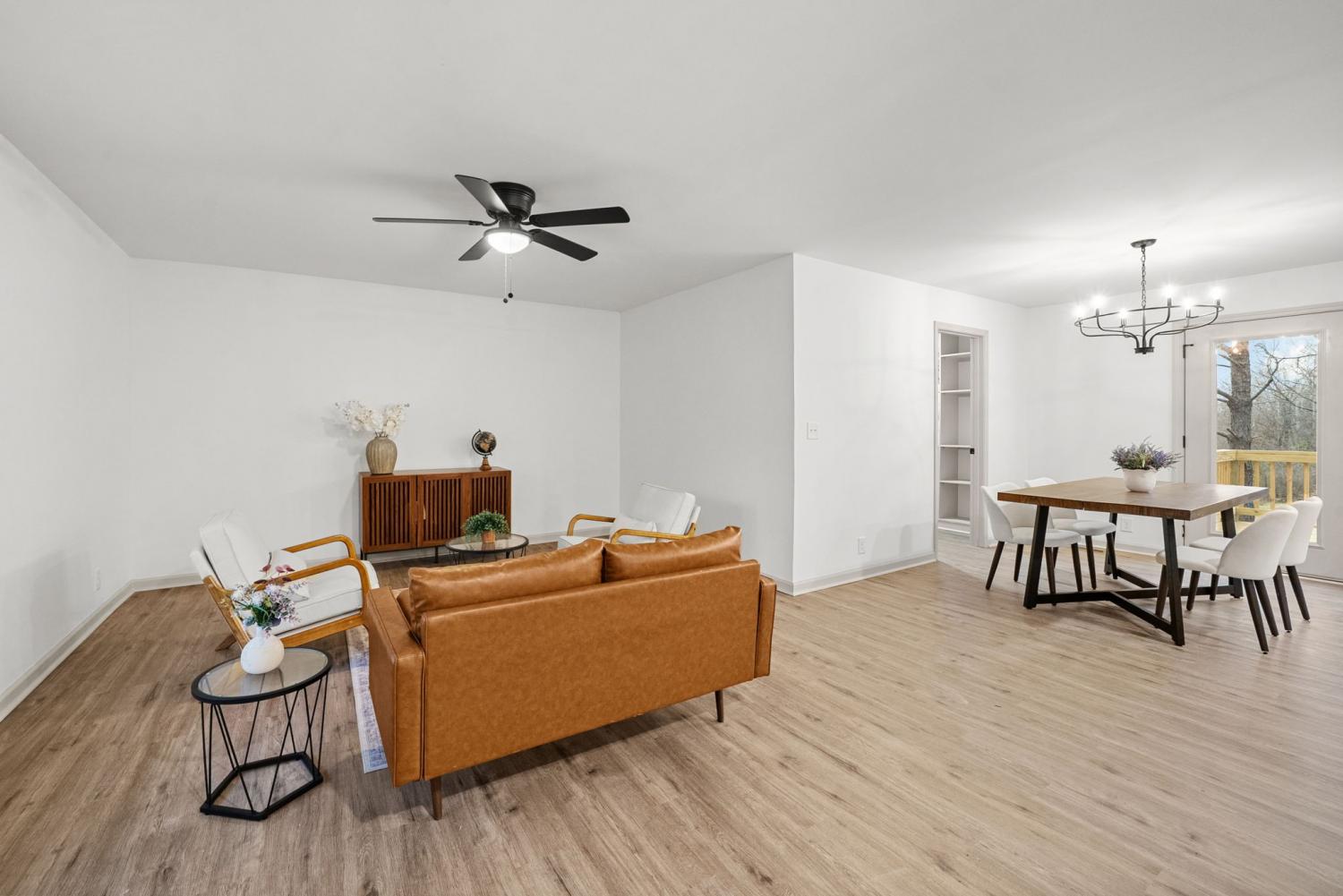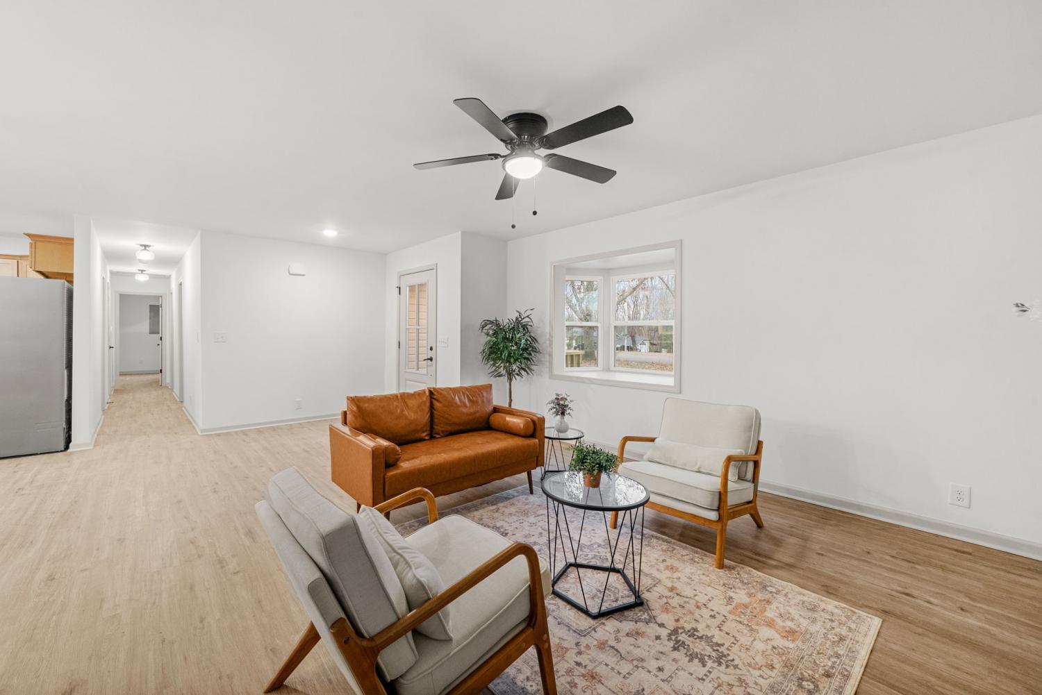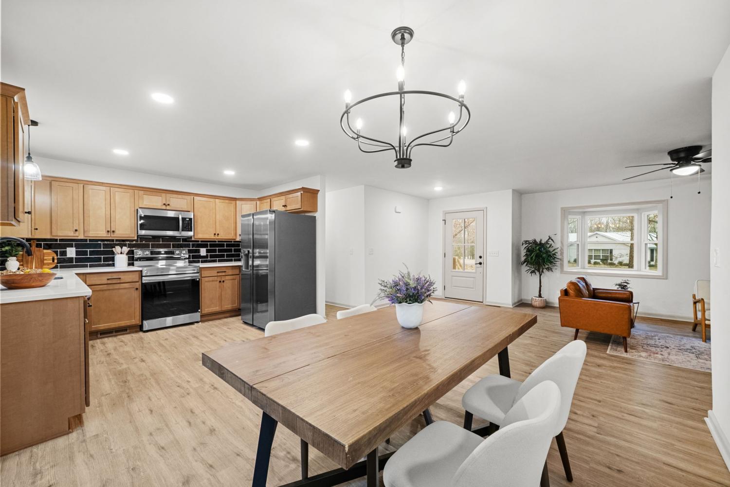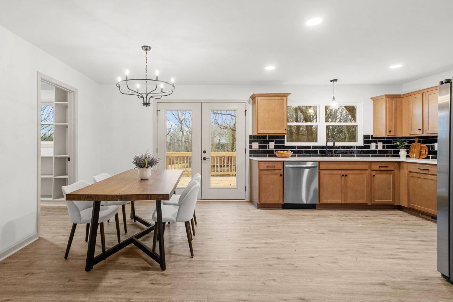 Completely renovated and move-in ready, this stunning home offers modern style and peaceful living on 3 gorgeous acres! Inside, large windows provide ample natural light throughout! The home flows seamlessly through the large living room to the open concept dining/kitchen area. In the kitchen, you’ll find beautiful quartz countertops, fashionable cabinetry, modern finishes, and a generously sized pantry—perfect for storage and organization.The primary bedroom has abundant space and includes a oversized closet with custom shelving and a bathroom with a sleek stand-up tile shower and a double vanity sink! Major updates include a brand new roof, garage doors, deck, appliances, and windows. Enjoy the perfect balance of privacy and convenience, located just minutes from I-24 and ideally situated between Clarksville and Nashville. This beautifully updated home offers space, comfort, and easy access to everything you need—don’t miss this exceptional opportunity!