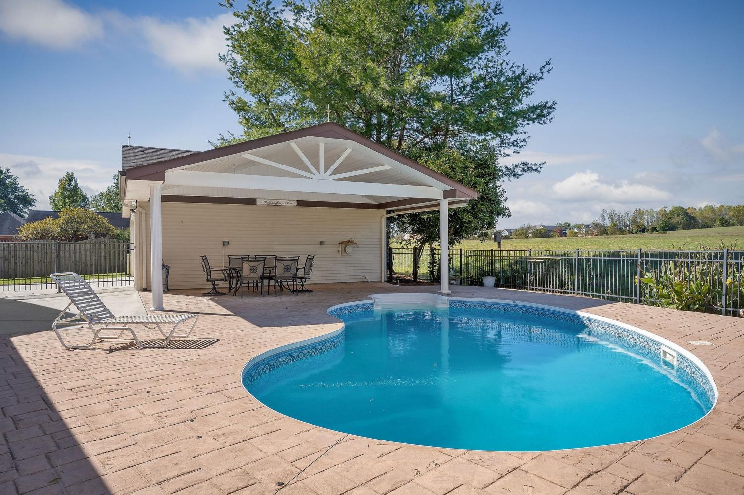 Garage Lover's Dream! This all one level brick home features 3 bedrooms and thoughtful upgrades throughout. Enjoy hardwood floors with heated tiled floors in the primary bath. Family room with gas fireplace, eat-in kitchen plus formal dining. Step outside to an in-ground pool area and exceptional garage space. Attached 2 car garage (heated and cooled) a 2 car detached garage (heated & cooled) with attic storage, 2 car detached garage with full bath attached for pool area convenience and additional covered space for lawn equipment. Large lot and Conveniently located just minutes to I-40 and Cookeville City Limits.
