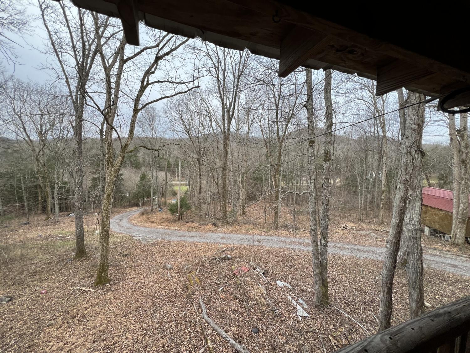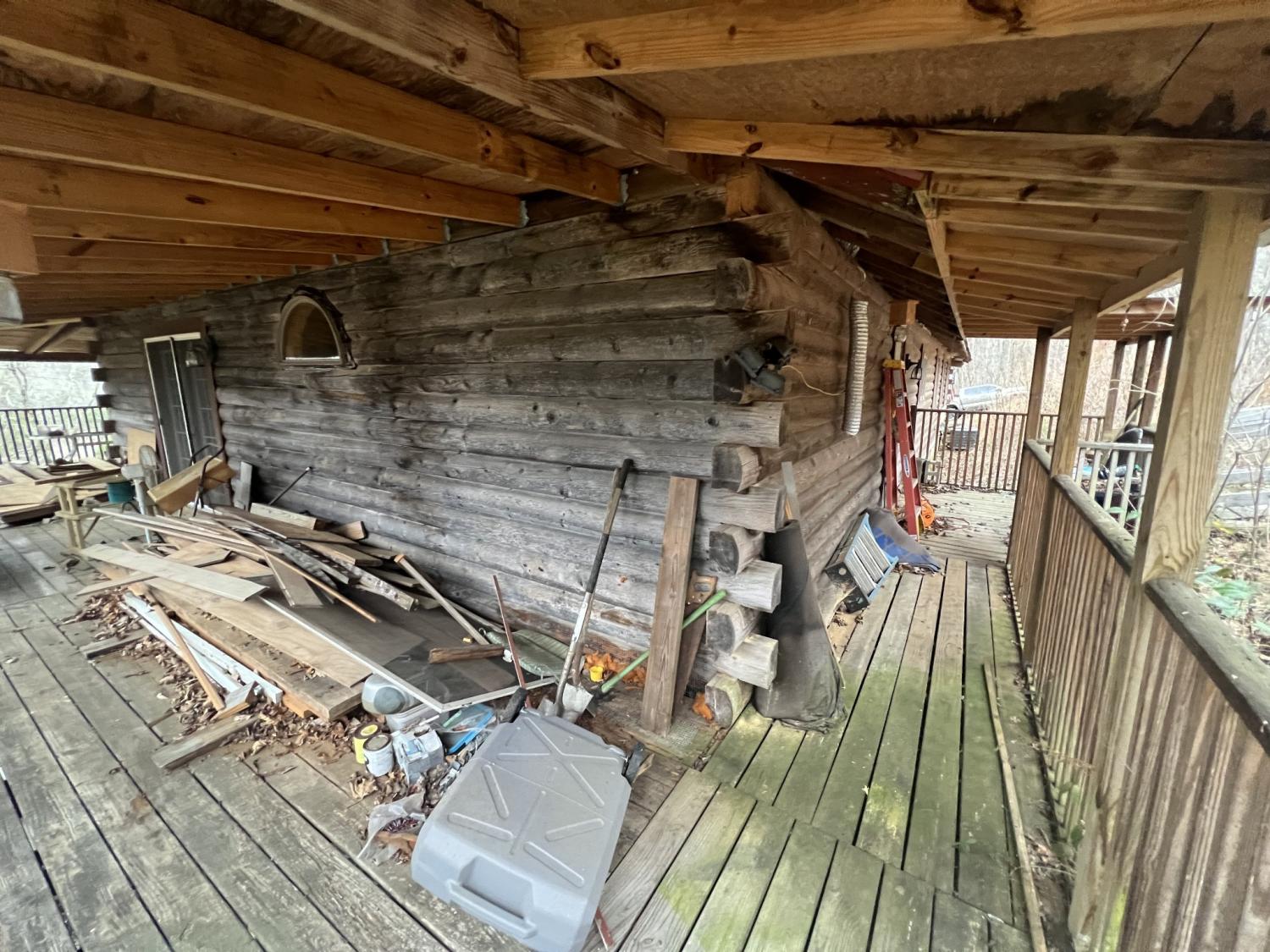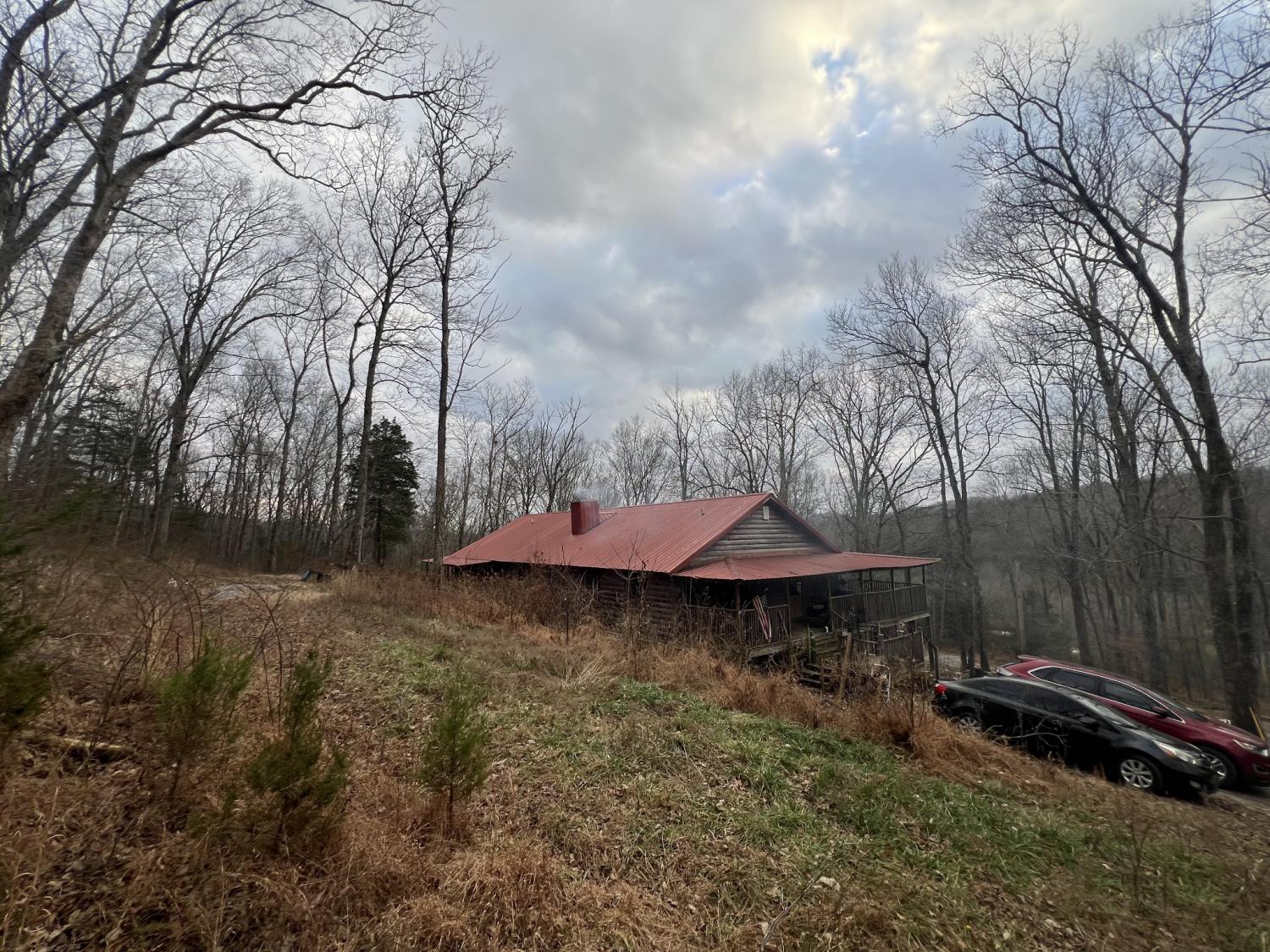 Check out this Log home on over 12 acres where you can hunt on your own land. This property needs a little love, but would make a wonderful retreat or even a hunter's paradise. The wrap around porch offers beautiful views almost as though you are in Gatlinburg. The exterior offers multiple storage sheds. The interior of this home offers a very large master suite with separate tub and shower, double sink vanity and has a walk-in closet. Vaulted ceilings in the living room, kitchen and dining. Living room offers a very large rock fireplace (wood) with built-in shelving and the kitchen offers a large island with plenty of room for entertaining and a nice size pantry. There is a second bedroom and full bath on the opposite side of the house and an extra room that can be used as an office. This home is being sold AS-IS.