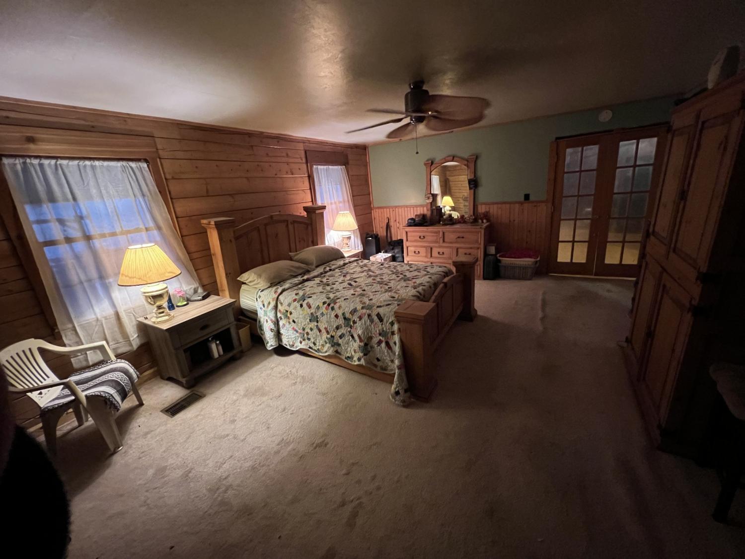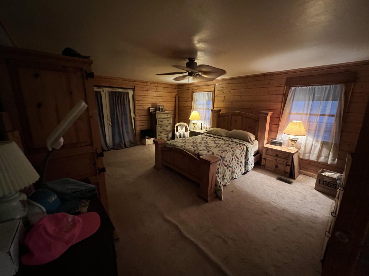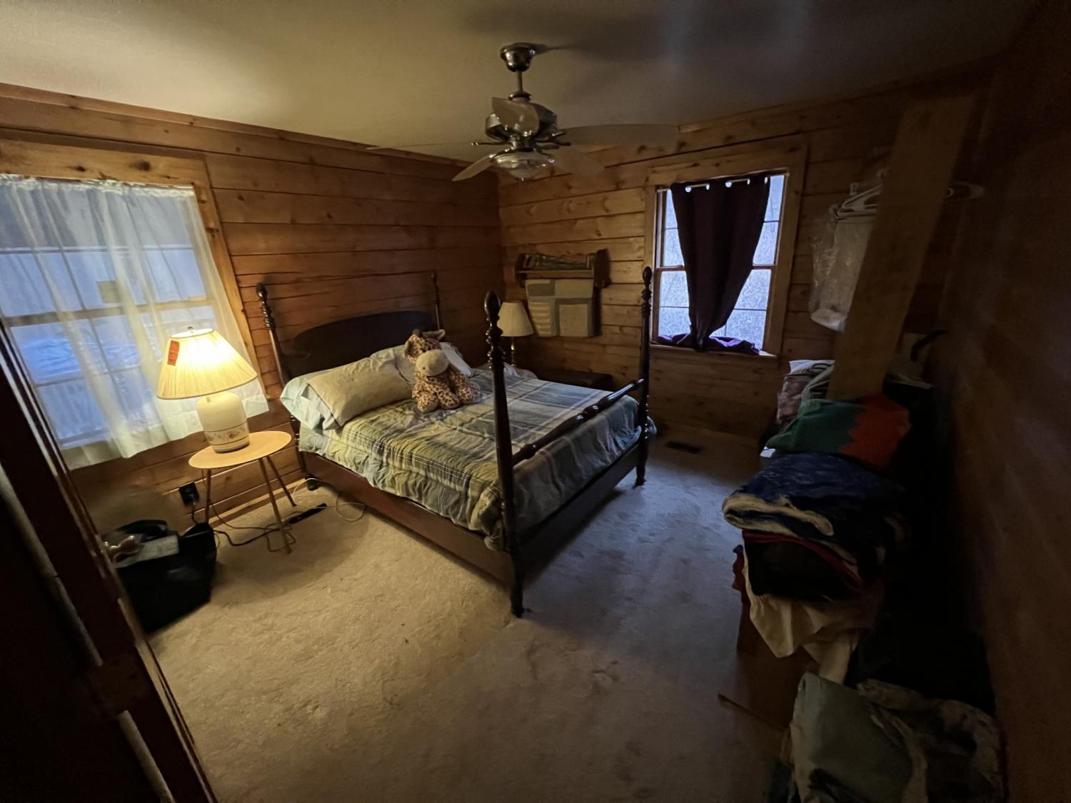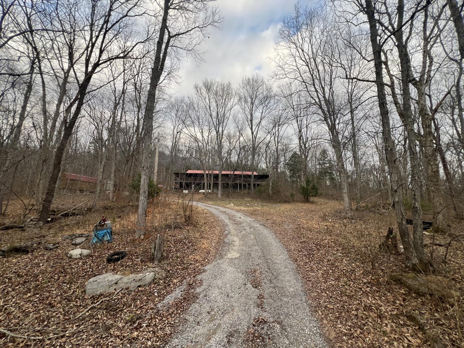 Check out this Log home on over 12 acres where you can hunt on your own land. This property needs a little love, but would make a wonderful retreat or even a hunter's paradise. The wrap around porch offers beautiful views almost as though you are in Gatlinburg. The exterior offers multiple storage sheds. The interior of this home offers a very large master suite with separate tub and shower, double sink vanity and has a walk-in closet. Vaulted ceilings in the living room, kitchen and dining. Living room offers a very large rock fireplace (wood) with built-in shelving and the kitchen offers a large island with plenty of room for entertaining and a nice size pantry. There is a second bedroom and full bath on the opposite side of the house and an extra room that can be used as an office. This home is being sold AS-IS.