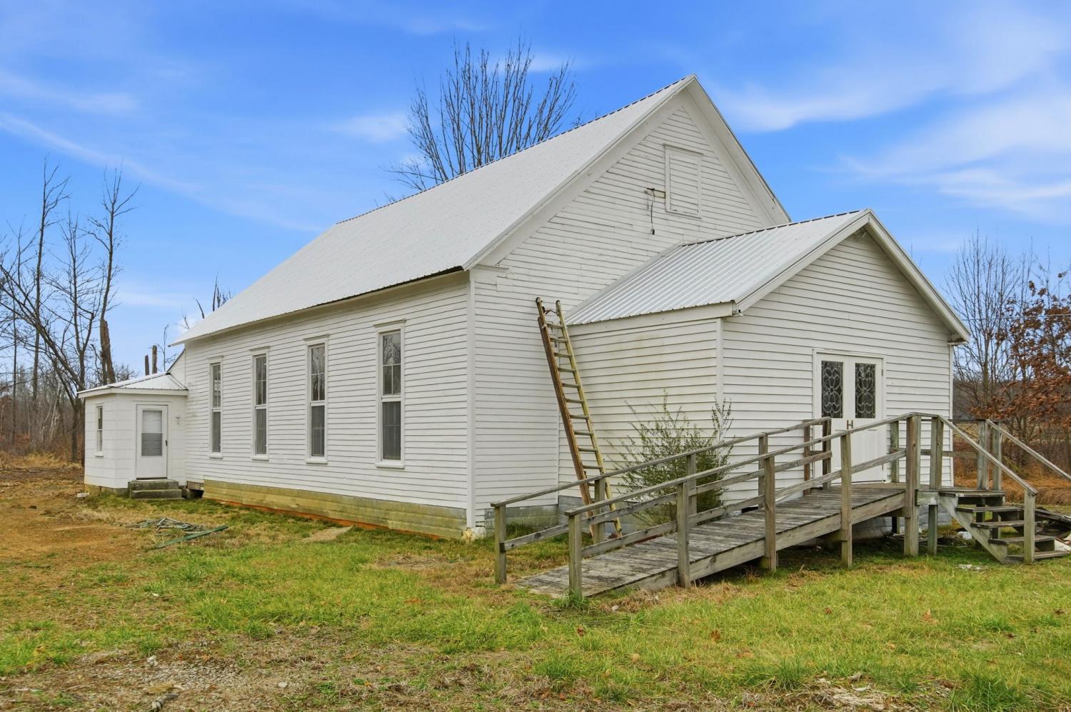 Have you ever wanted to own your own wedding venue, event venue, etc? Then this is the property for you. Have you ever wanted to convert an old church or building into a home? Then this is the property for you. This property was owned by Central Christian Church for generations. The property has been rezoned residential. Property has been undergoing renovations. Come make this property yours and finish the renovations according to your dreams and plan. New drywall and paint throughout, outside pressure washed and completely repainted, some siding replaced, lots of trees have been removed, brand new roof as of Summer of 2025, berm built around the side and back of the main building, new chandeliers installed, and property has been surveyed.