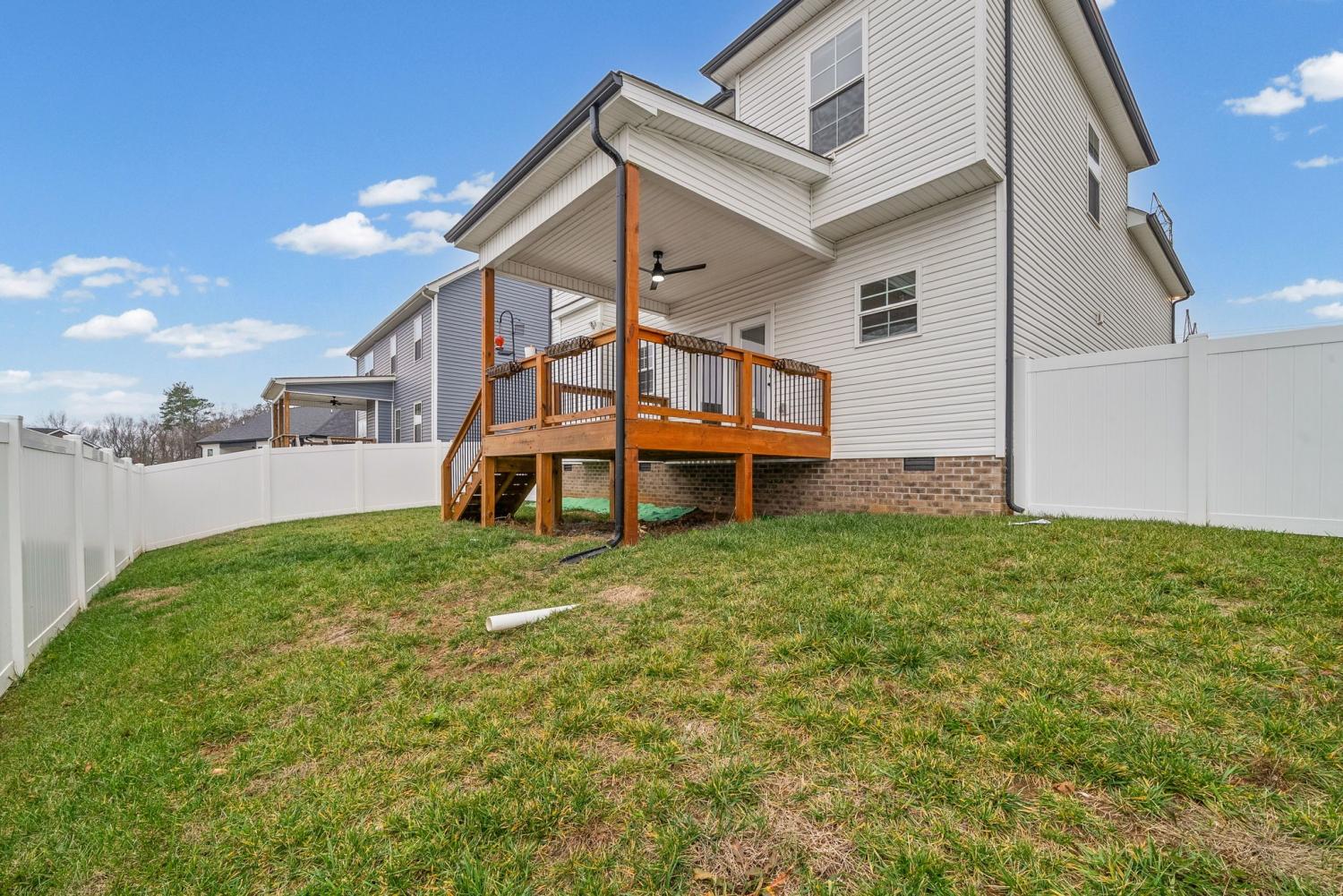 Like new three bedroom, two and a half bath home with a bonus room, conveniently located just minutes from restaurants, shopping, and more! This beautiful home features laminate flooring throughout all main living areas and bedrooms, with tile in the wet areas for added durability! The large, open living room offers a cozy fireplace and flows seamlessly into the spacious eat in kitchen, complete with granite countertops, stainless steel appliances, an island, and plenty of cabinet space! The primary suite features a beautiful coffered ceiling and a full bath with a double vanity, standalone soaking tub, and tiled shower! Both guest rooms are generously sized, and the large bonus room provides additional versatility! Enjoy the fantastic outdoor area with a covered deck and fenced backyard! Pet rent applicable.