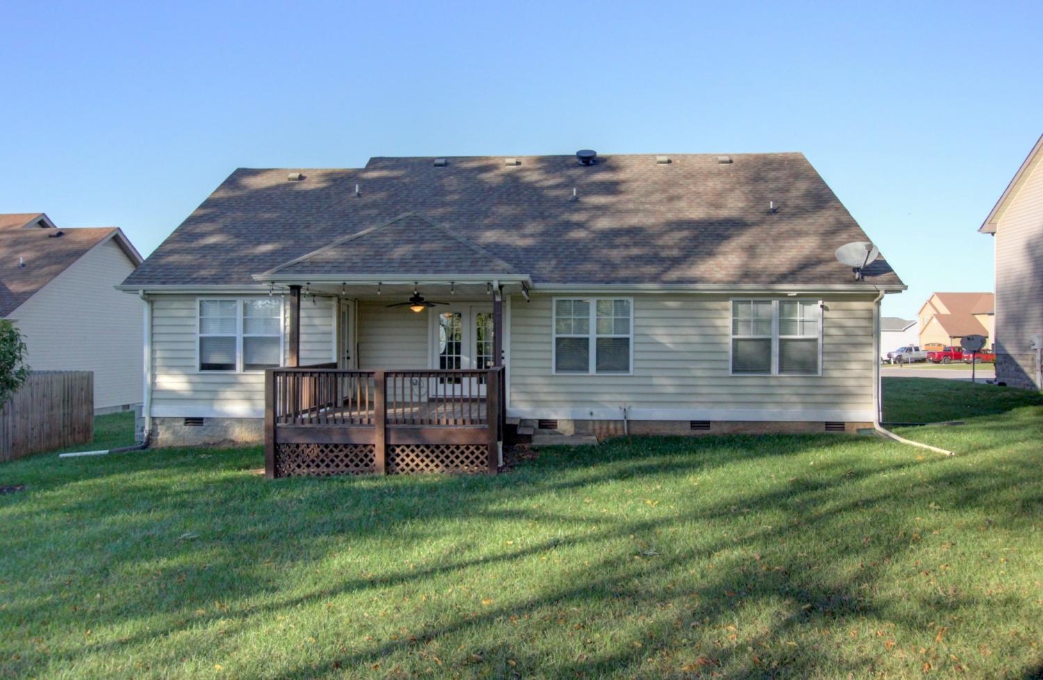 One LEVEL Ranch that is HANDICAP ACCESSIBLE! Features both a Covered Front Porch and a Covered Back Deck! Formal Dining Room & Living Room with a Natural Gas Fireplace! Primary Bedroom has Dual Sinks, Separate Jetted-Tub & Shower plus a Walk-in Closet! Manufactured Hardwood on First Floor, Title in the wet Areas & Carpet in the Bedrooms and Bonus Room! Eat-in Kitchen has Stainless Steel Appliances, Granite Counter-Tops & a PANTRY! Bonus Room has a Mini-Split HVAC & Access to an Attic with an additional 400 square foot of STORAGE! All Appliances REMAIN to include the WASHER & DRYER! Vivant Security System with Camera's and ALL REMAIN! Hot Water Heater NEW in 2023! Water Softner REMAINS! Home Warranty already on home and transfers to buyer for 1 year after closing. 30 minutes from Ft Campbell and close to Schools & Shopping!