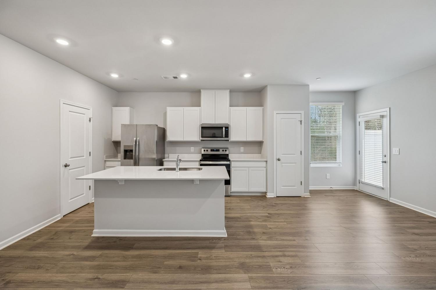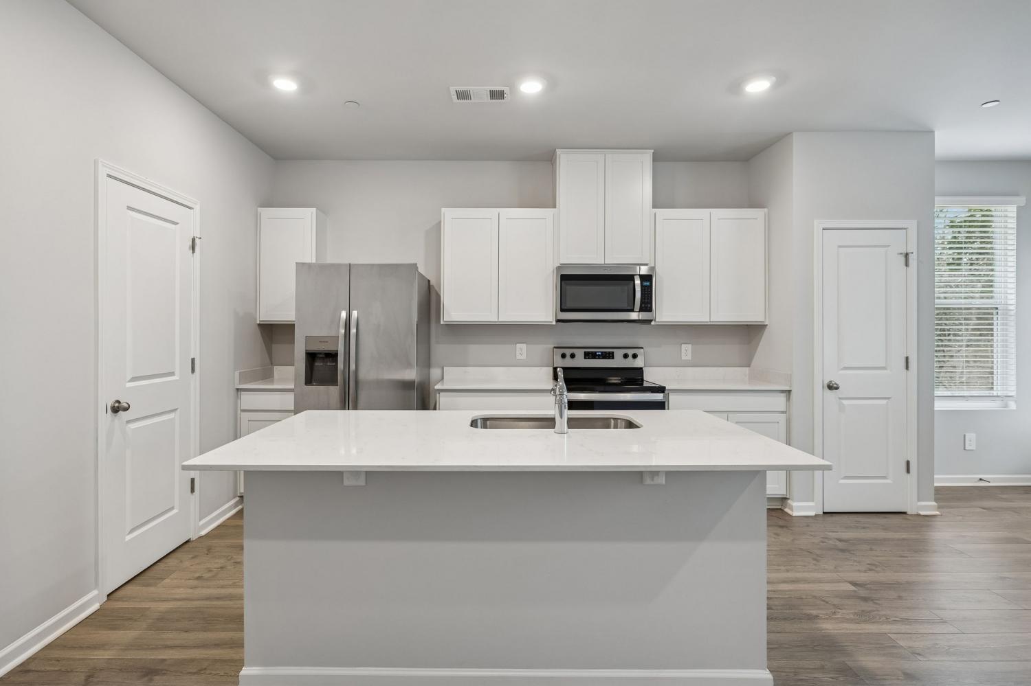 Not like the other units! Hardiplank and stone--not vinyl! Great location--end unit--very private view in back looking at peaceful woods. Eligible for 0% down USDA loan! Just over 1 year old. 9' ceilings, Newly painted white walls, LVT flooring in downstair area. Large open liiving/kitchen area looking out to wooded area. Washer, dryer, refrigerator. 3 beds, 2- 1/2 baths. All bedrooms upstairs, powder room downstairs. MOVE IN READY! Conveniently located near downtown, restaurants, shopping.