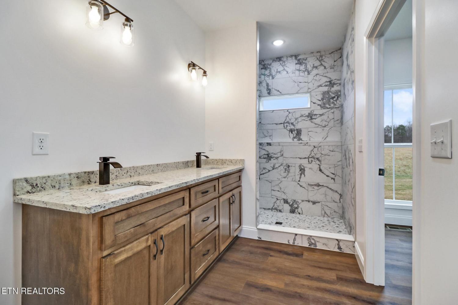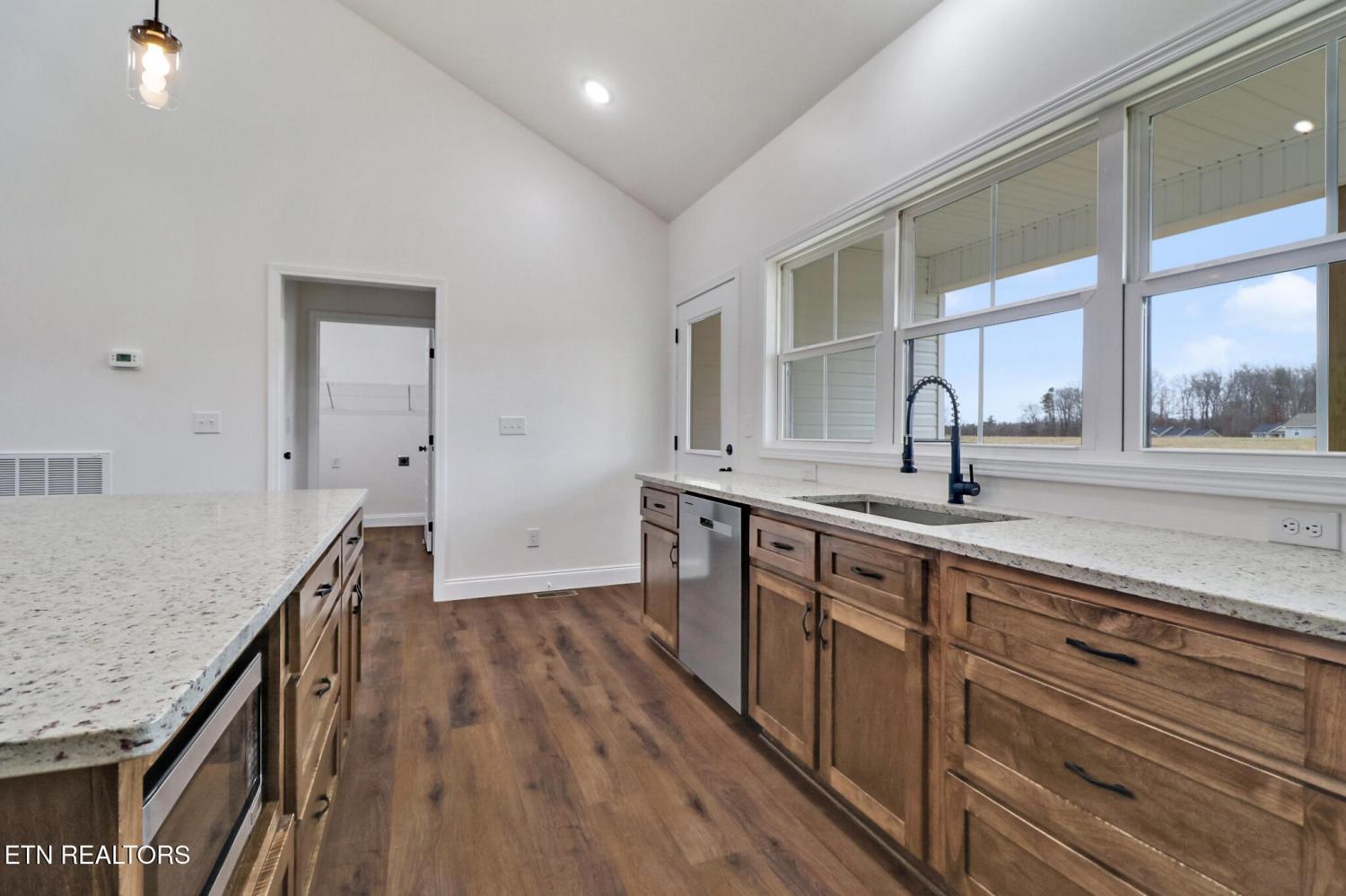 Just completed ready for a family to enjoy its beauty. Soaring cathedral ceiling in open living room, dining room, kitchen area, gleaming flooring, so much natural light. Kitchen with custom cabinets with so much storage and counter space for all the chefs in the family to enjoy, all stainless kitchen appliances convey. Spacious master suite with walk in closet, master bath with tile walk in shower, double vanity. 2 other bedrooms with walk in closets as well. Covered front porch and back porch for those rainy days. Nice level to rolling lot, ready for kiddos play sets. 2 car attached garage.