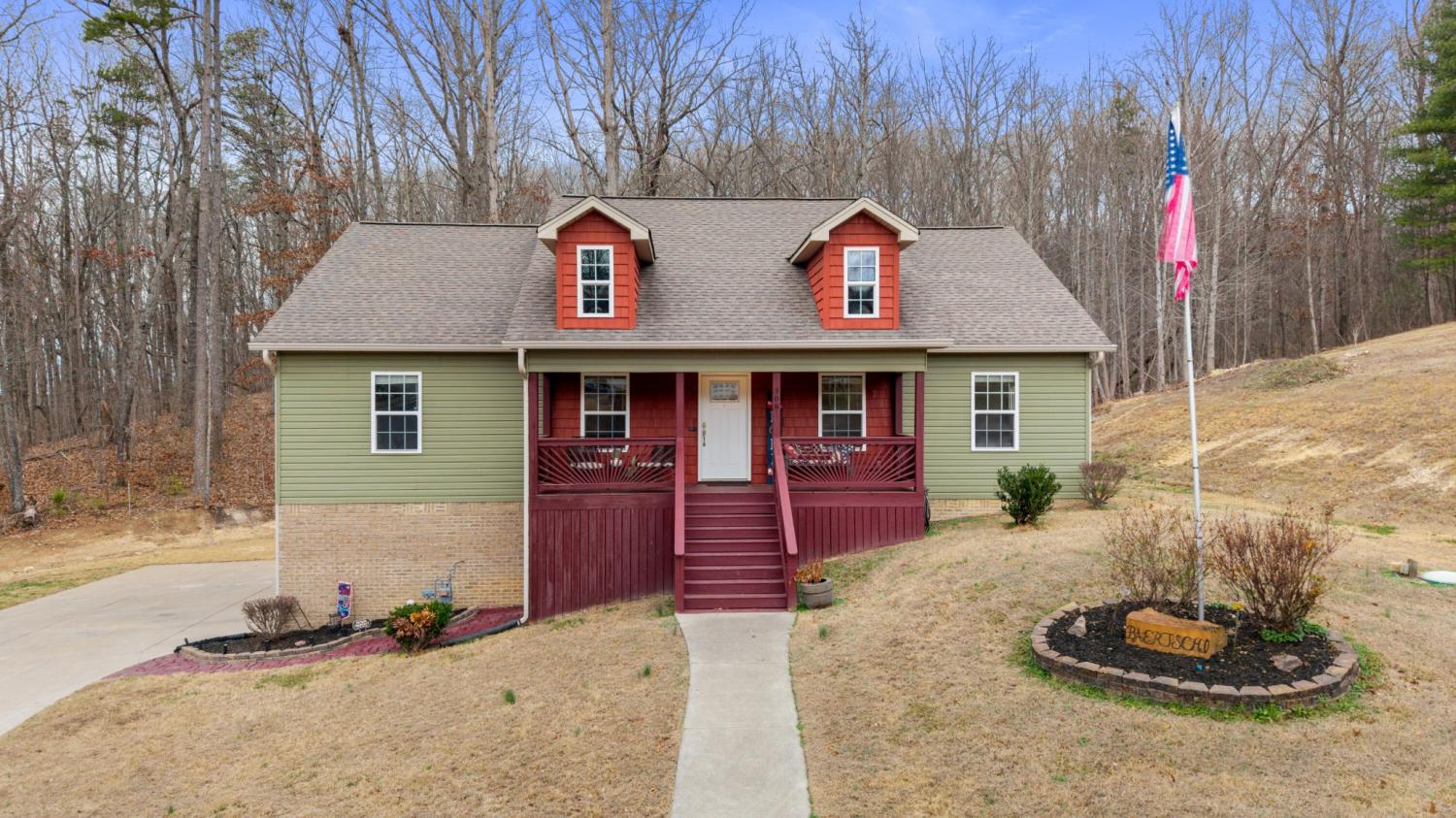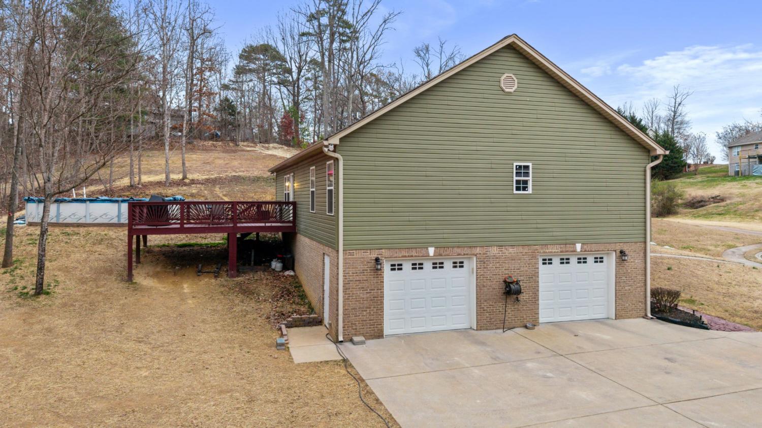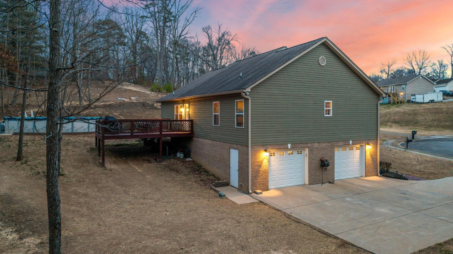 Custom-built 3-bedroom, 2-bath move-in ready home located in the Harvest Hill subdivision featuring an open floor plan with a spacious great room and hardwood flooring and tile throughout. This well-maintained home is filled with natural light, offers recessed lighting, and includes a kitchen with a granite island that flows seamlessly into the dining area with access to an extended deck, ideal for outdoor entertaining. The split-bedroom floor plan provides privacy, with the secondary bedrooms connected by a Jack-and-Jill bathroom, while the oversized primary suite features a double tray ceiling, double vanities, a jetted tub, and a separate tiled shower. An extra-large utility room is located on the main level, and storage abounds with attic space and pull-down access plus a large unfinished basement that includes a basement garage with space for multiple vehicles, making it ideal for a workshop, hobby area, or storage for ATVs and outdoor equipment. Additional highlights include a rocking-chair front porch with views, sidewalks, a cul-de-sac location, an above-ground pool, and convenient access to shopping, dining, the YMCA, and everyday amenities in Bradley County.