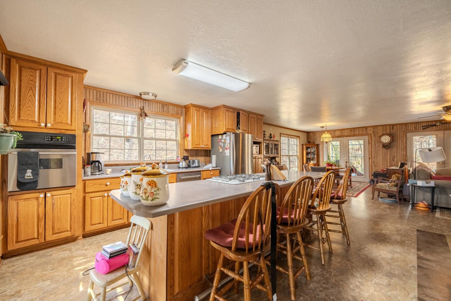 Welcome to your ideal country retreat! Nestled on approximately 19 picturesque acres, this unique property offers the perfect blend of wooded privacy and running streams. The 2-bedroom, 2-bath home provides a warm and inviting atmosphere featuring a open concept kitchen, dining, and living room with plenty of space for relaxing or hosting guest. The large covered back porch offers a peaceful setting for evening gatherings, or simply unwinding as you watch all the wildlife the area has to offer. The home also comes with a screened in porch/green house, 3 car plus detached garage, 3 car carport, and storage shed. The land features a beautiful year-round creek, gorgeous landscaping and a waterfall feature.