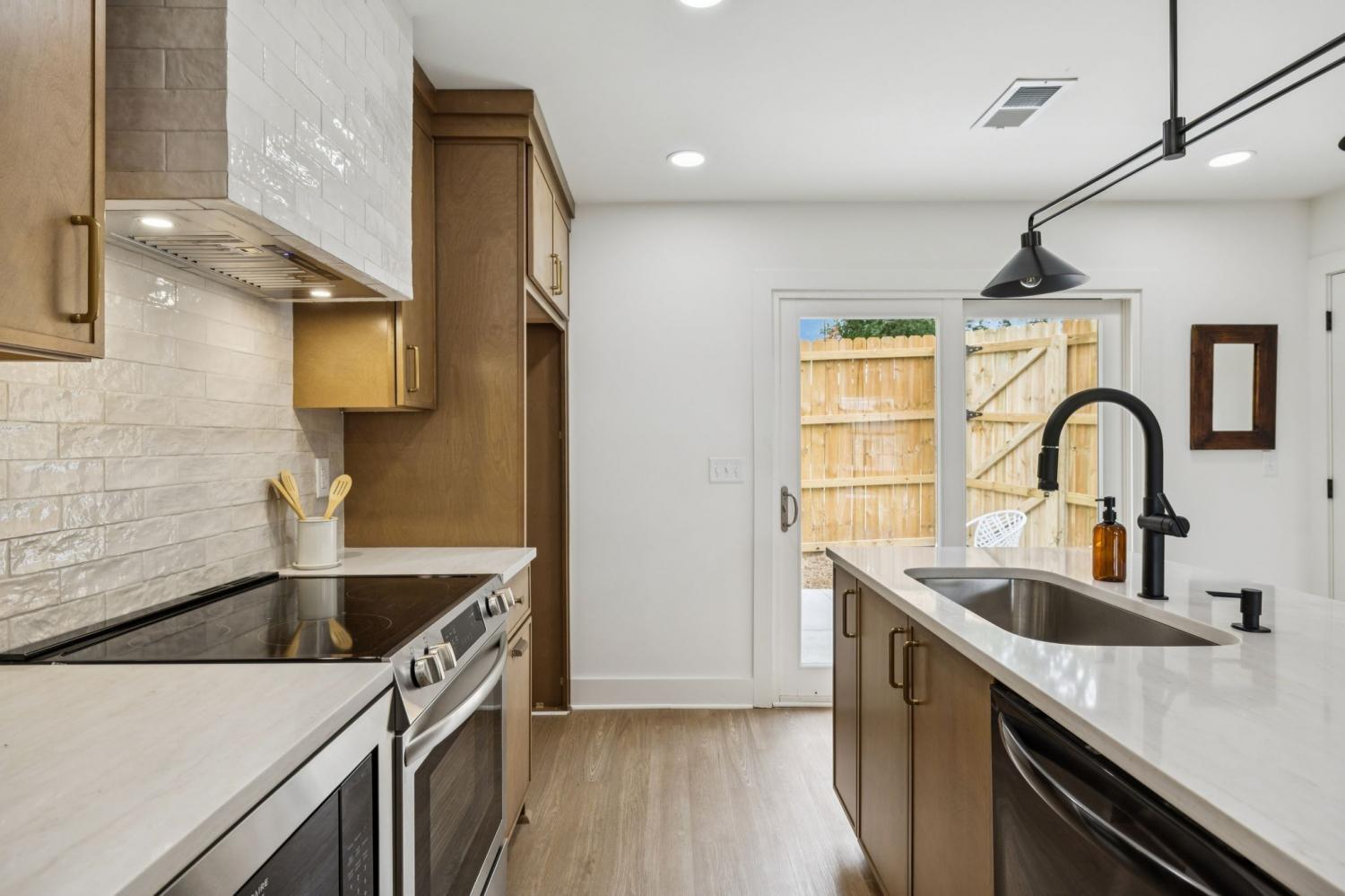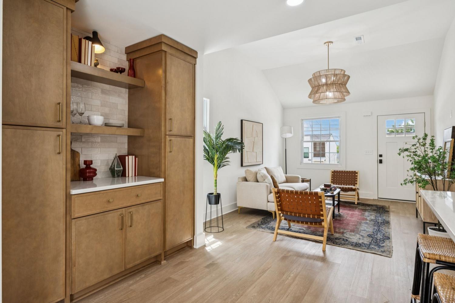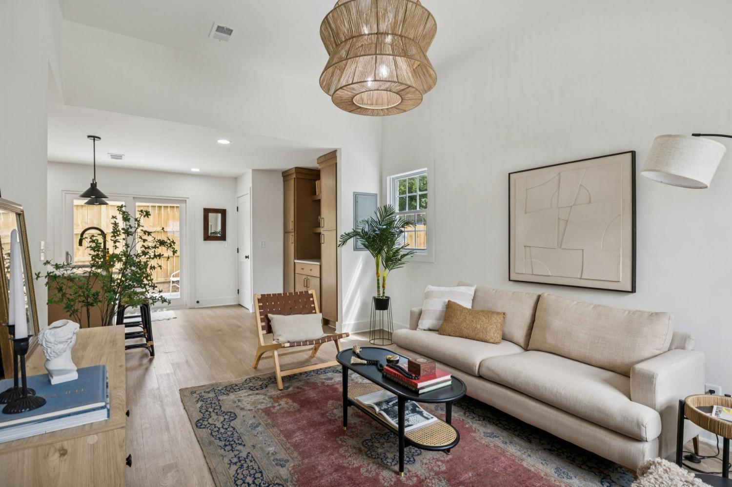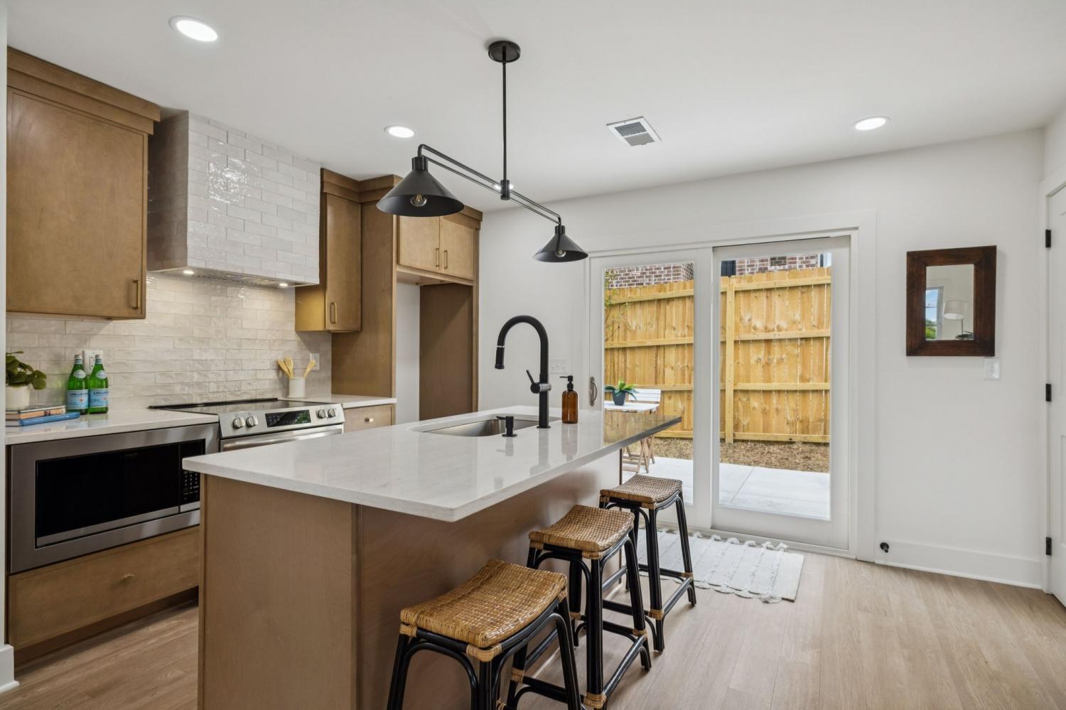 Step inside this thoughtfully designed 918 square foot Bohemian inspired home where every inch has been maximized with character and functionality. The open concept layout flows effortlessly beneath a 10 foot heightened ceiling , creating a bright and inviting living space that feels stylish,boutique and highly livable. This home features 2 bedrooms and 2 bathrooms, each designed with unique details. The primary suite boasts a spa-like bathroom with multi-tone ceramic tile, a wall-to-wall shampoo niche, and a fully seated bench in the shower for ultimate comfort. The custom closet is built out with trim details and intentional storage, including designated spaces for shoes, jewelry, dresses, suits, and more. The secondary bathroom offers a spacious retreat of its own with two-tone ceramic tile and a tub combo, blending form and function beautifully.The kitchen is a standout with white oak cabinetry, a Lunar Gold quartzite countertop, an off white luxury Ceramic Tile on the back splash, that wraps around the hood vent and ties in the Pantry/Wetbar area. The kitchen pantry and wet bar combo add both practicality and an entertainers touch, making the space perfect for gatherings. Every element of this home reflects intentional design with built ins and finishes that elevate your version of everyday living. The result is a modern Bohemian retreat that feels curated, comfortable, and completely unique at an unbeatable price here in EAST Nashville. All Seller Concessions offered to be contingent upon buyers use of builder/Sellers Preferred Lender.