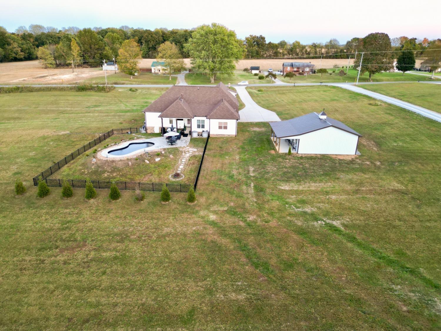 Stunning "LIKE NEW" Home on 5 acres with Lagoon Inground Pool! 4 Bedrooms, 3.5 Baths, Huge Bonus Room, 2 car attached Garage & 30x30 Outbuilding! Luxurious living featuring open floor plan with Hardwood flooring throughout & Tiled floors in Baths! Custom Kitchen with Granite, oversized Island, Stainlesss Steel appliances remain, big Pantry, Breakfast area & Formal Dining room! Primary Suite double granite vanities, tiled shower, garden tub & X-large Walk in closet! Laundry room with Utility sink! Gorgeous Saltwater Lagoon style inground 30’ swimming pool with sunbathing shelf (6 ft deep end) & Covered patio is a private backyard Oasis! 3100 sq ft! Country living with easy access to nearby amenities! Truly the best of both worlds! Ring doorbell & outside cameras remain! Mounted tv's in living room, bonus room & outside remain.