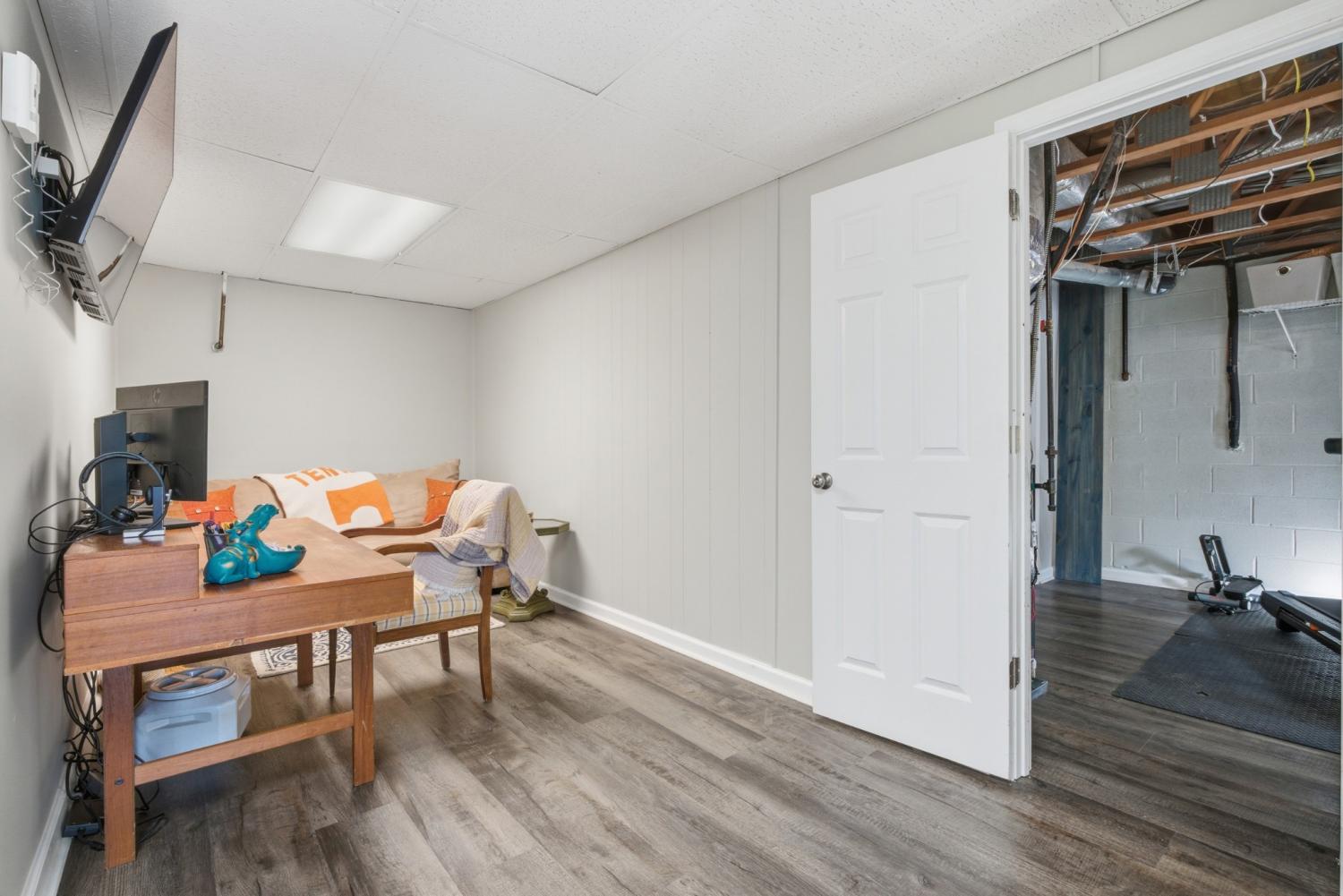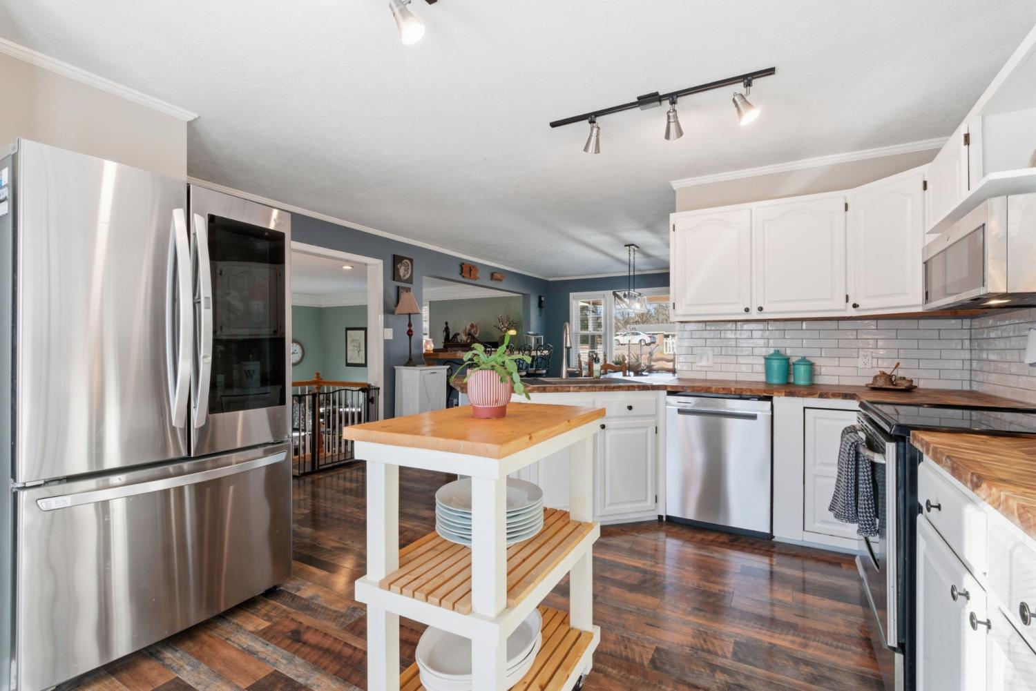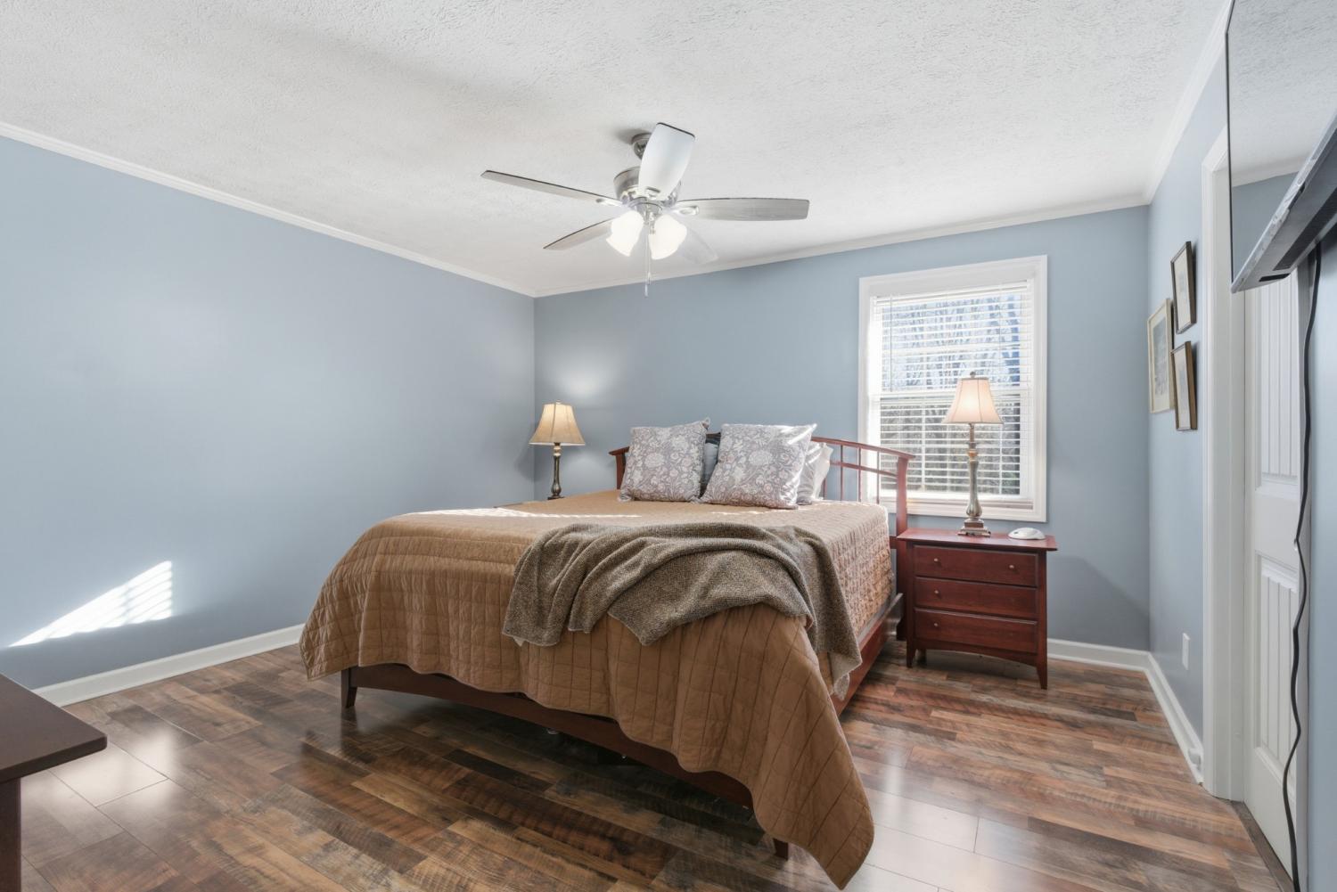 Welcome to this well-maintained all-brick home nestled on a quiet cul-de-sac. Inside, you’ll find an open-concept kitchen, dining, and living space perfect for everyday living and entertaining. The main living room offers a cozy fireplace with gas logs, while the kitchen features stainless steel appliances and freshly painted white cabinets. The primary suite on the main level has laundry hookups in the closet and there is an additional laundry room in the basement. The finished basement expands your living space with two private bedrooms, full bath, additional storage rooms, and a second living area—perfect for guests or extended family. Enjoy new LVP flooring and fresh paint in the lower level. Step outside to a large back deck overlooking a gently sloping, fenced backyard complete with a fire pit area. A metal roof, concrete driveway, and storage shed round out this fantastic property. New Electrical Panel | New Mini Split in basement level | New furnace | New countertops | New kitchen sink | New dishwasher | Professionally landscaped | Brand new fenced in backyard | Brand new bathroom vanities |