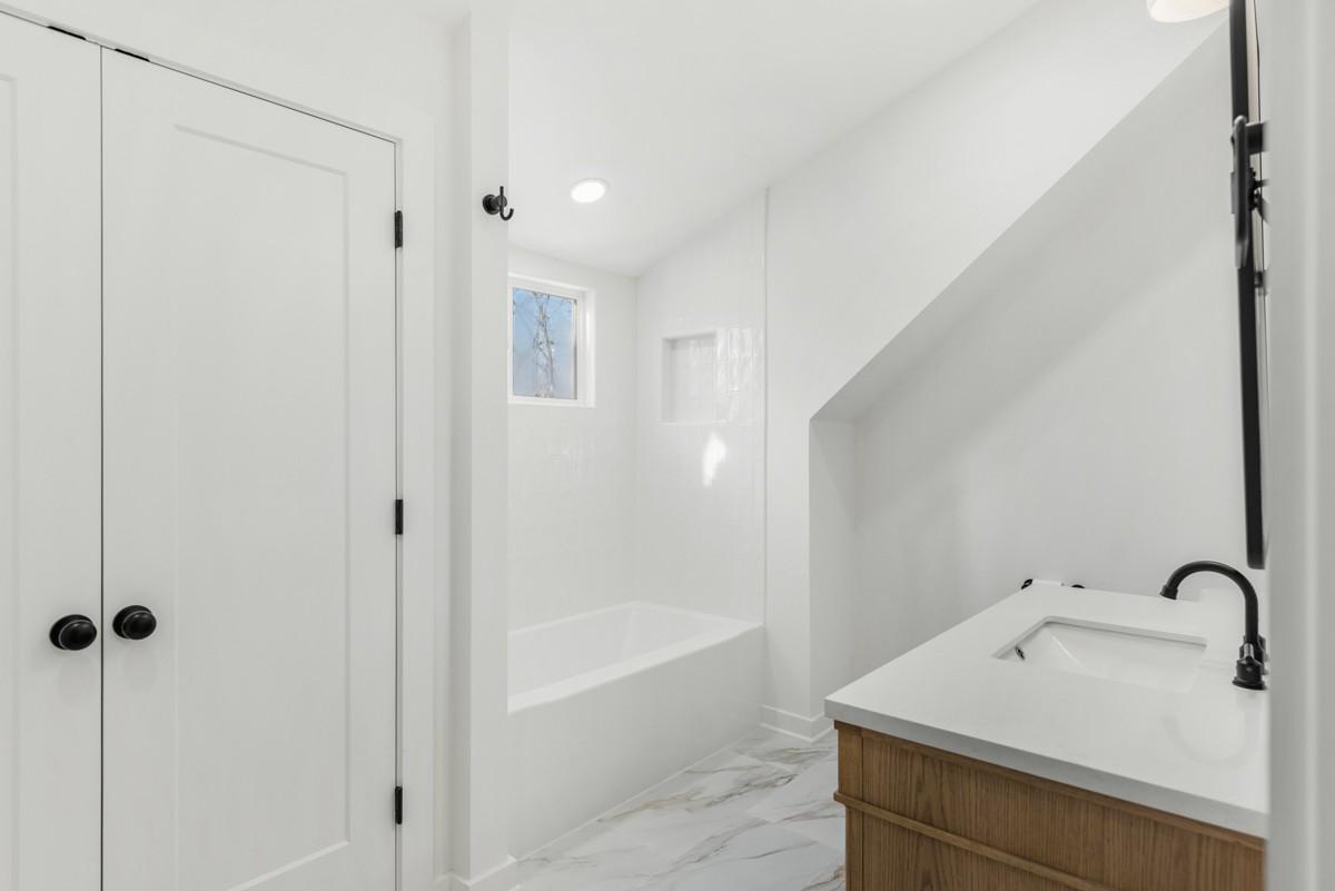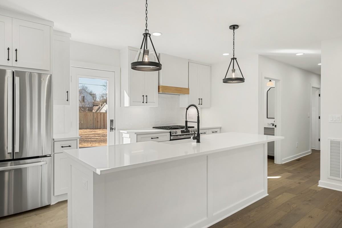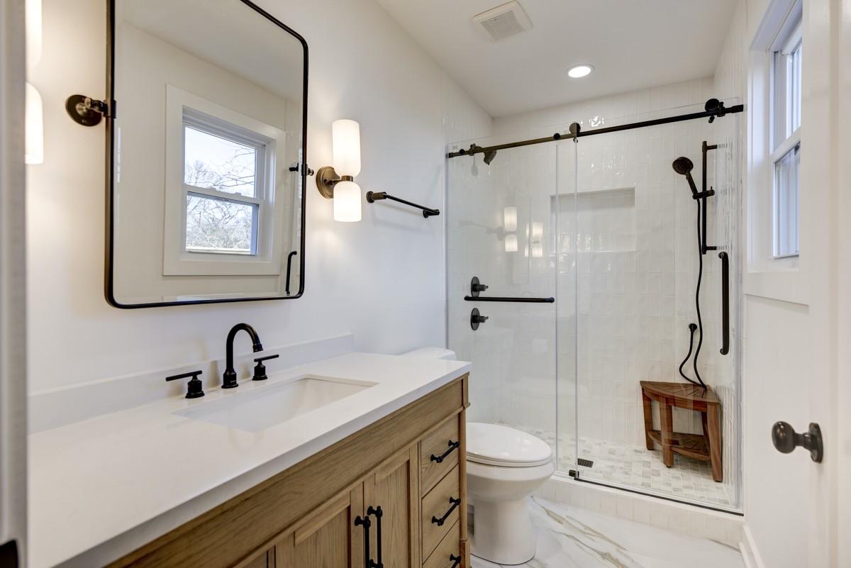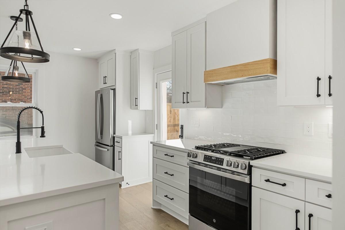 There’s a timeless charm and elegance that greet you immediately at the steps of the covered front porch of this East Nashville stone cottage. Originally built in 1937 and recently renovated, 1118 Sunnymeade Drive offers the best of old and new with features like open-concept living spaces illuminated beautifully by the original bay windows and anchored by the classic fireplace mantle; while offering thoughtful updates for modern life and designer-curated selections. The new kitchen includes floor to ceiling shaker cabinets with a large island, farm sink, quartz counters, tile backsplash, new GE stainless appliances including gas range with custom hood and pantry. Easy access off living spaces to the new back deck in the private fully fenced backyard. Back inside, you’ll find a half bath, dedicated laundry room with mud area off driveway entry, access to the full unfinished basement with over a thousand square feet of potential. Rounding out the main level is the primary suite with private bath with new tile shower with frameless glass, wood vanity with quartz and walk-in closet with custom built-ins. Vaulted ceilings and cozy dormers nooks add extra character to the generously sized secondary bedrooms, bonus room and hall bath with new tub, tile and wood vanity with quartz that you’ll find upstairs. Upgraded finishes like LED recessed lights, new wide plank hardwood floors, new hardware, fresh paint, new doors, storage and more throughout the home. Exterior updates including new windows, roof, HVACs, gutters, asphalt drive, landscaping and more! Situated in the very walkable Inglewood neighborhood, zoned for desirable Dan Mills Elementary and steps from local favorites like El Fuego, Inglewood Lounge, Club Pilates, the Sunnymeade Community Garden and more! This move-in ready home truly offers the ideal East Nashville experience – a classic cottage with a great yard, convenient location and modern living at its finest! $5000 credit being offered by preferred lender.