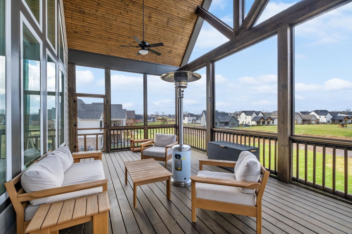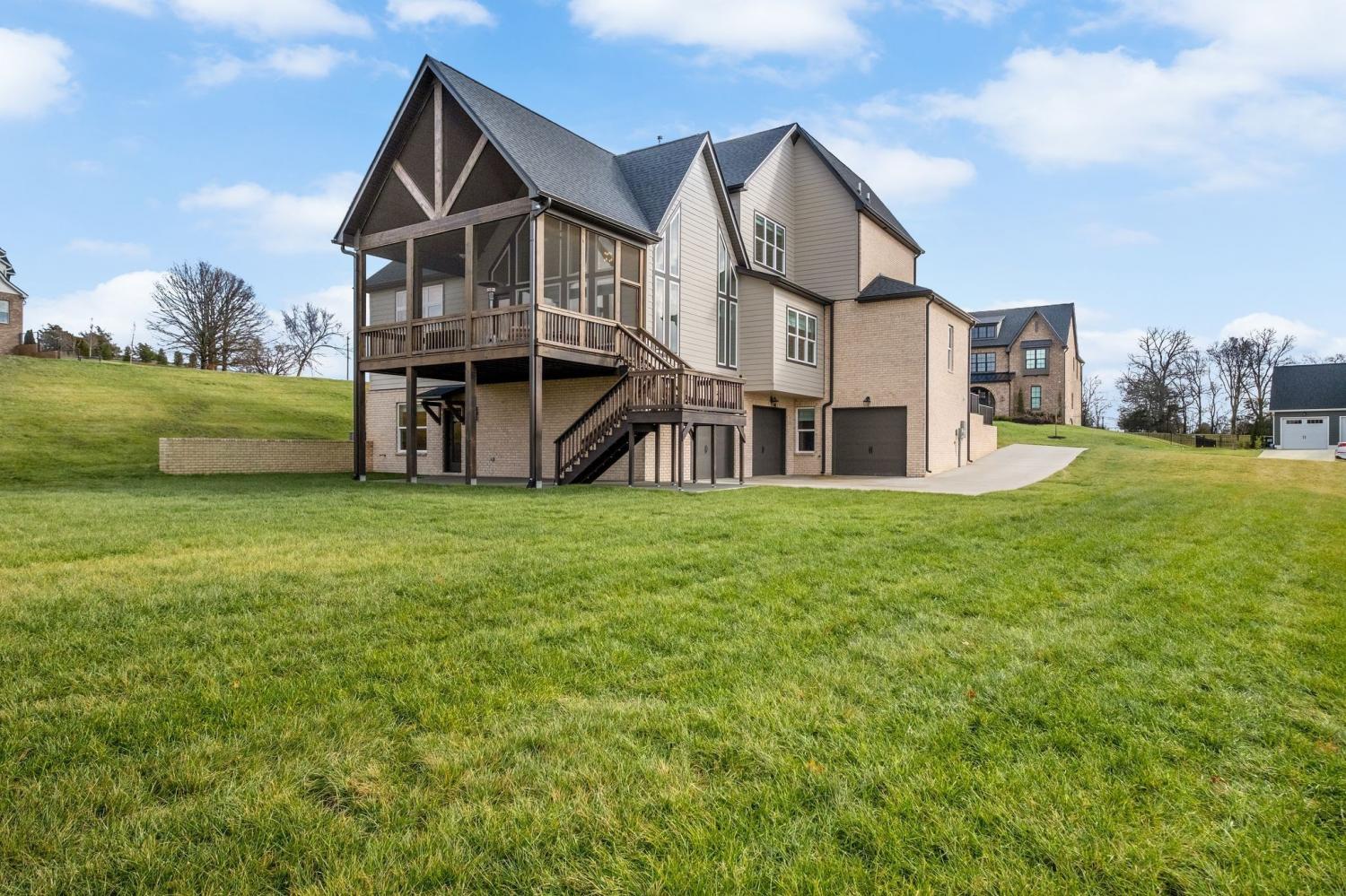 Imagine yourself in this stunningly upgraded home which offers a blend of luxury and comfort in a prime setting. Exquisite Bespoke marble counter and backsplash upgrades in large walk in pantry and downstairs bar and high end lighting throughout. Tastefully done and shows like a Model Home, better than a new home. The luxurious primary suite on the main level is bathed in natural light from large windows and expansive vaulted ceilings. The bathroom suite is stunning w/ large walk in closet decked out in California Closet System. A guest bedroom with an en-suite bath and an office is also located on the main floor. The dream kitchen has double ovens, quartz back splash, custom hood with gas cooktop. The fantastic scullery/pantry has built in cabinets and shelves with marble counter and back splash and bar sink. The kitchen seamlessly integrates into the spacious great room with cathedral ceilings, large windows to bring in lots of natural light. The house is perfect for entertaining! The great room flows into the spacious screened in deck that carries through the cathedral ceiling. Upstairs, you'll find three additional bedrooms, a bonus room ideal for relaxing or watching your favorite movie. The downstairs offers an entire living suite. Expansive bonus/media room for great entertaining. Built in bar area with gorgeous marble counter and backsplash. Built in cabinets along the wall. Custom roman shades throughout. Storm shelter and another bedroom with a full bath. Ample garage spaces to fit numerous vehicles. Nice concrete pad under the deck. The community has fabulous amenities...pool/fitness center, pickle ball and Club house and walking trails throughout. Minutes to Hwy 96, I65, I840 and all that Franklin has to offer at your fingertips! Great level backyard for a future pool. The baby piano is not included and does not remain. Video: https://www.youtube.com/watch?v=wG_NHz4kabg.